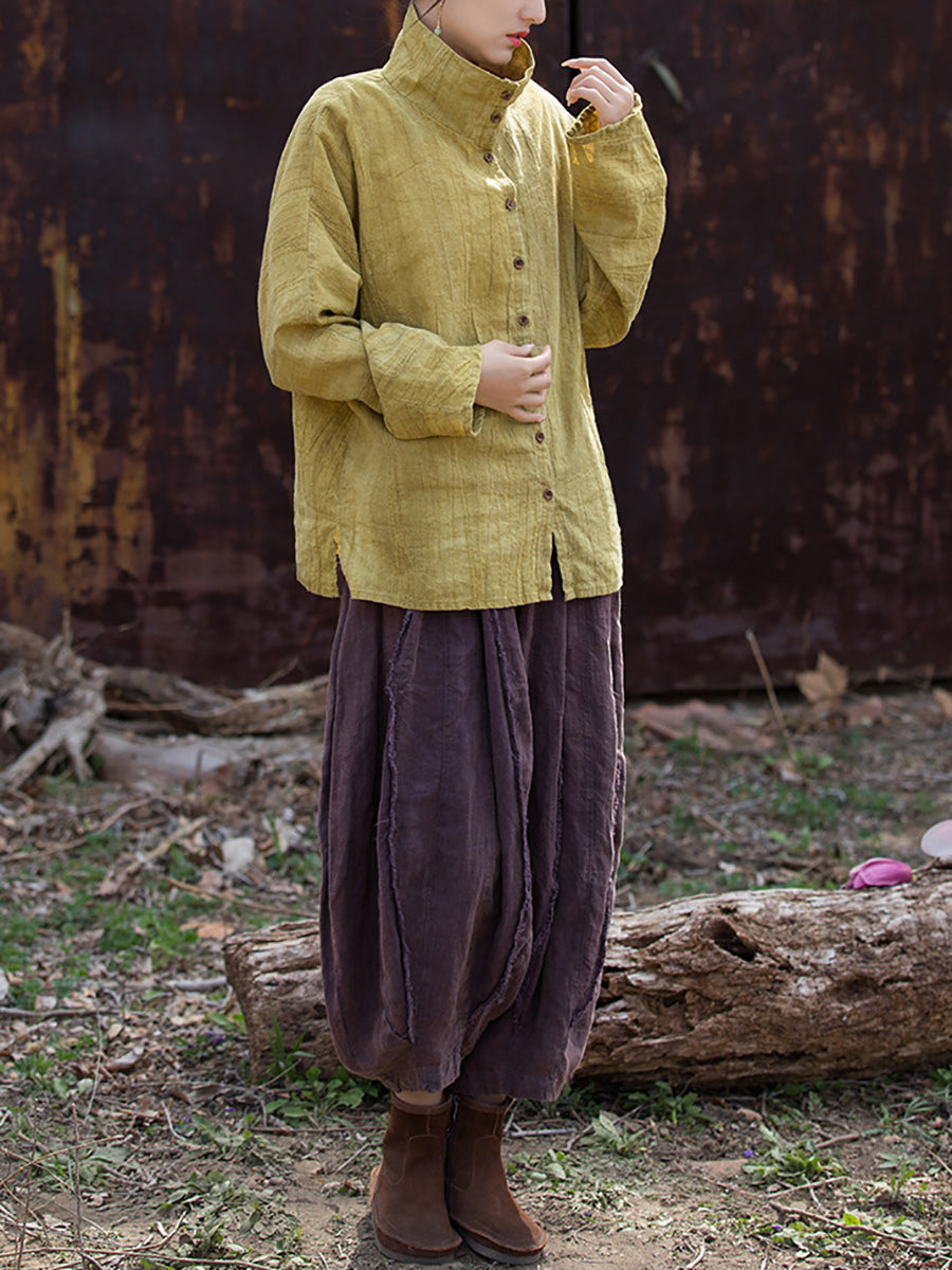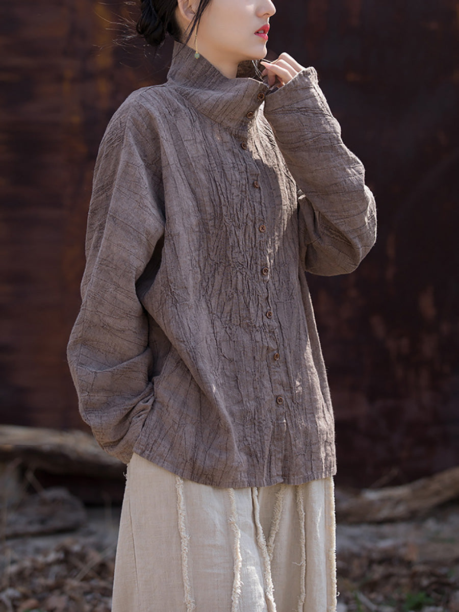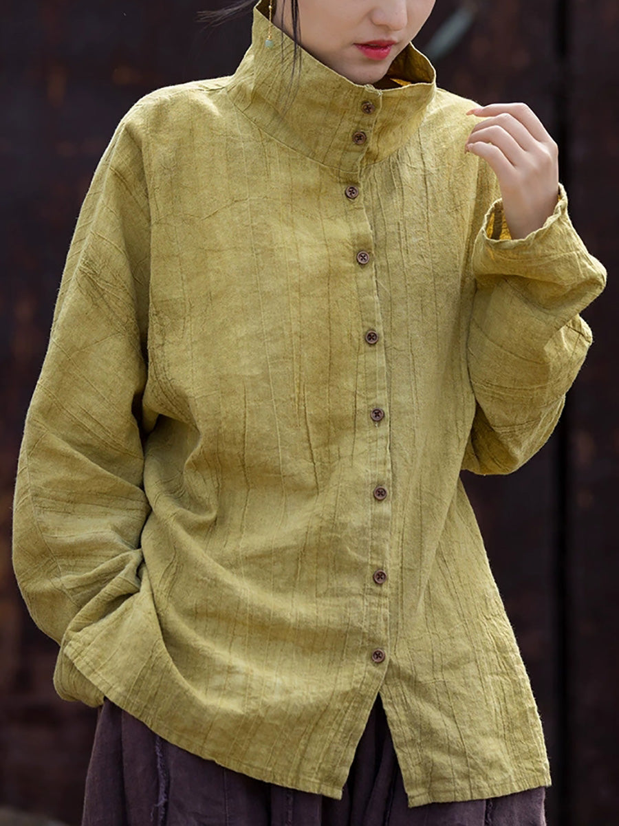 Women Spring Artsy Tie-dye Stand Collar Shirt