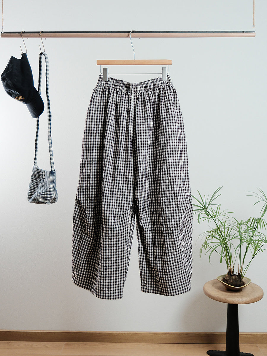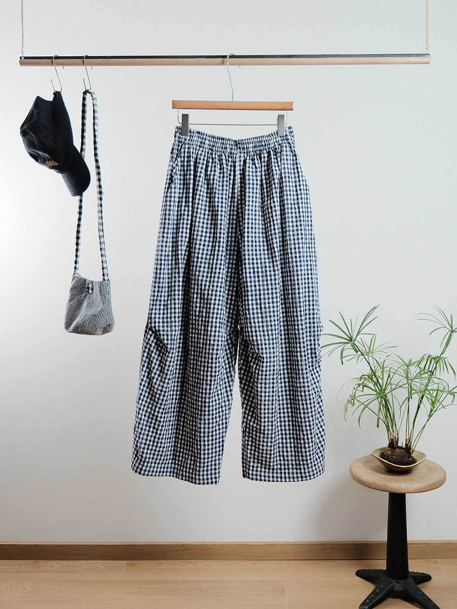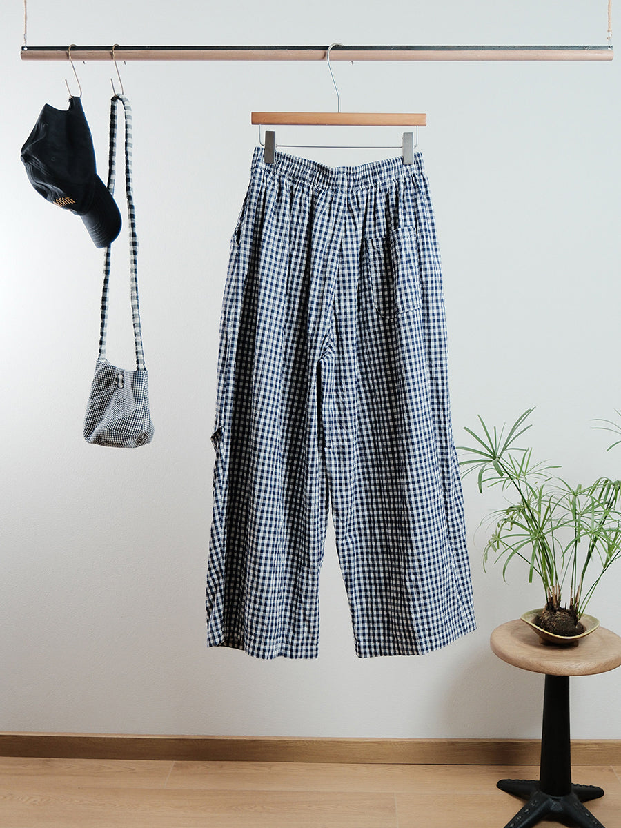 Women Spring Casual Plaid Wide-leg Pants