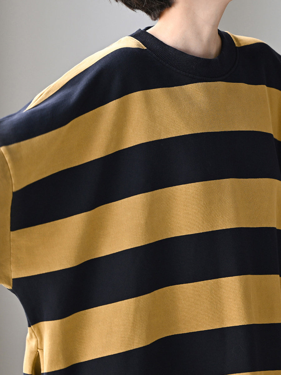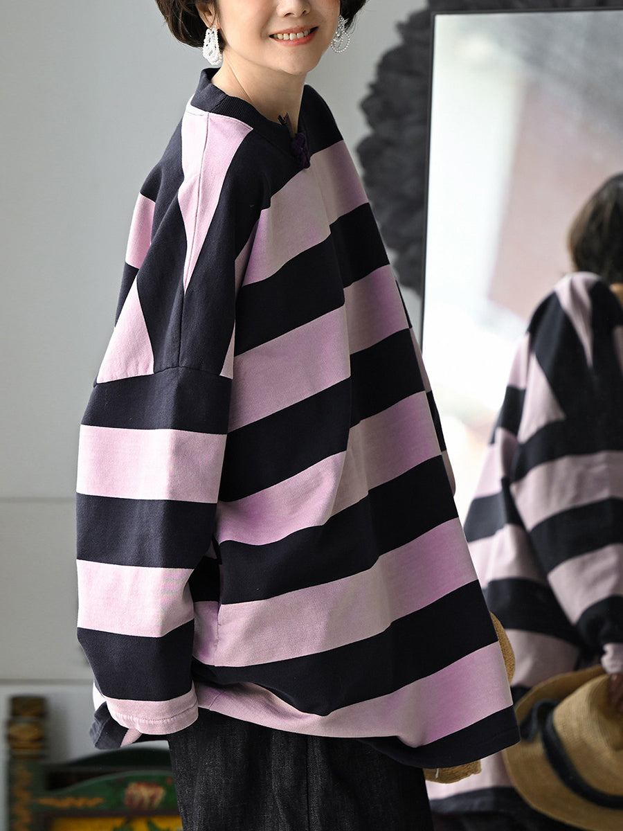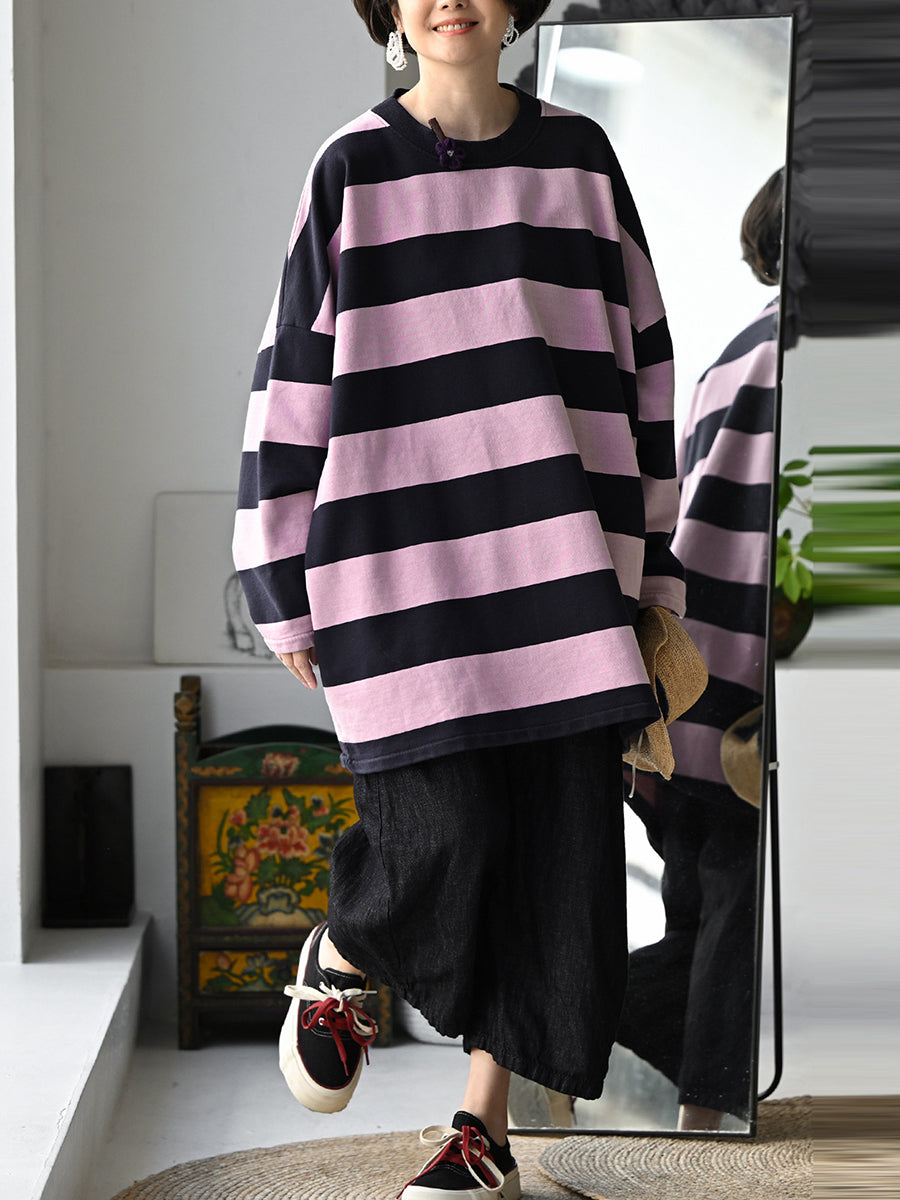 Women Spring Casual Stripe O-Neck 100%Cotton Shirt