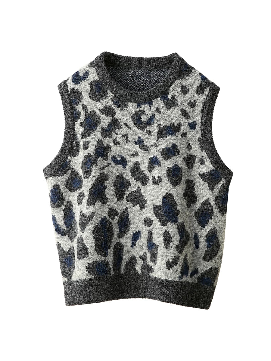 Women Spring Fashion Leopard Jacquard O-Neck Knitted Vest