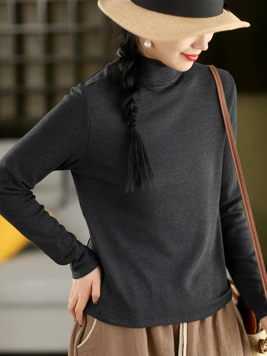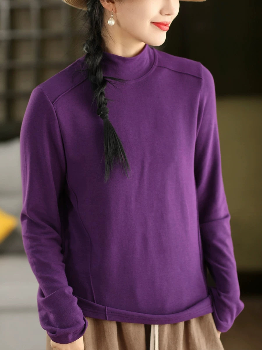 Women Spring Pure Color Half-turtleneck Blouse
