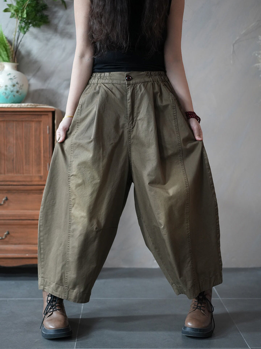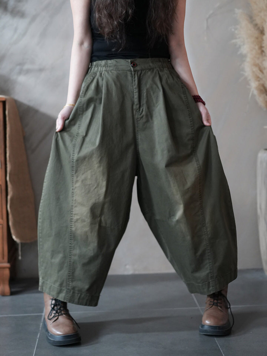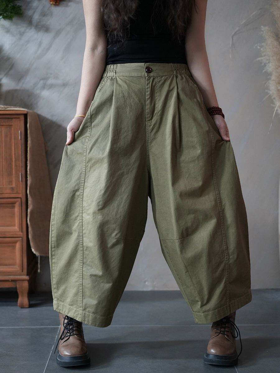 Women Spring Retro Pure Color Harem Pants