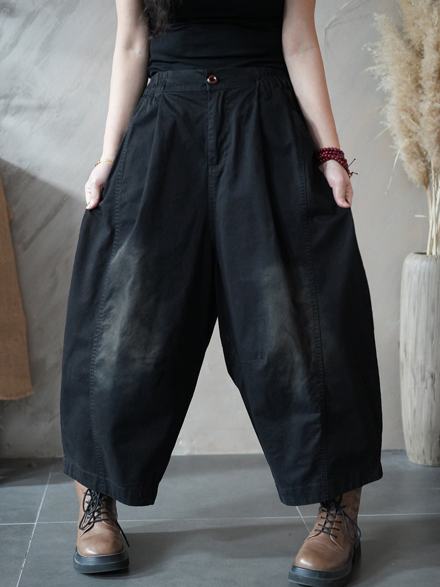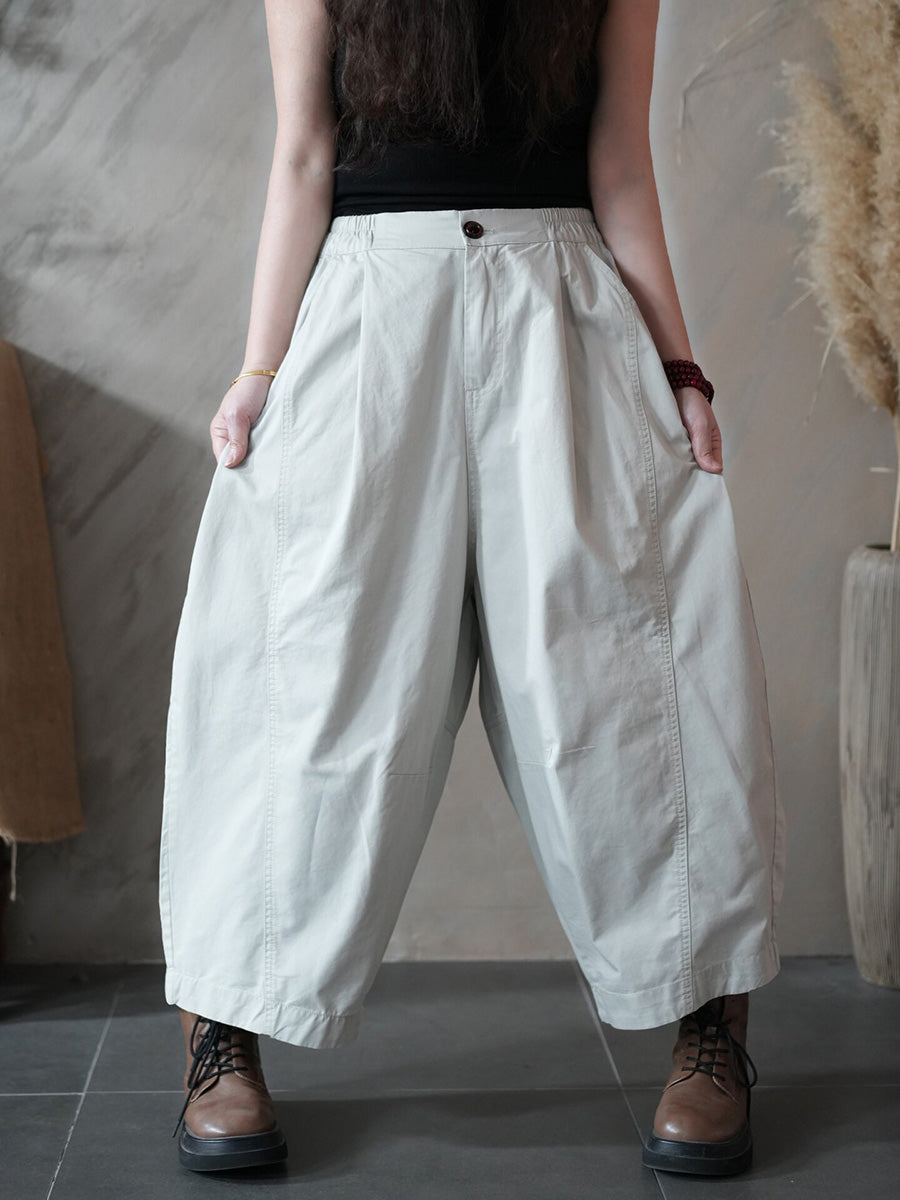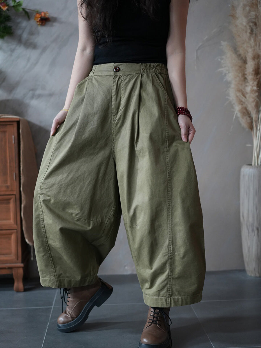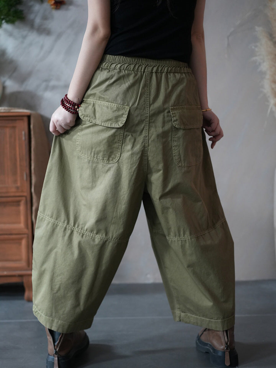 Women Spring Retro Pure Color Harem Pants