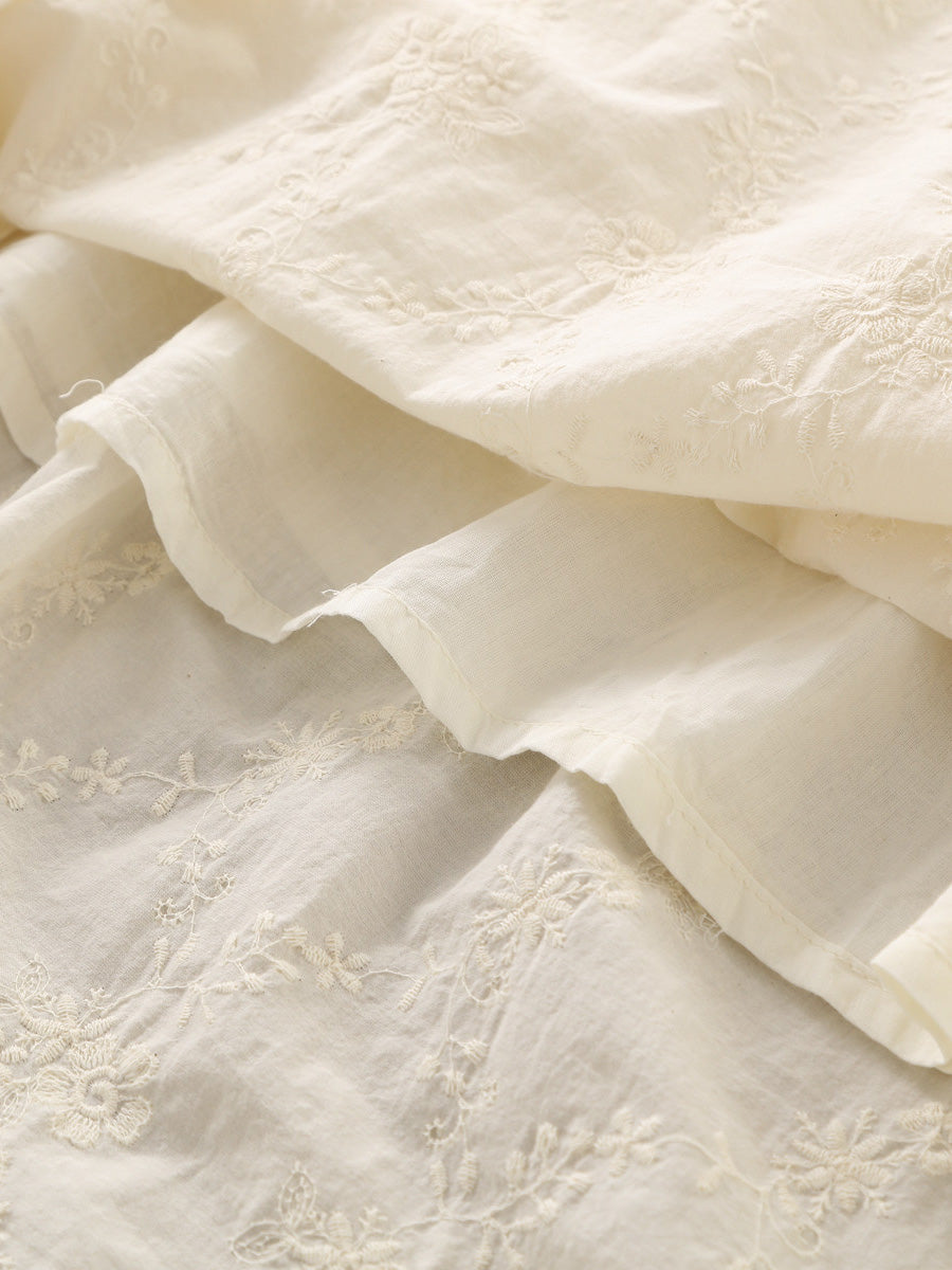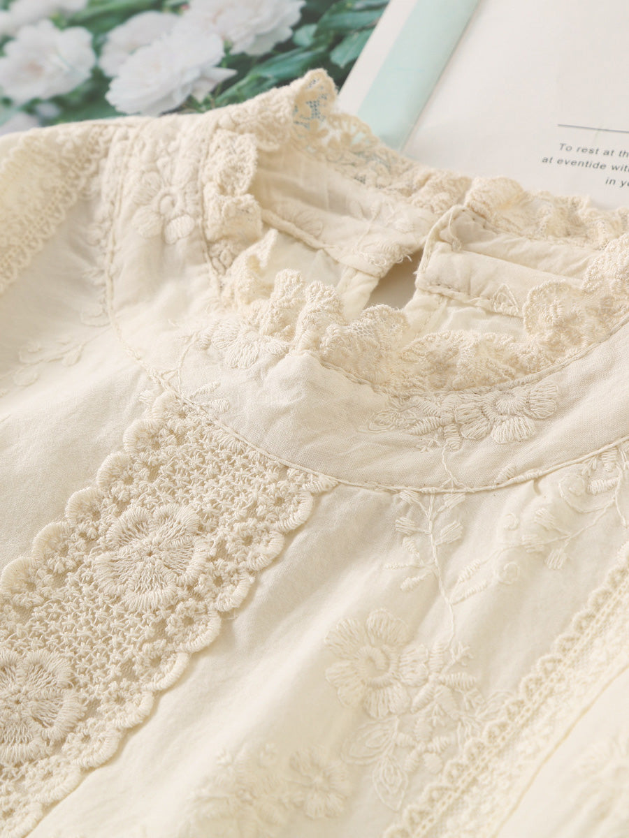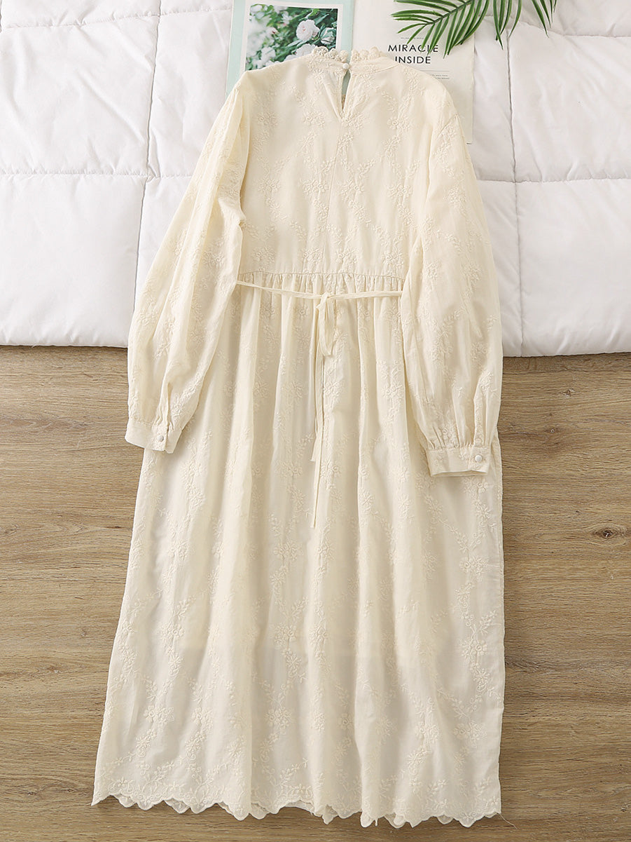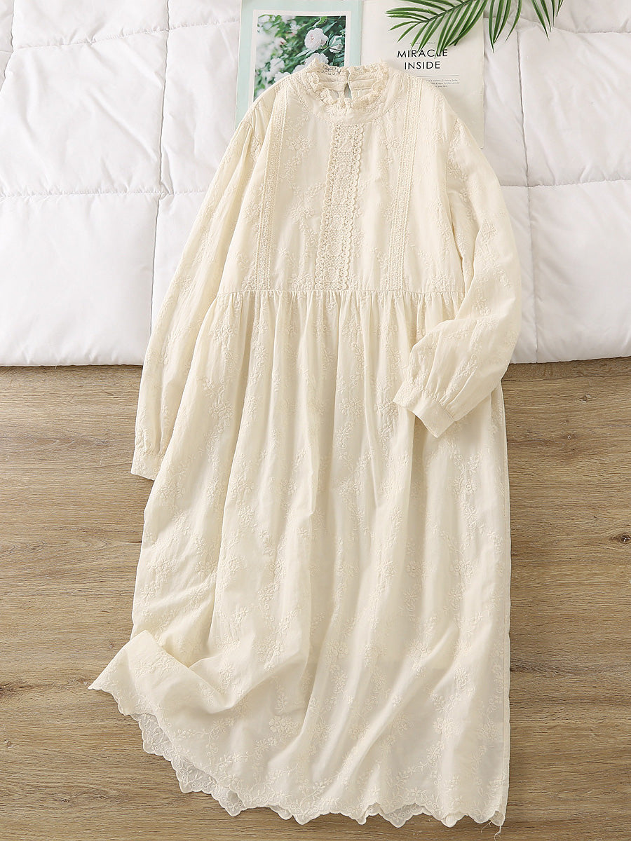 Women Spring Vintage Embroidery Lace Collar 100%Cotton Dress
