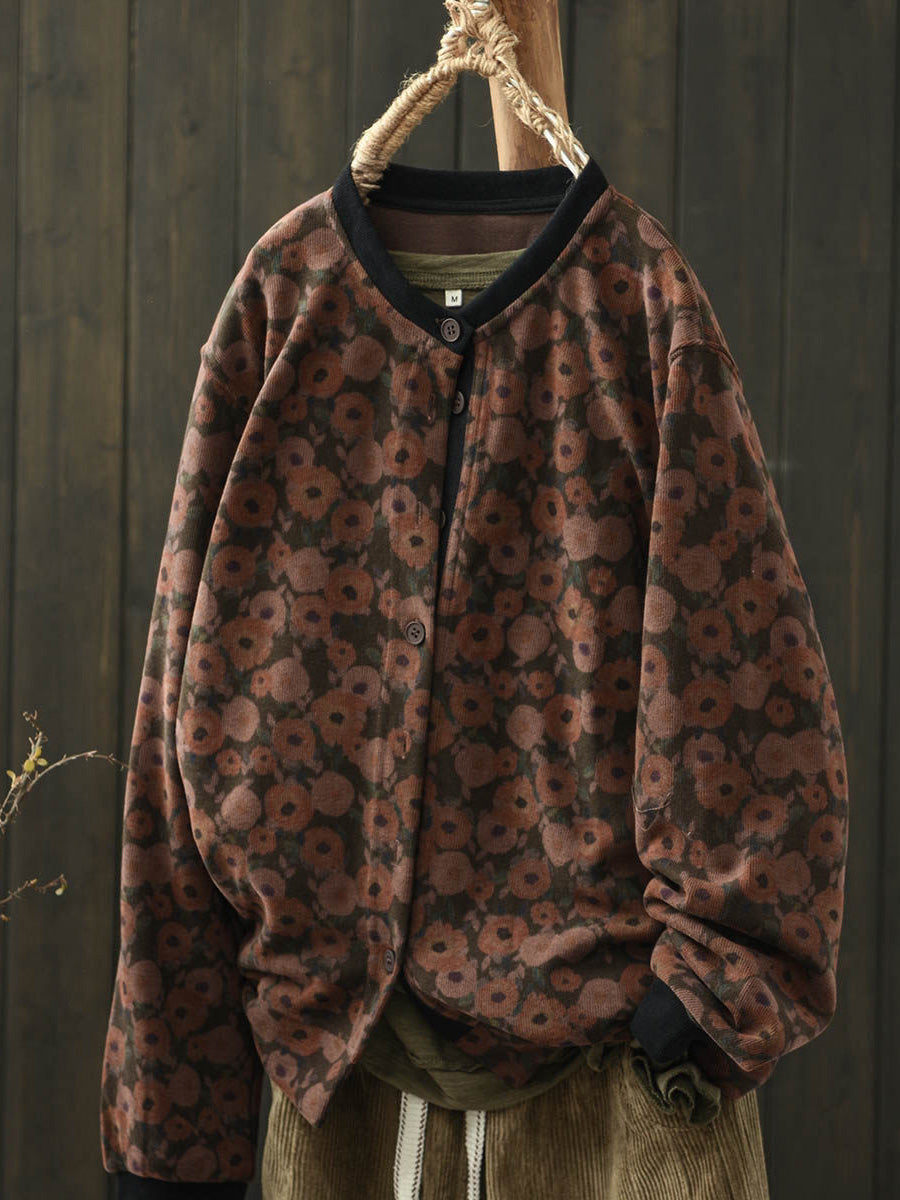 Women Spring Vintage Flower O-Neck Cotton Coat