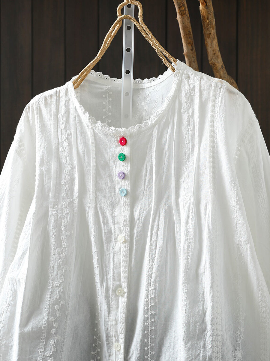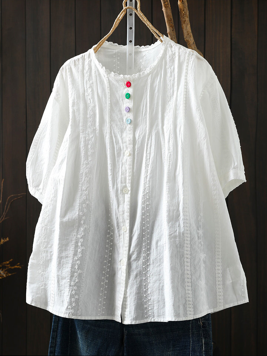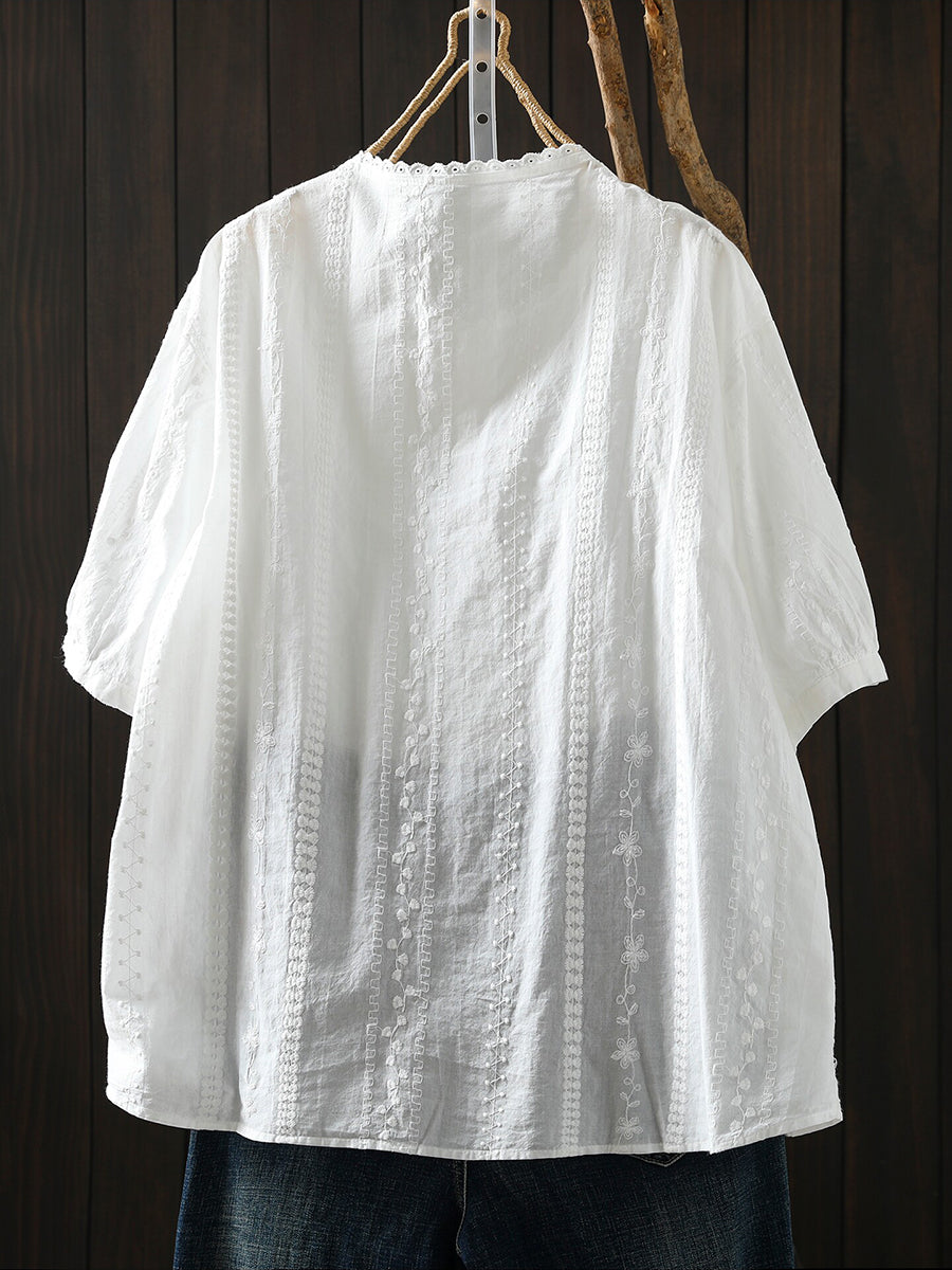 Women Summer Artsy Embroidery 100%Cotton Shirt