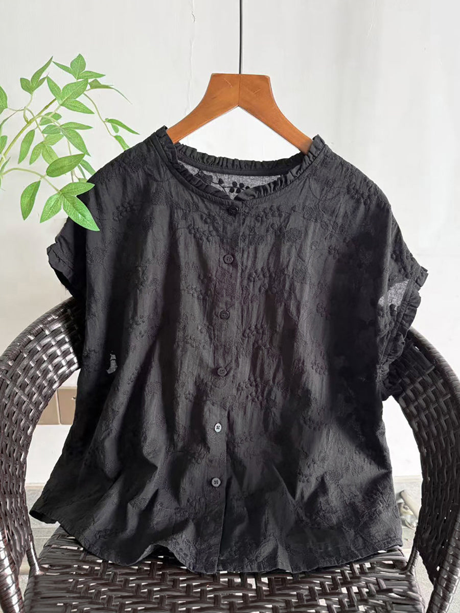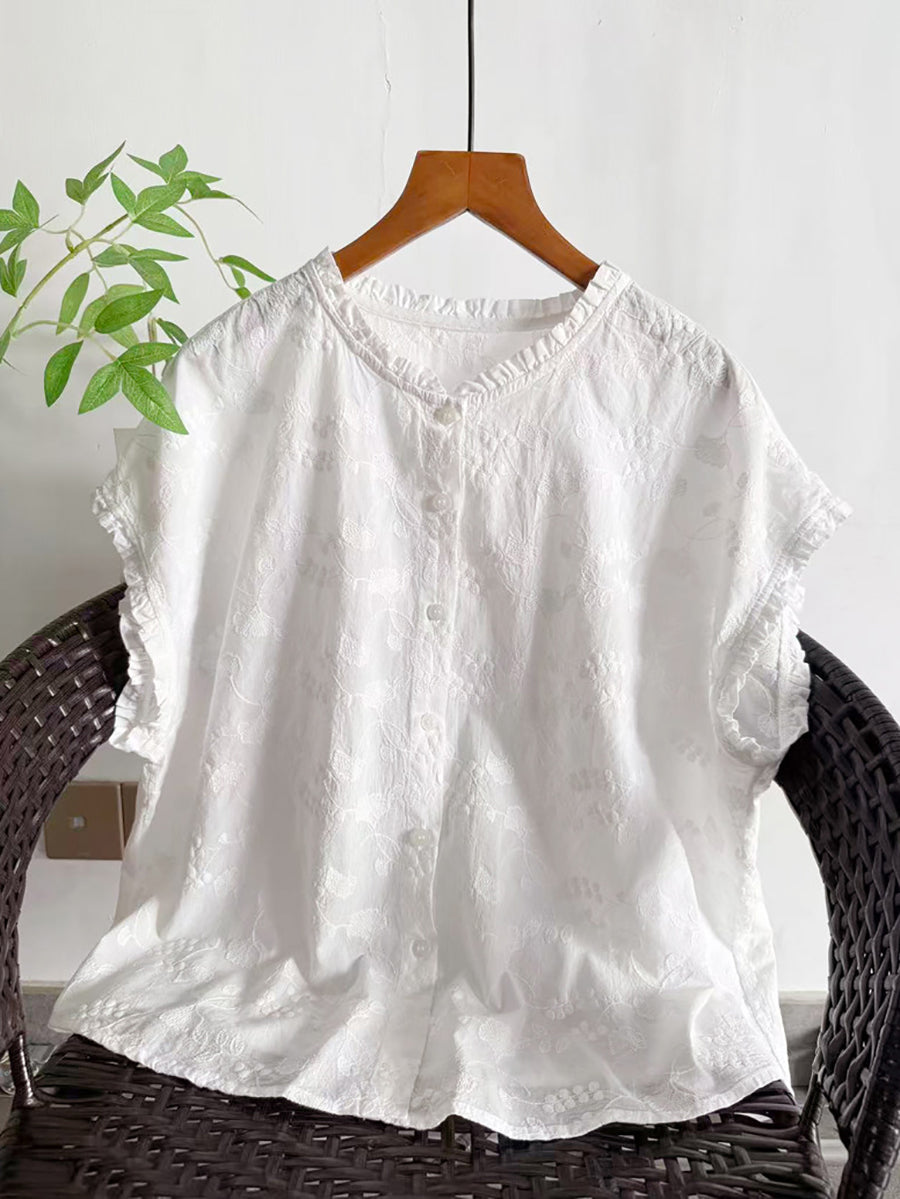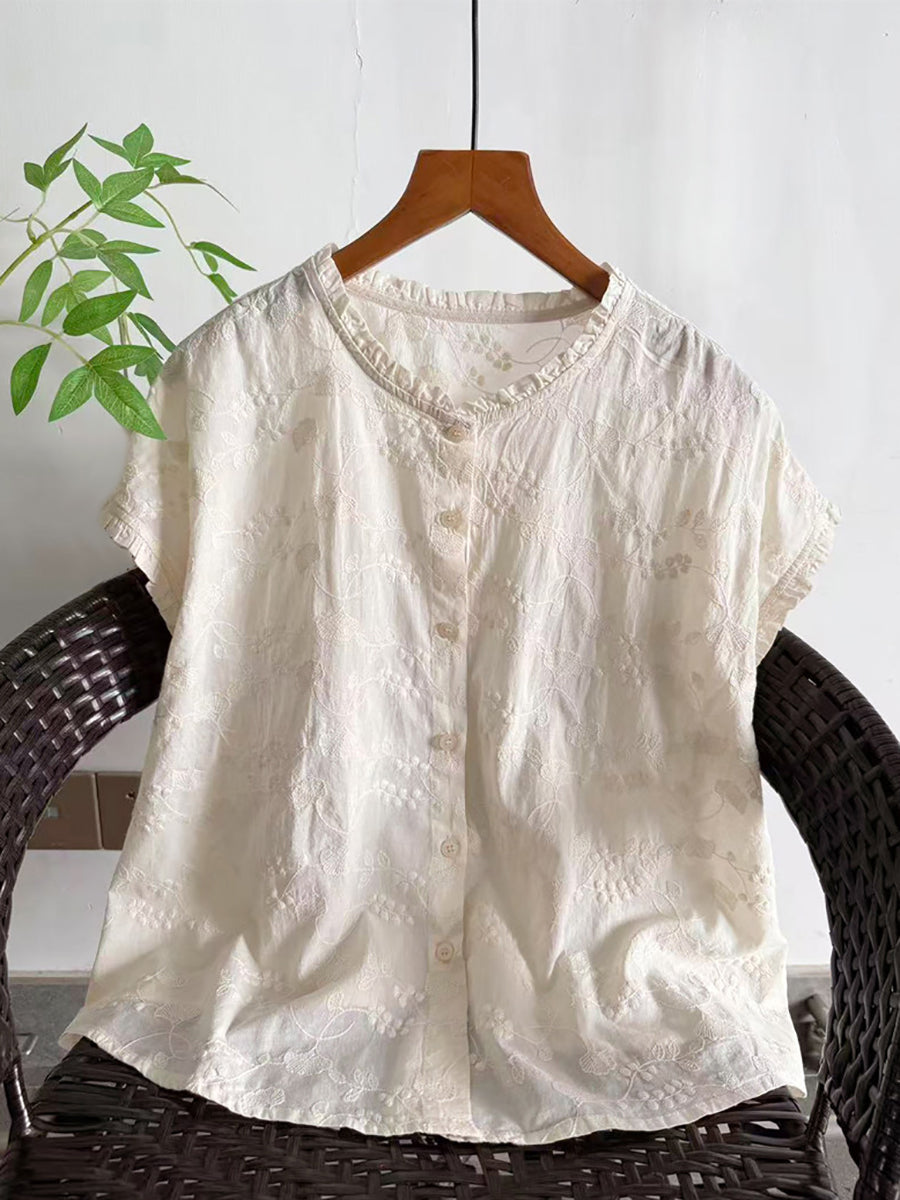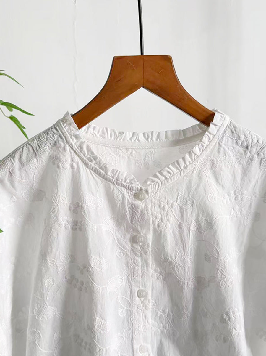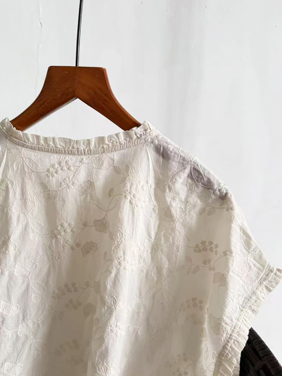 Women Summer Artsy Embroidery Cotton Blouse