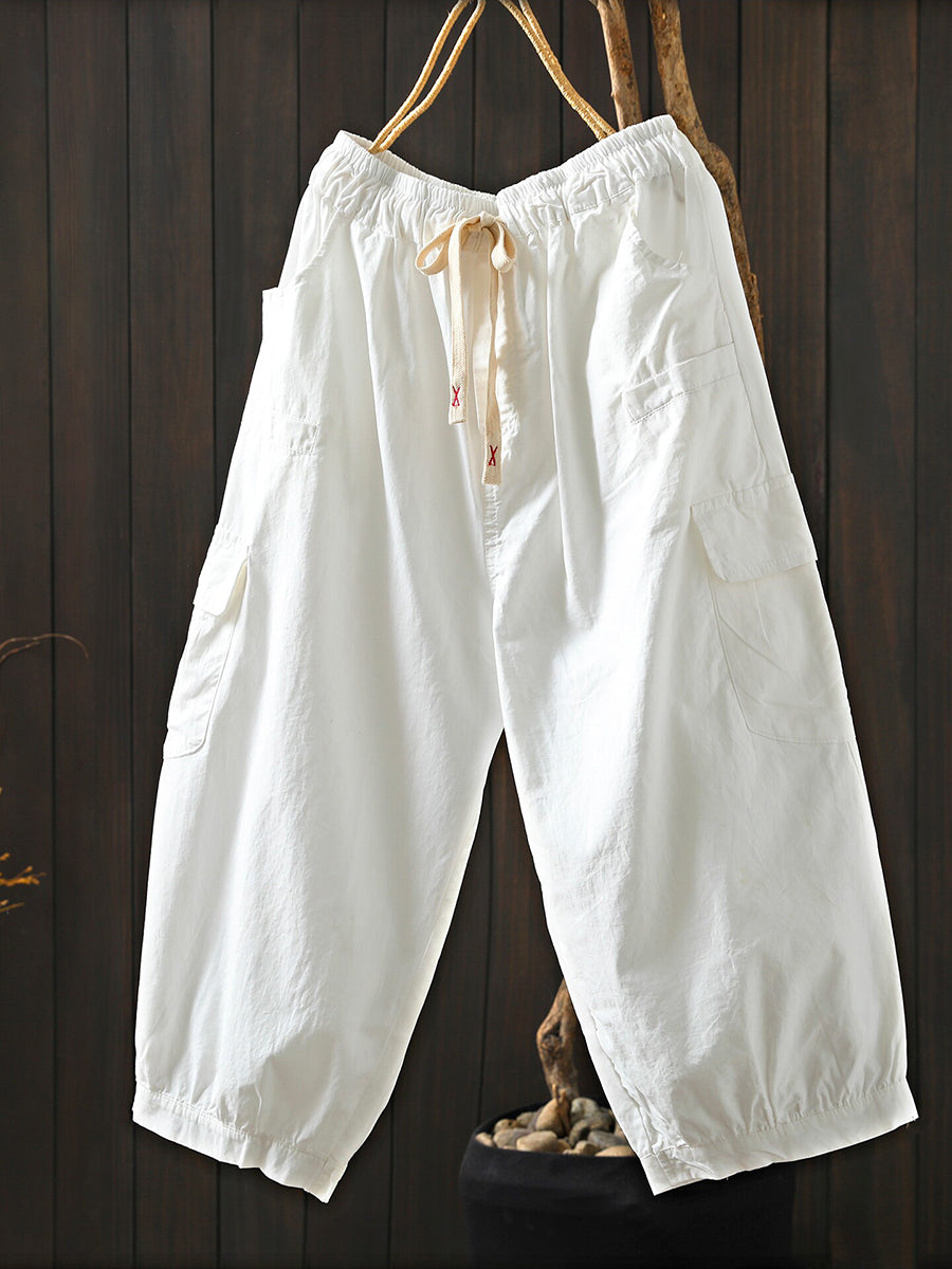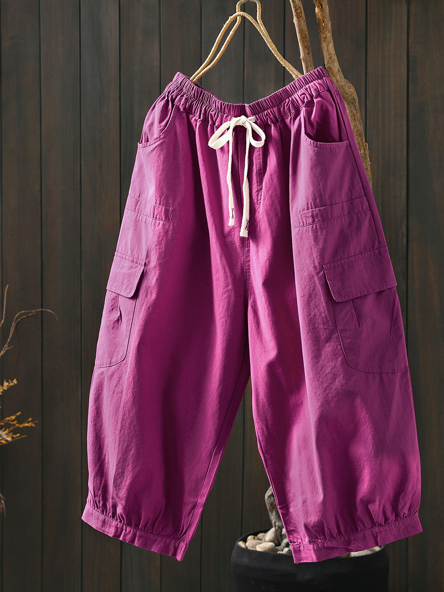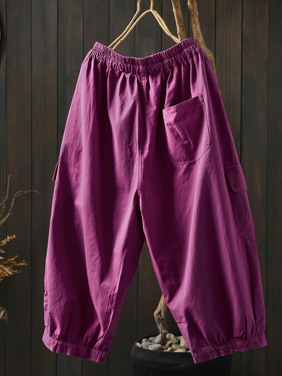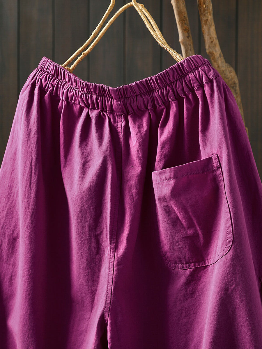 Women Summer Casual Pure Color Cotton Harem Pants