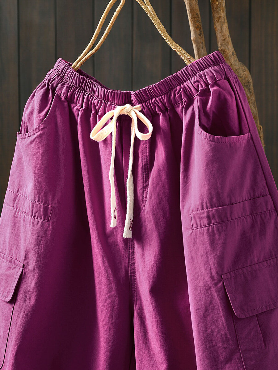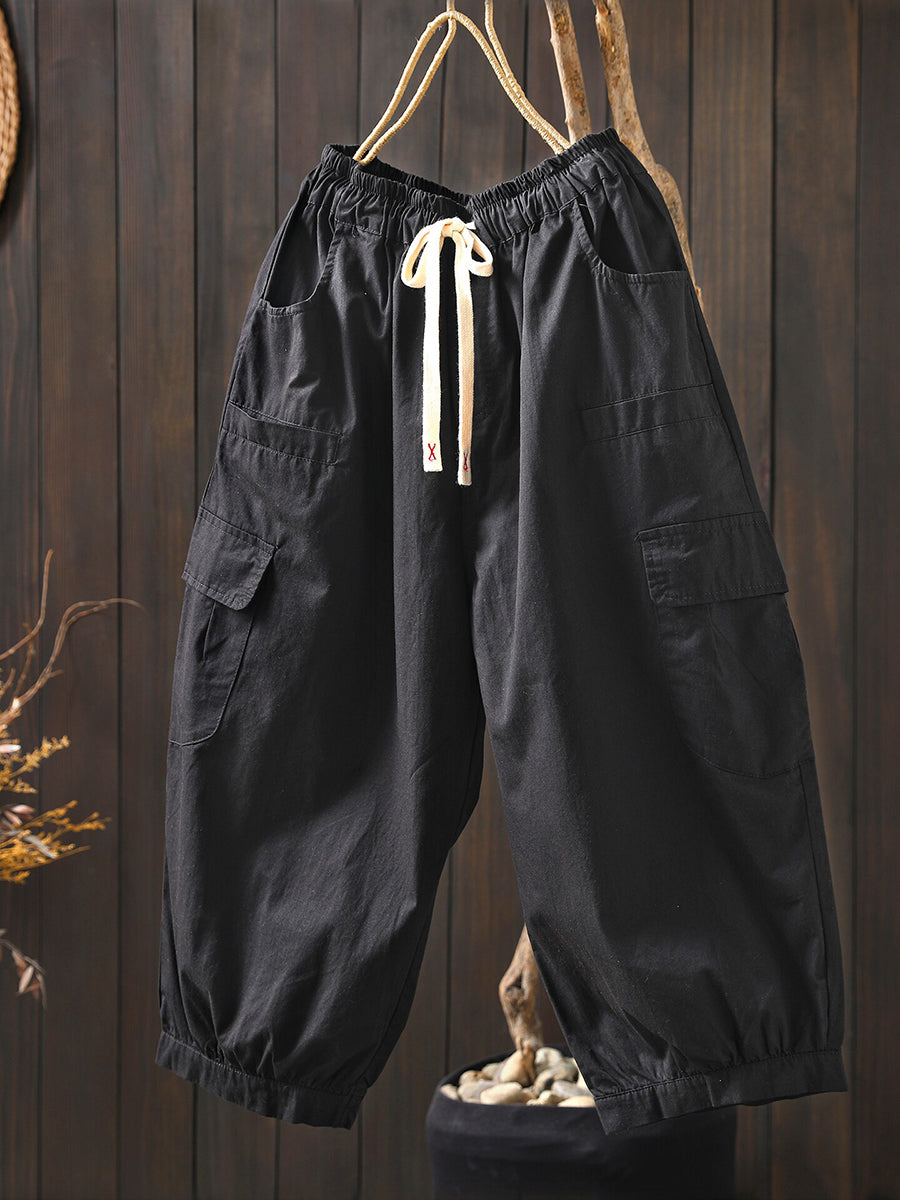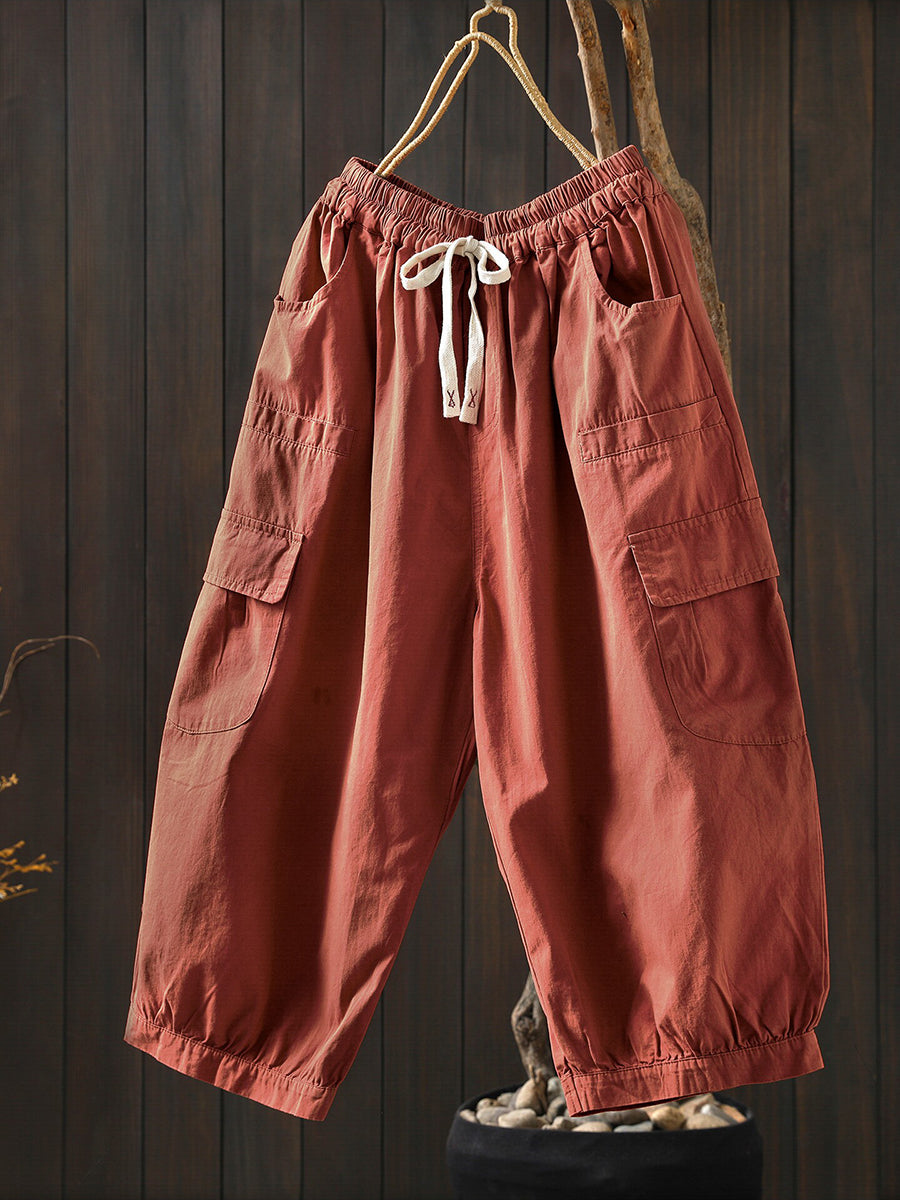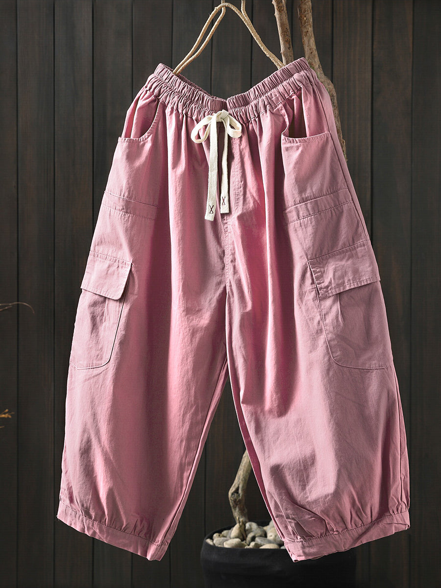 Women Summer Casual Pure Color Cotton Harem Pants