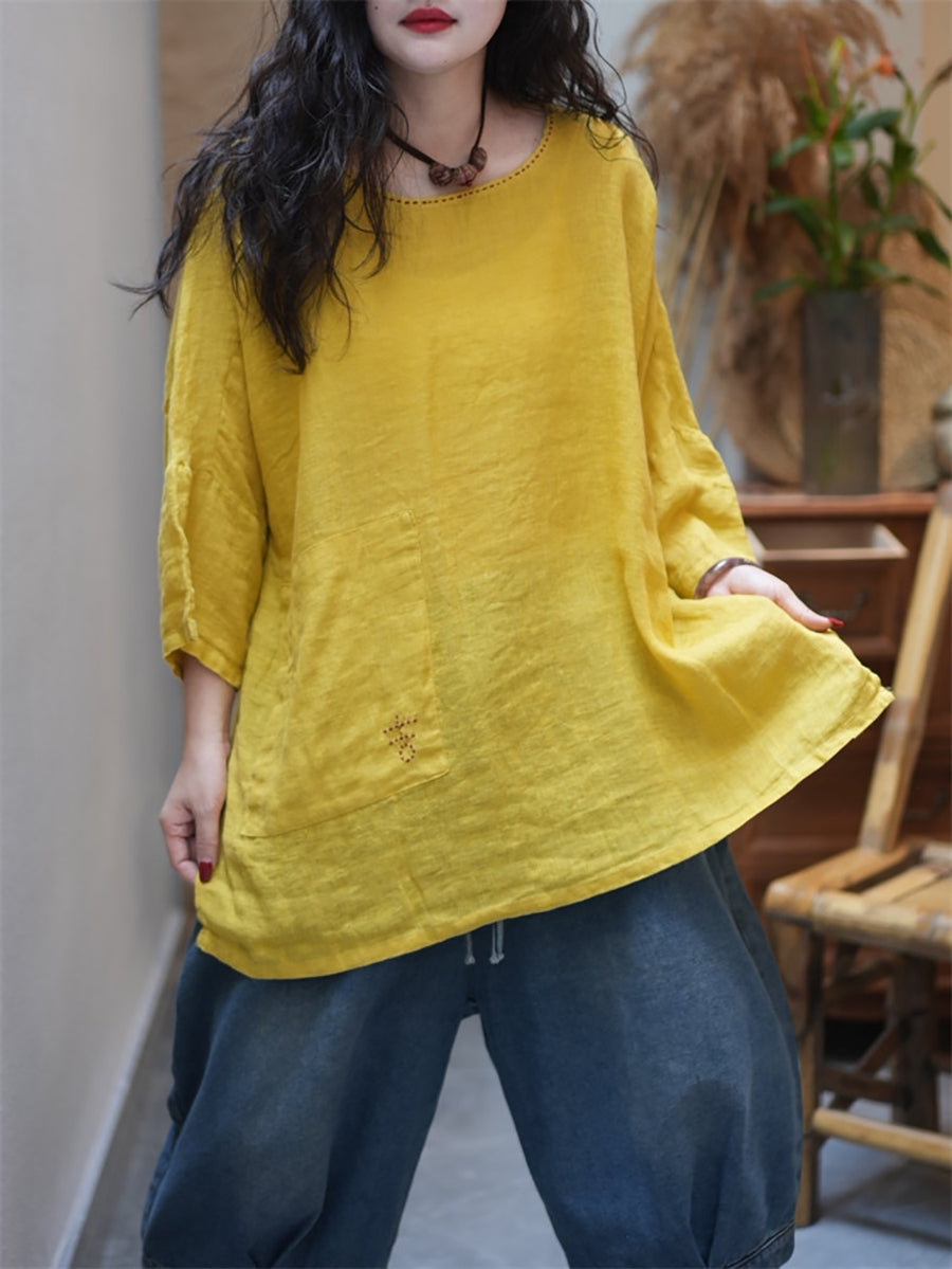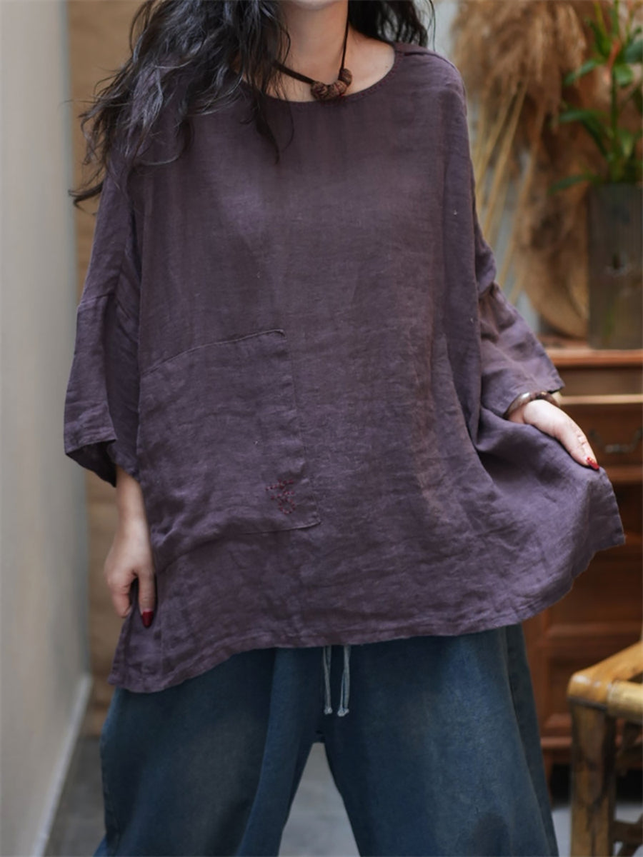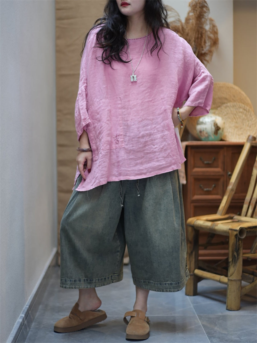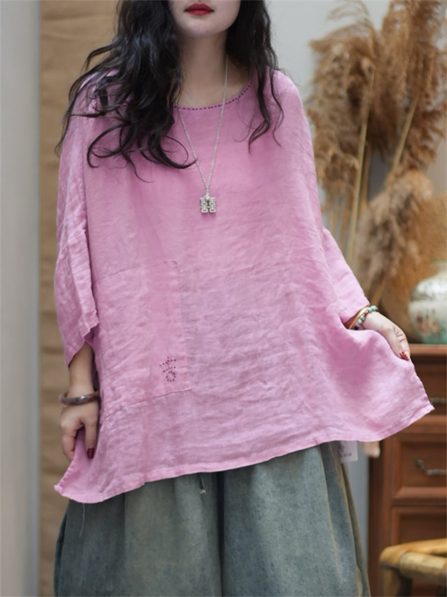 Women Summer Casual Pure Color O-Neck Blouse