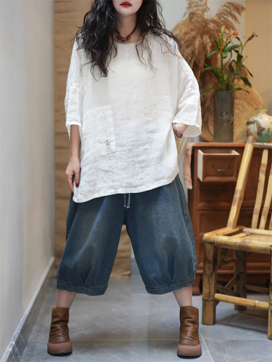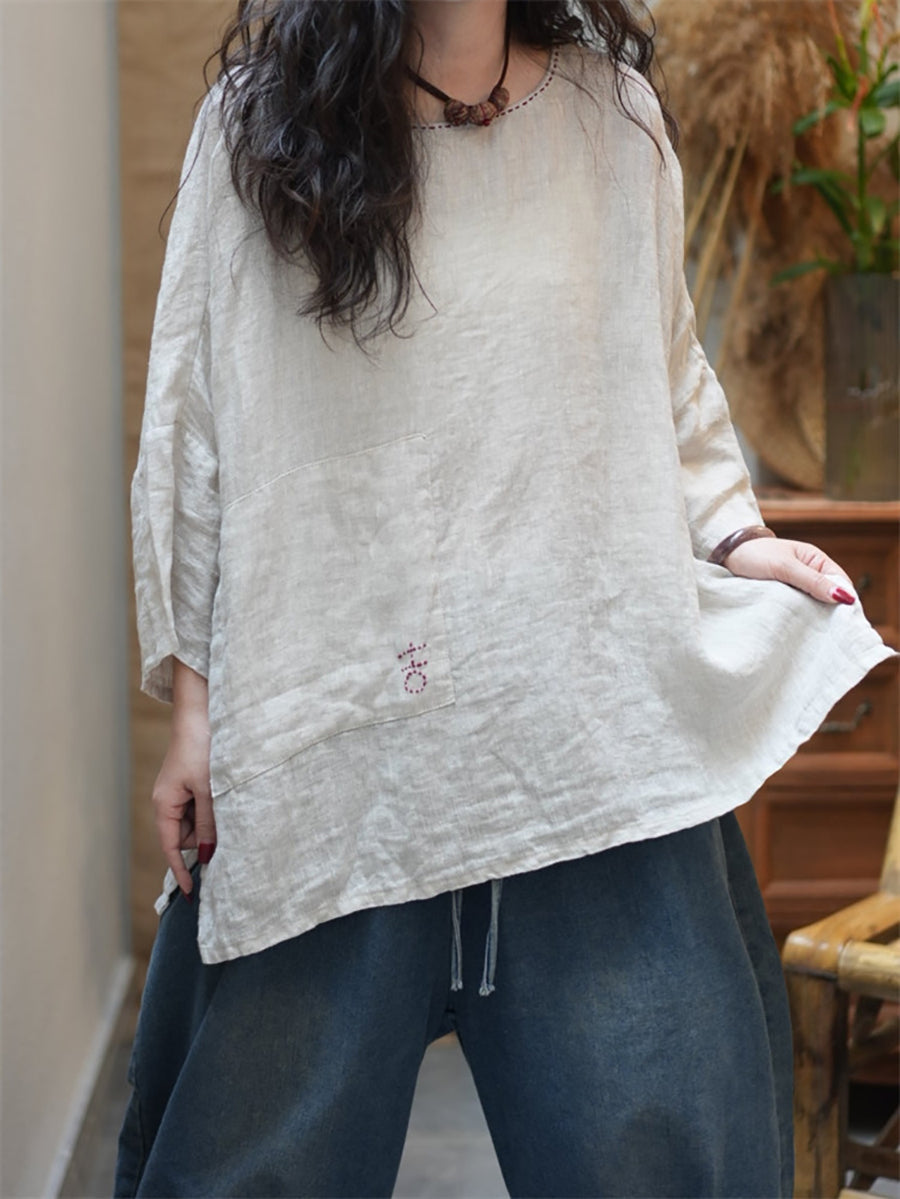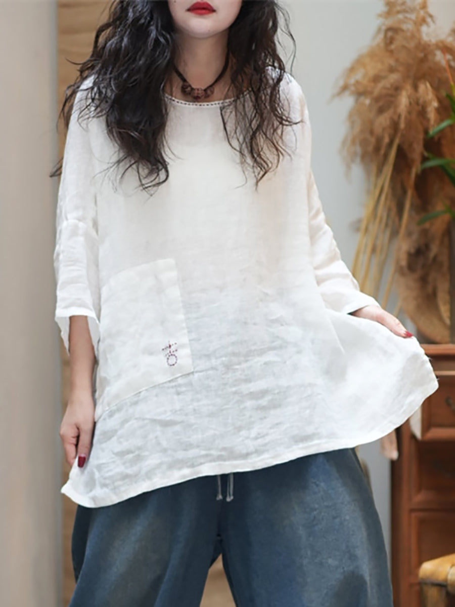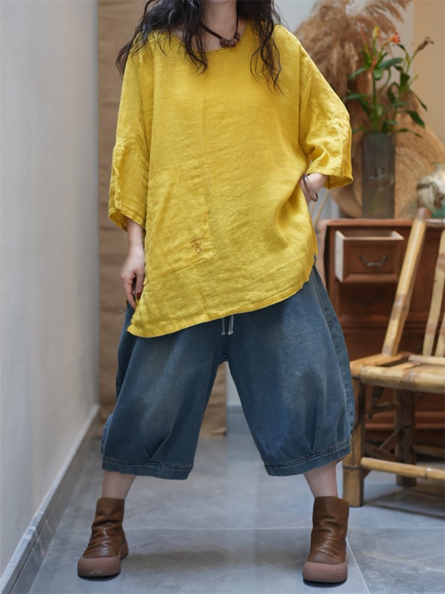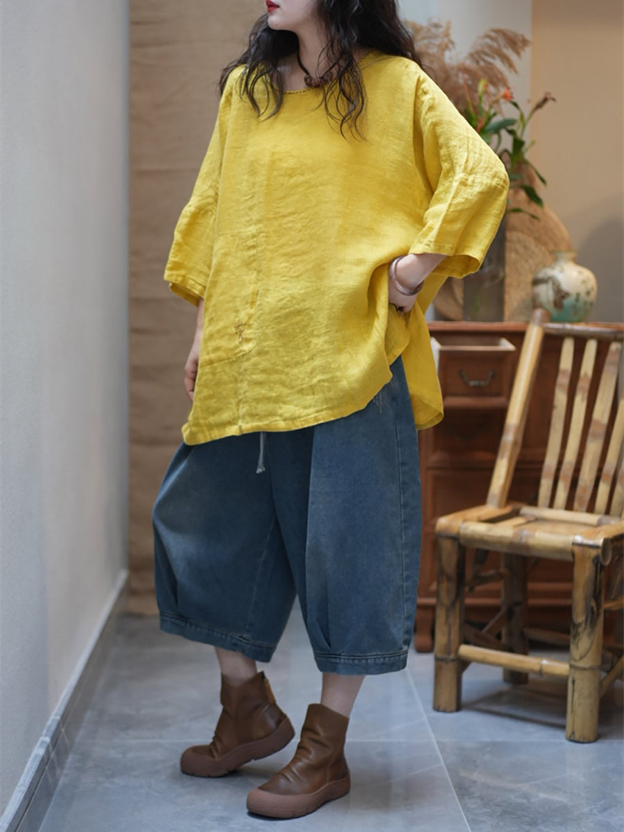 Women Summer Casual Pure Color O-Neck Blouse