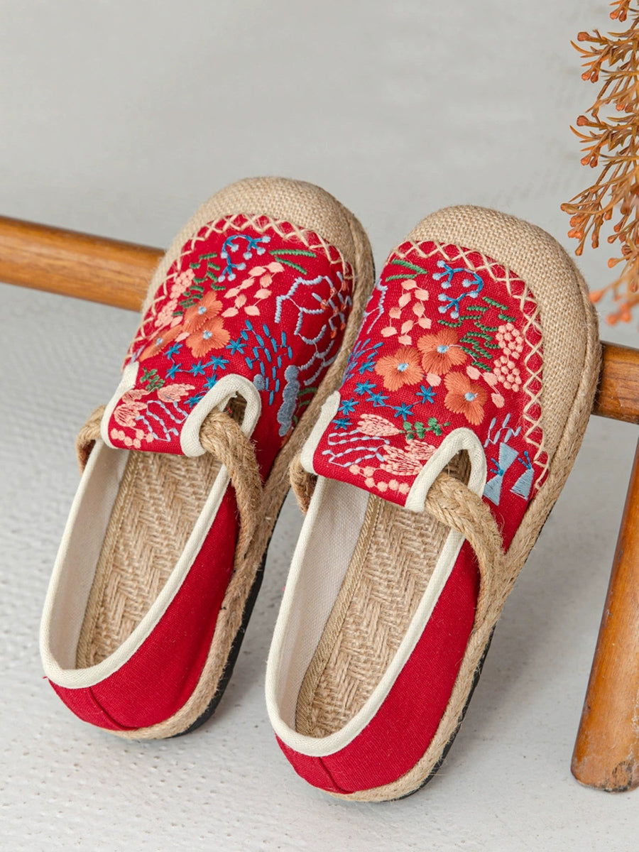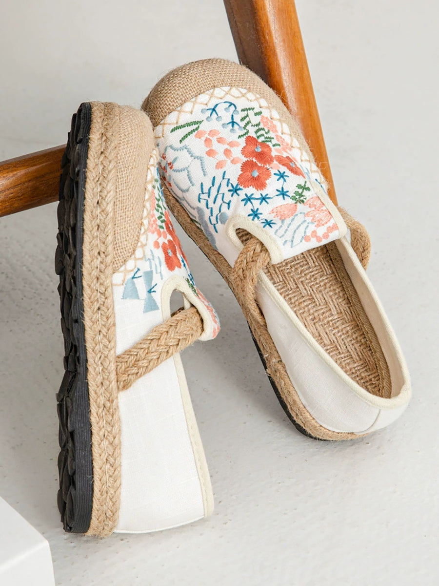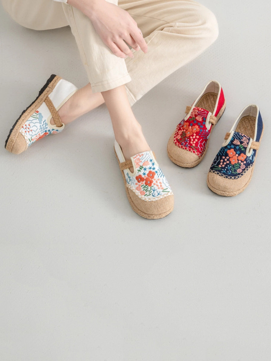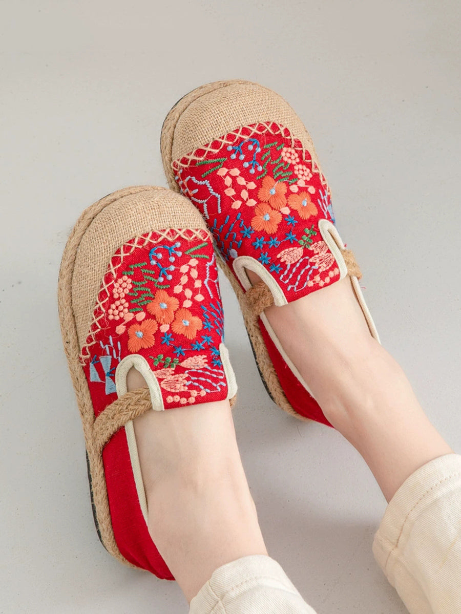 Women Summer Ethnic Flower Embroidery Canvas Linen Shoes