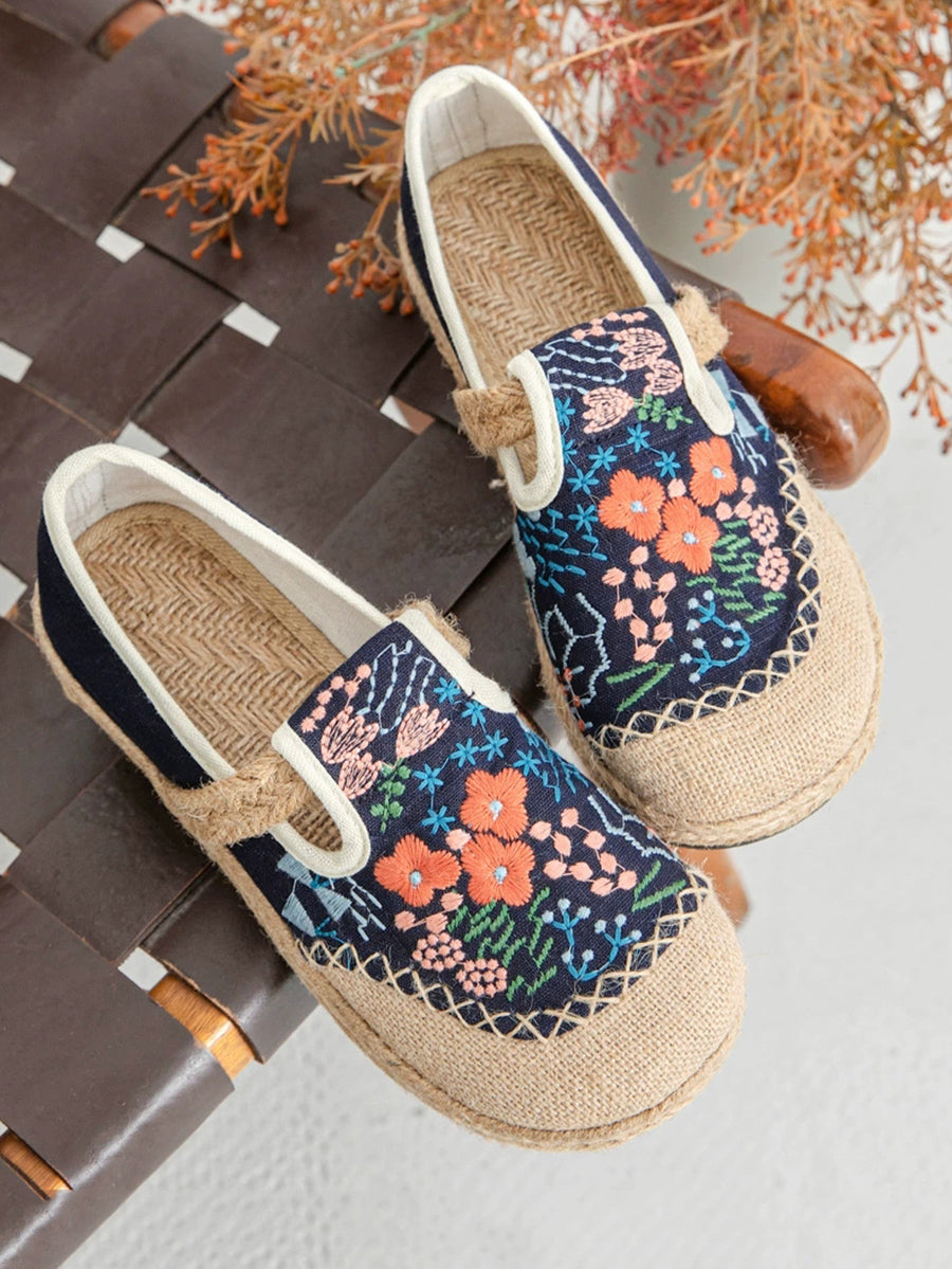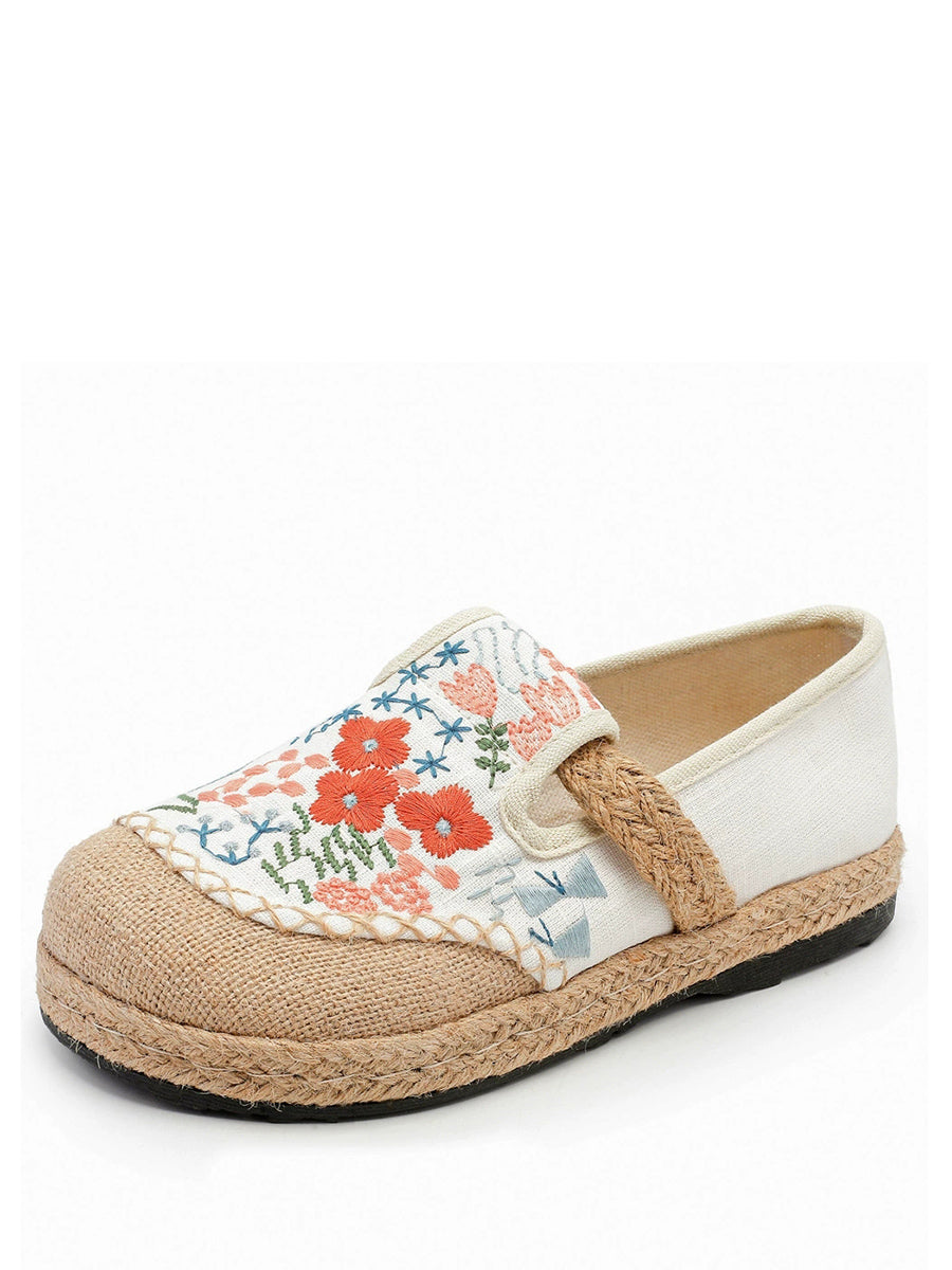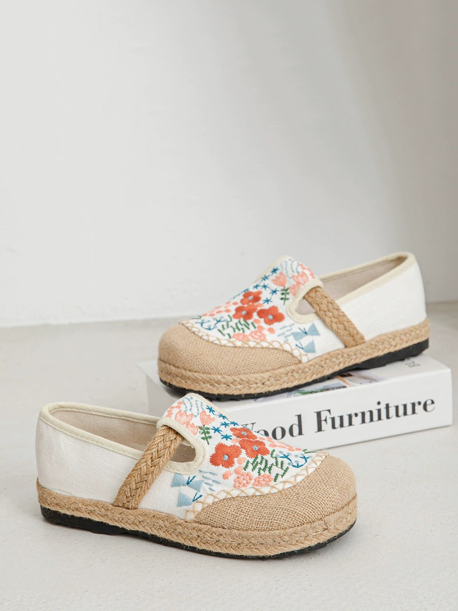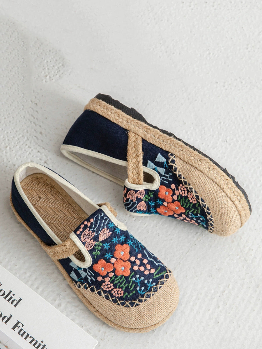 Women Summer Ethnic Flower Embroidery Canvas Linen Shoes