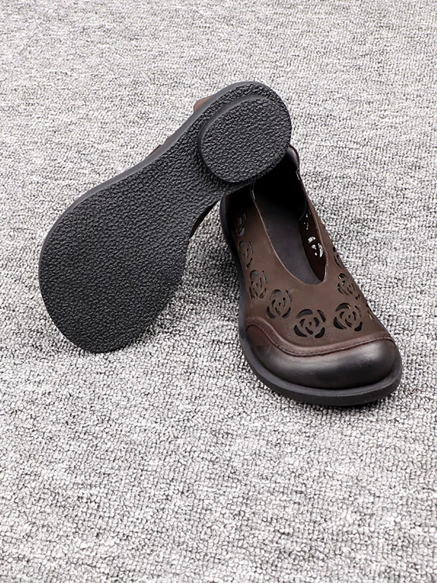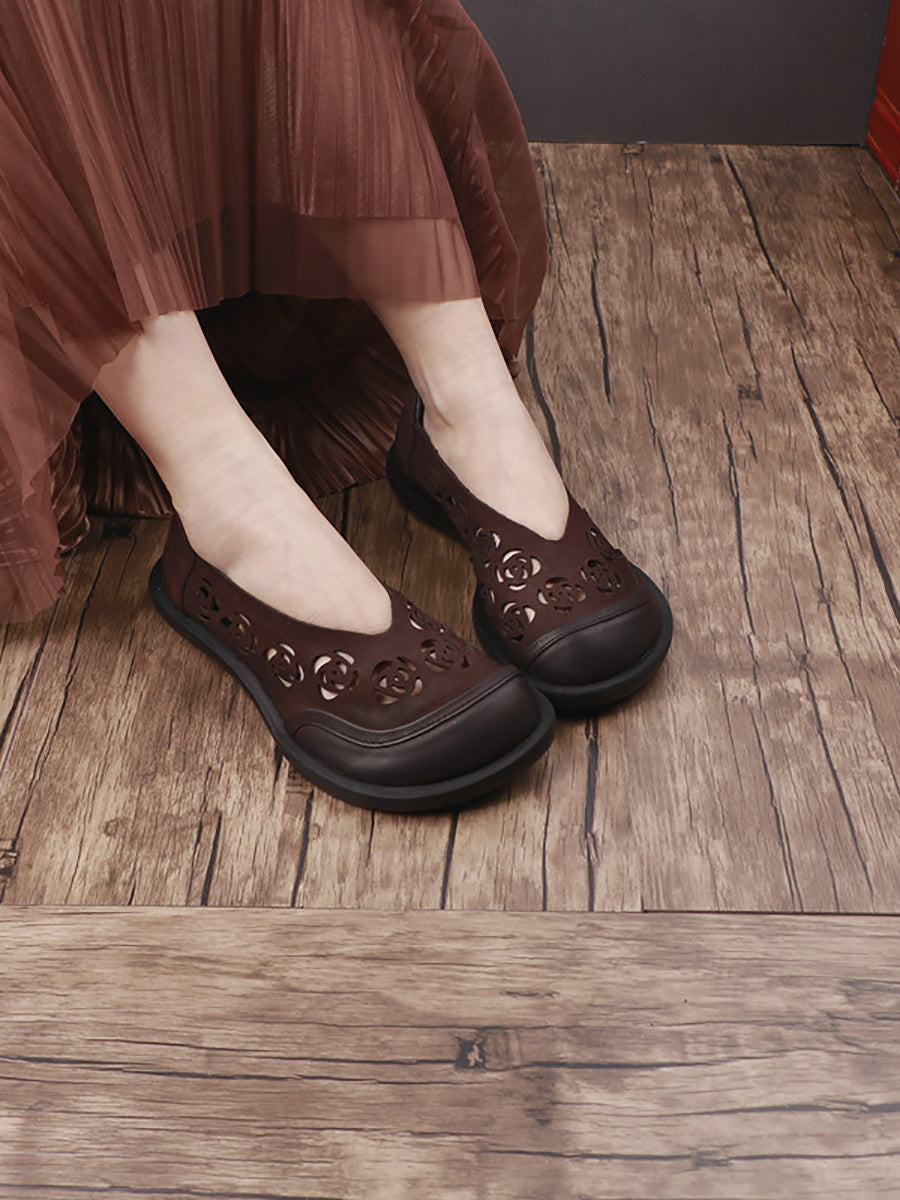 Women Summer Genuine Leather Hollow Out Flat Shoes