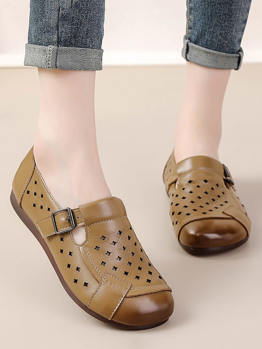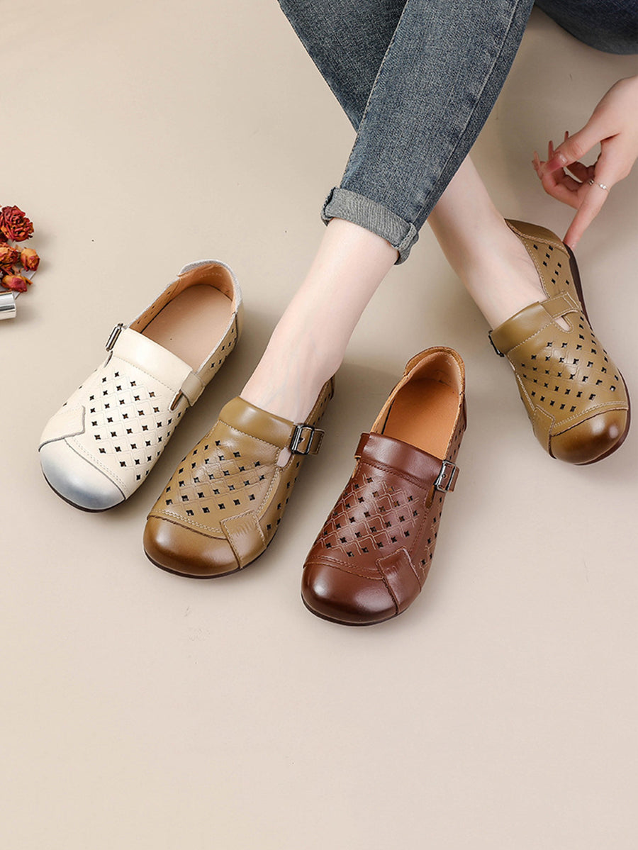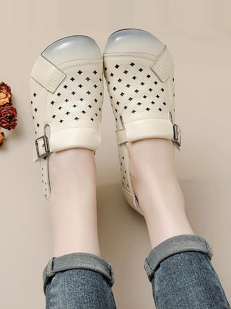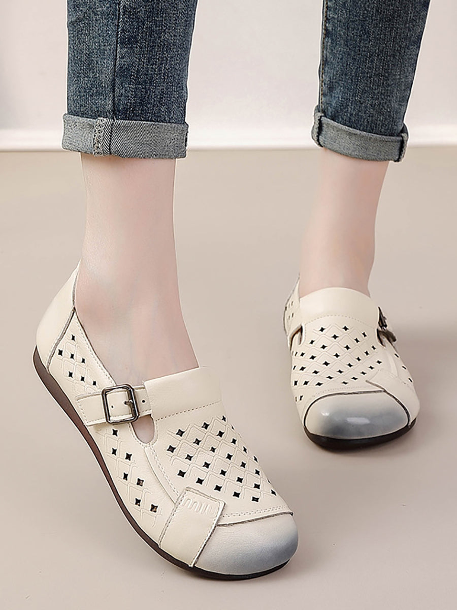 Women Summer Genuine Leather Spliced Flat Shoes