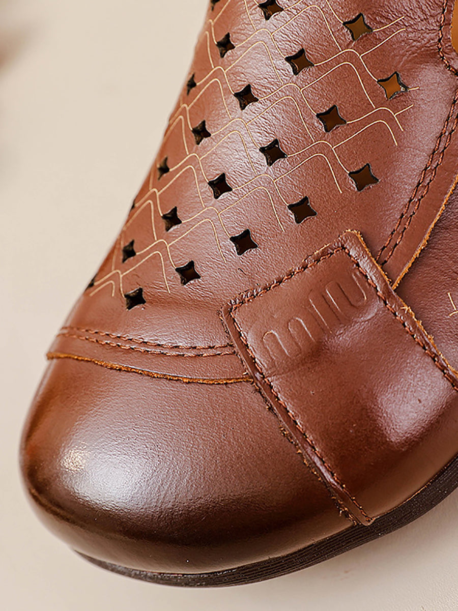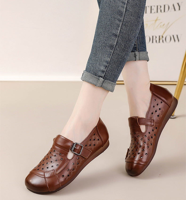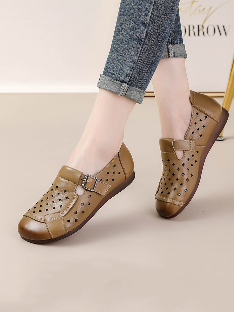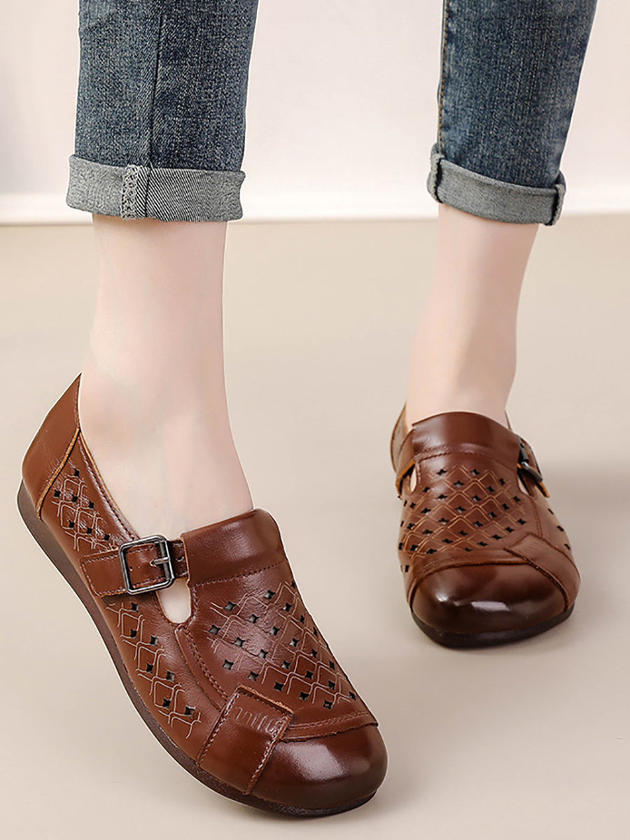 Women Summer Genuine Leather Spliced Flat Shoes