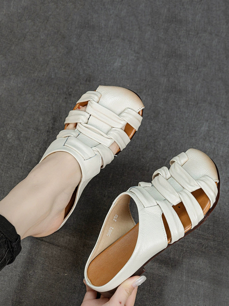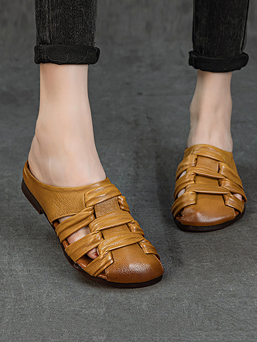 Women Summer Genuine Leather Weave Slippers