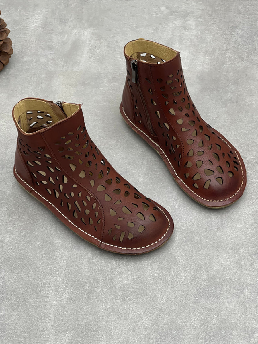 Women Summer Hollow Out Genuine Leather Boots
