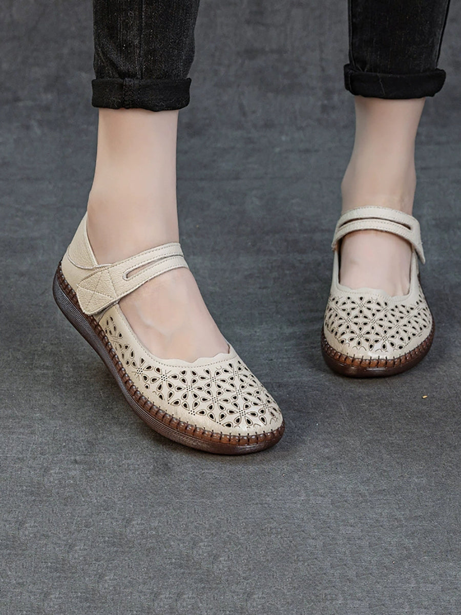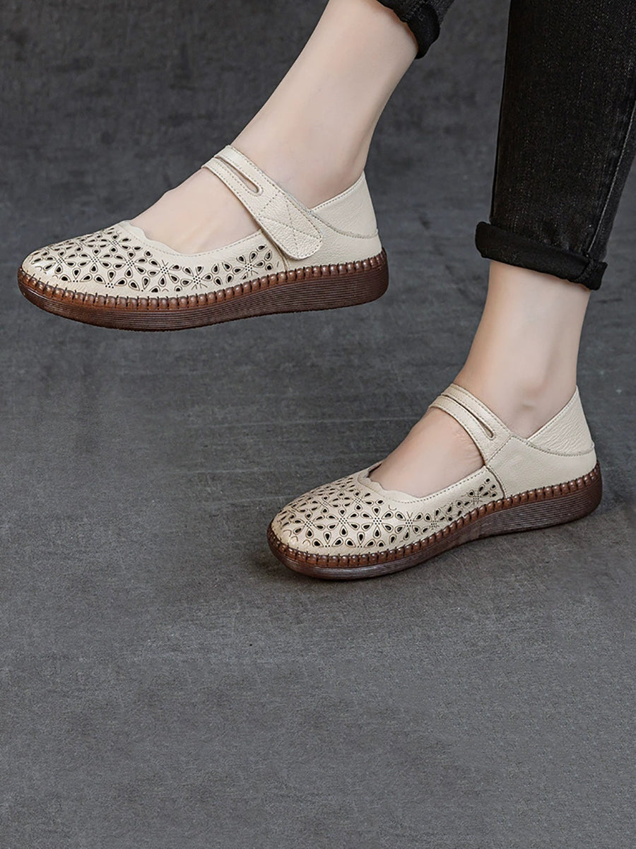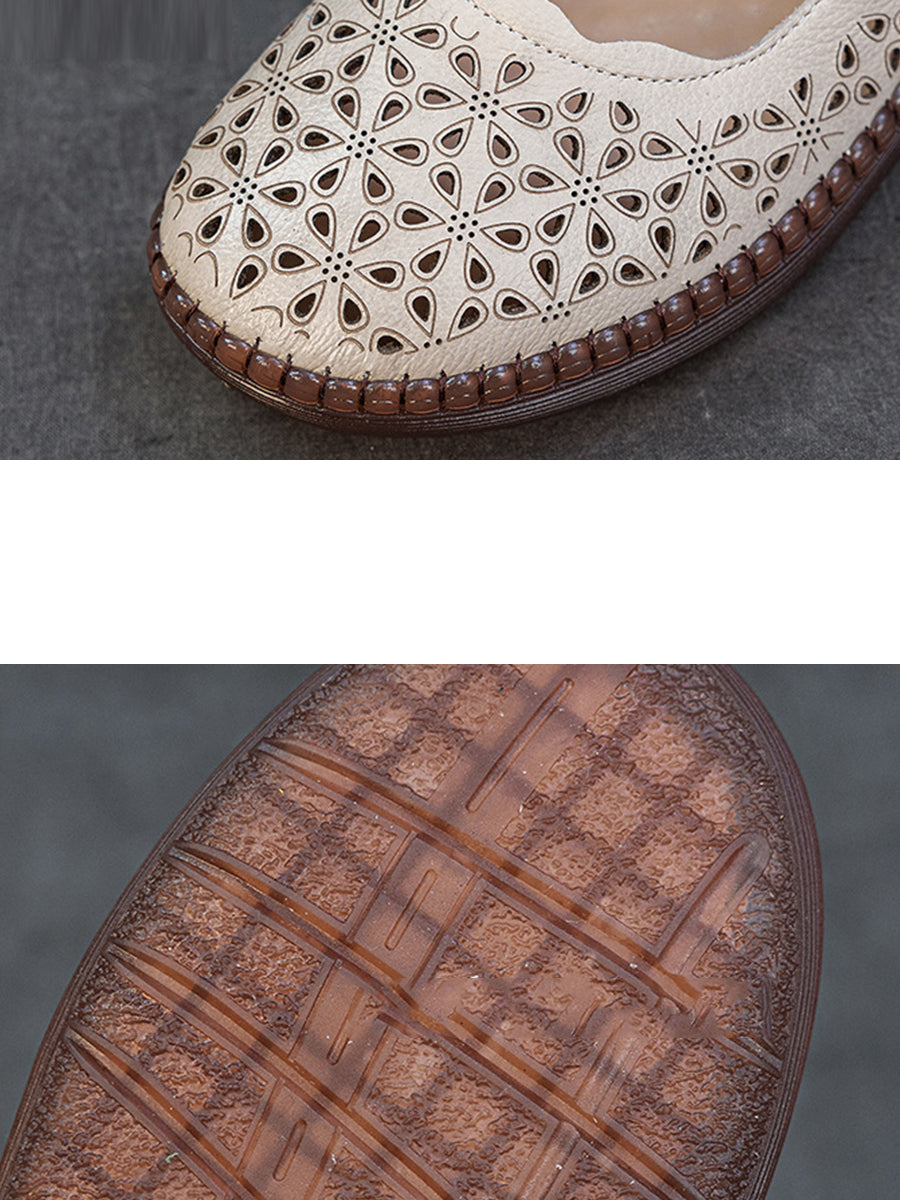 Women Summer Hollow Out Leather Flat Sandals