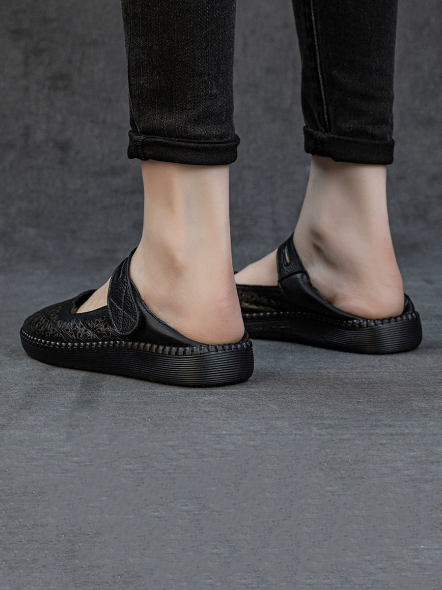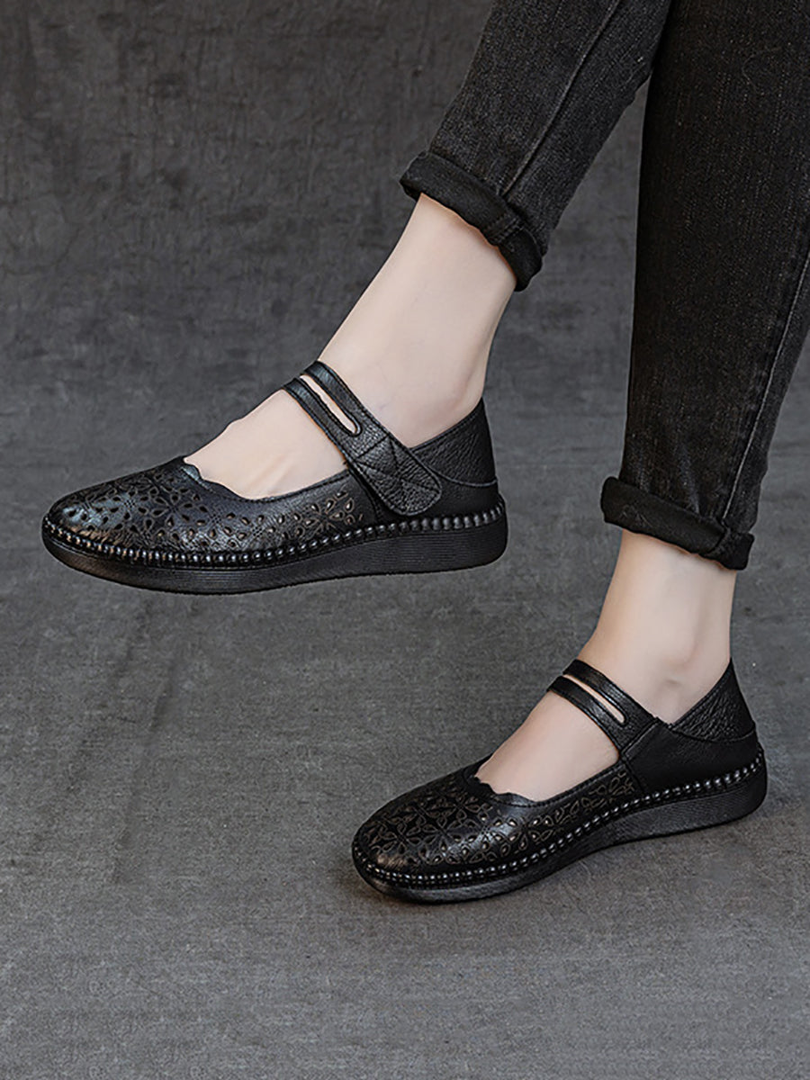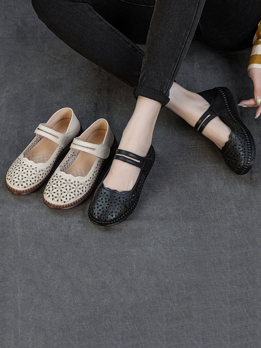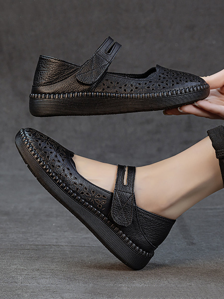 Women Summer Hollow Out Leather Flat Sandals