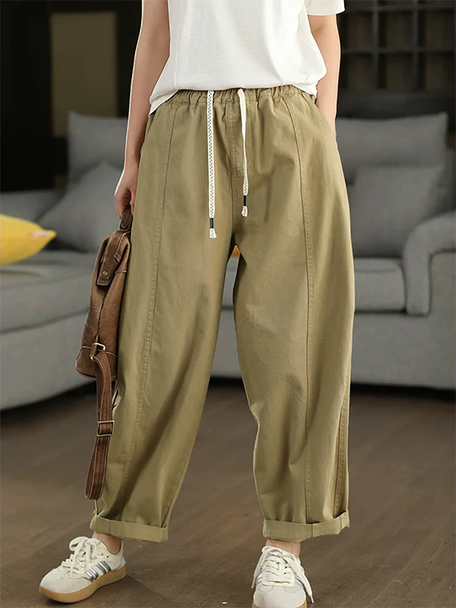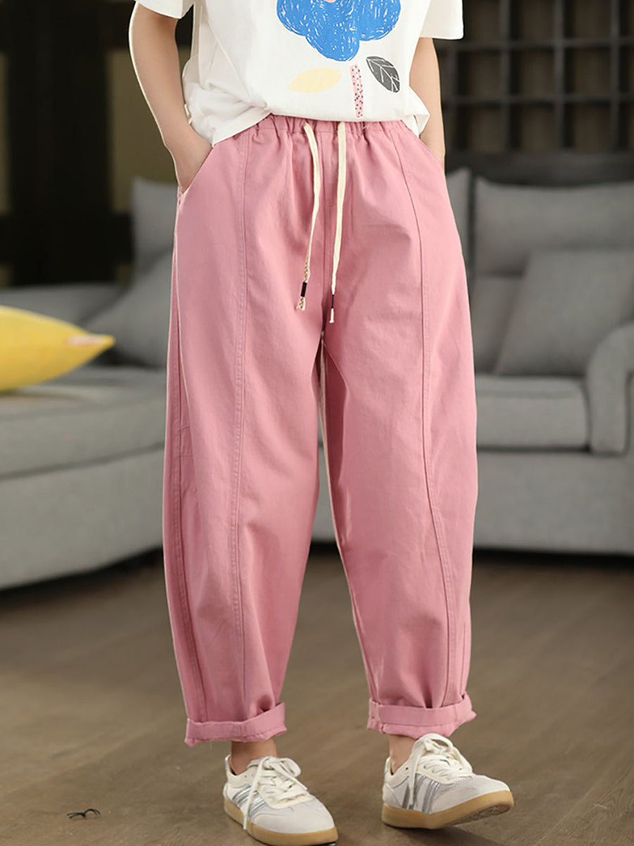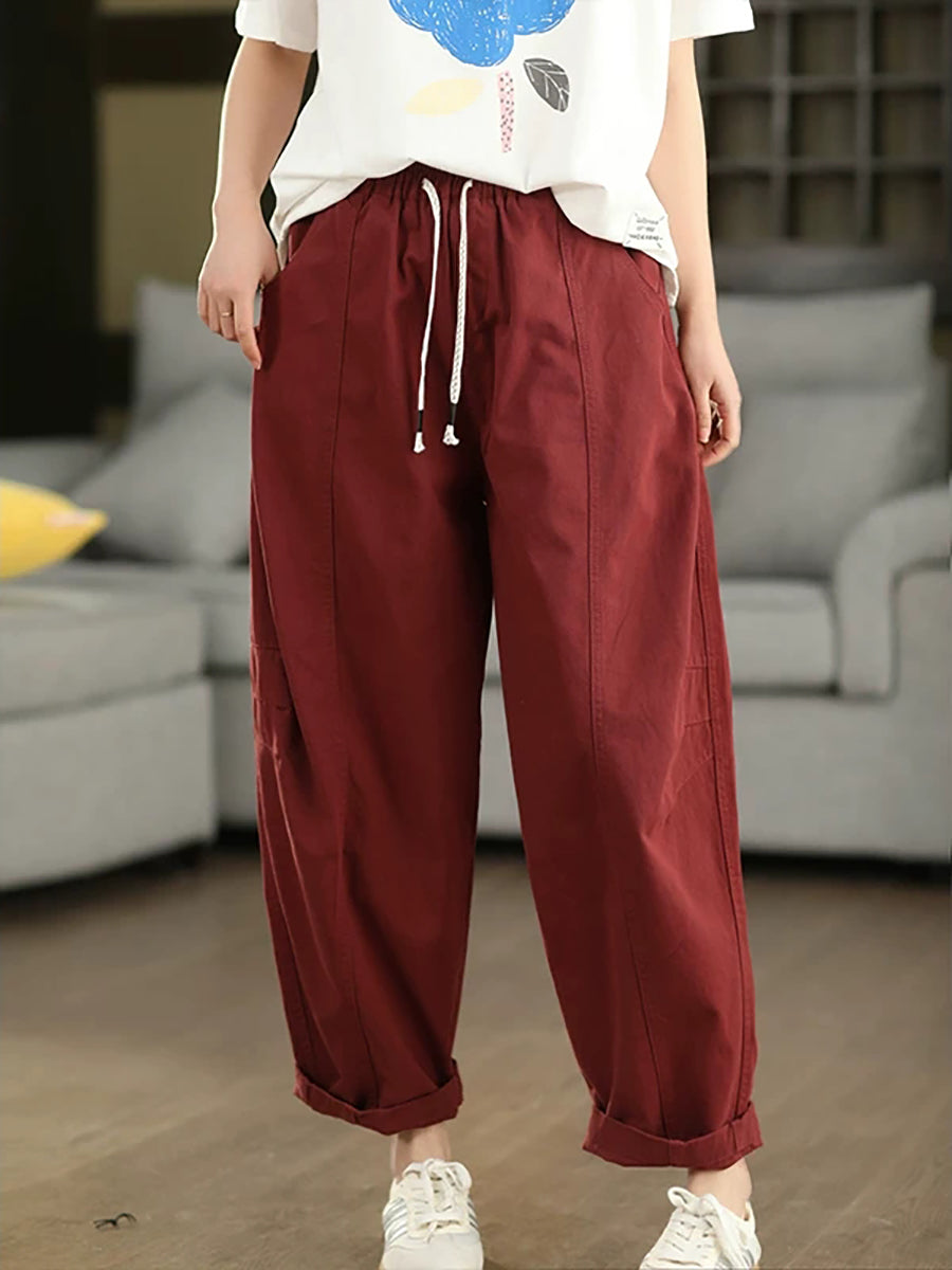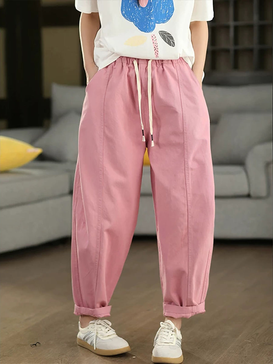 Women Summer Pure Color Cotton Harem Pants