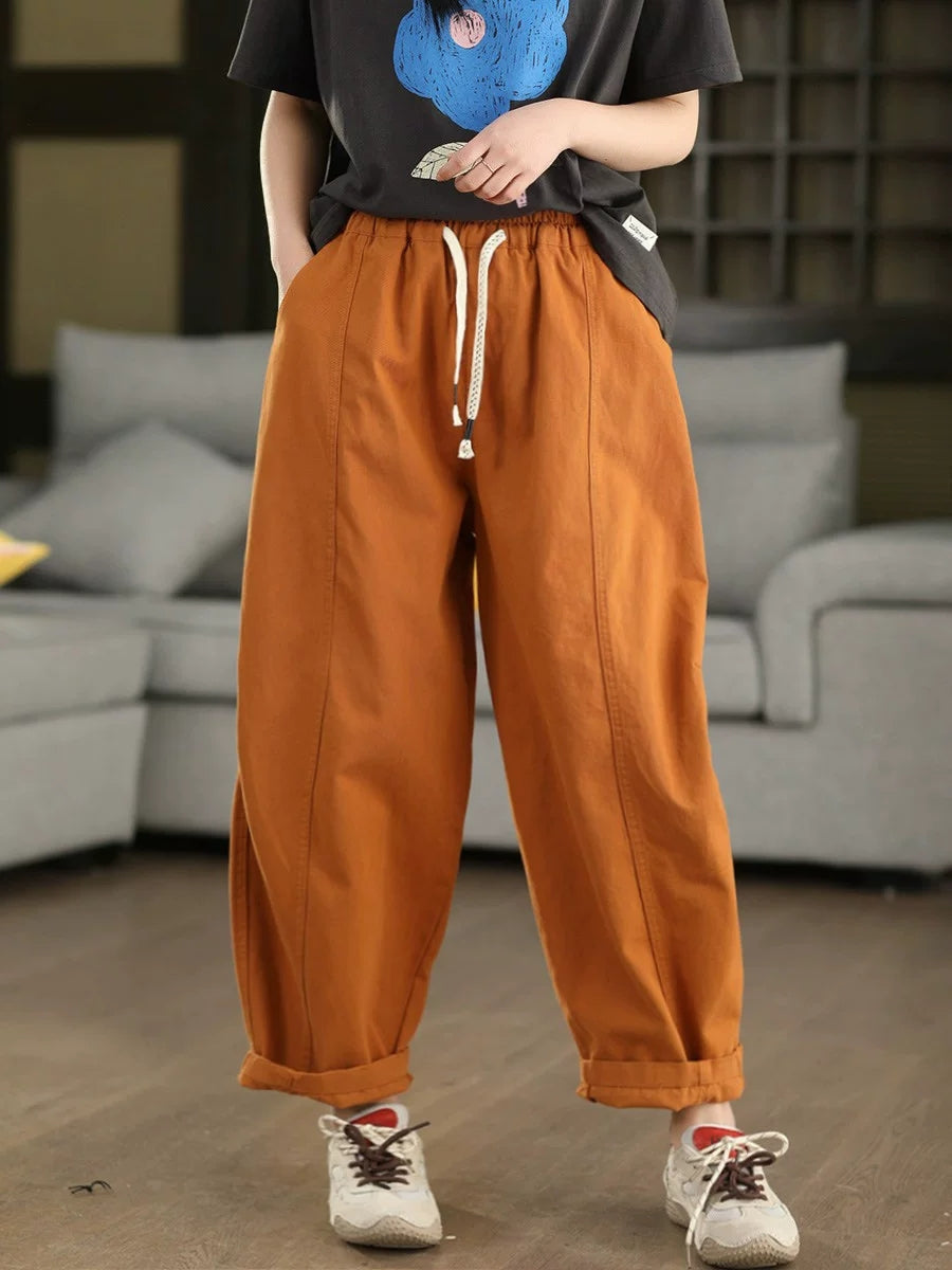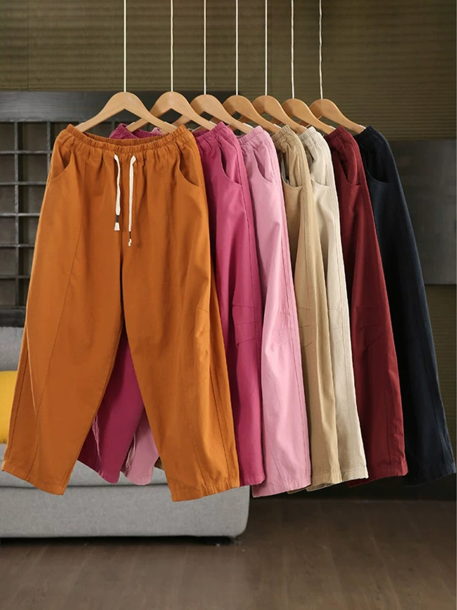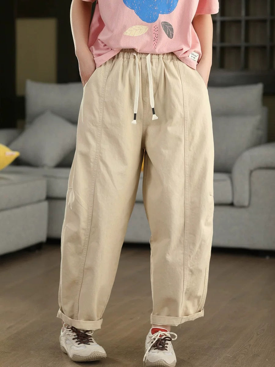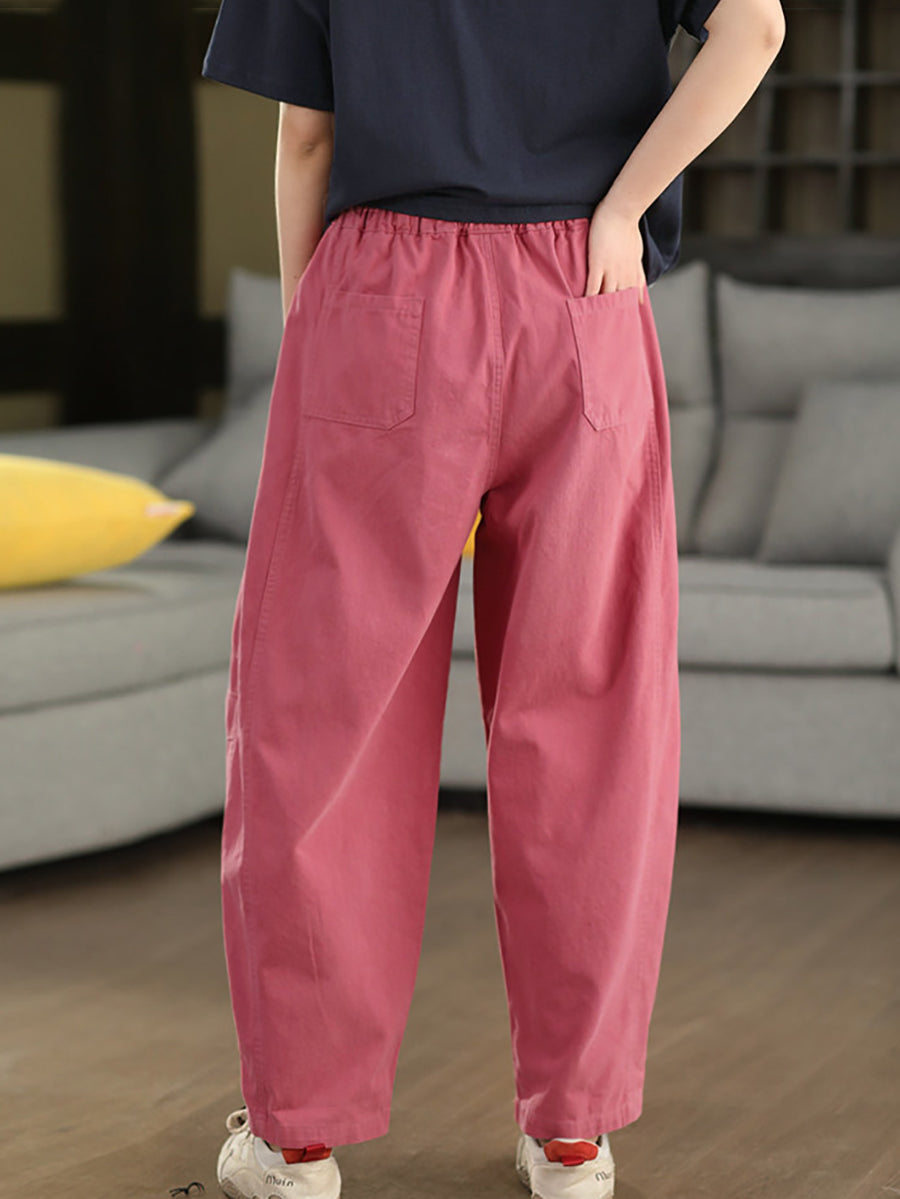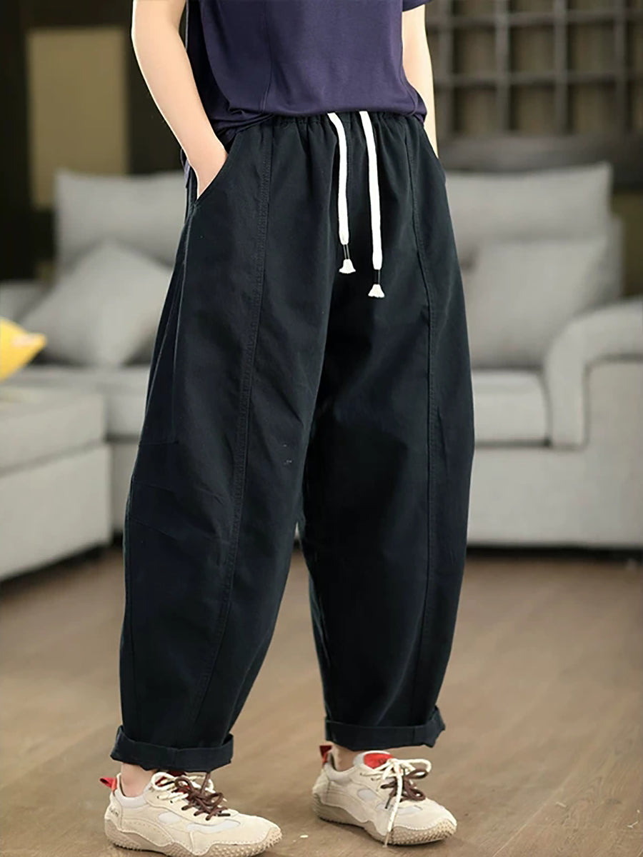 Women Summer Pure Color Cotton Harem Pants
