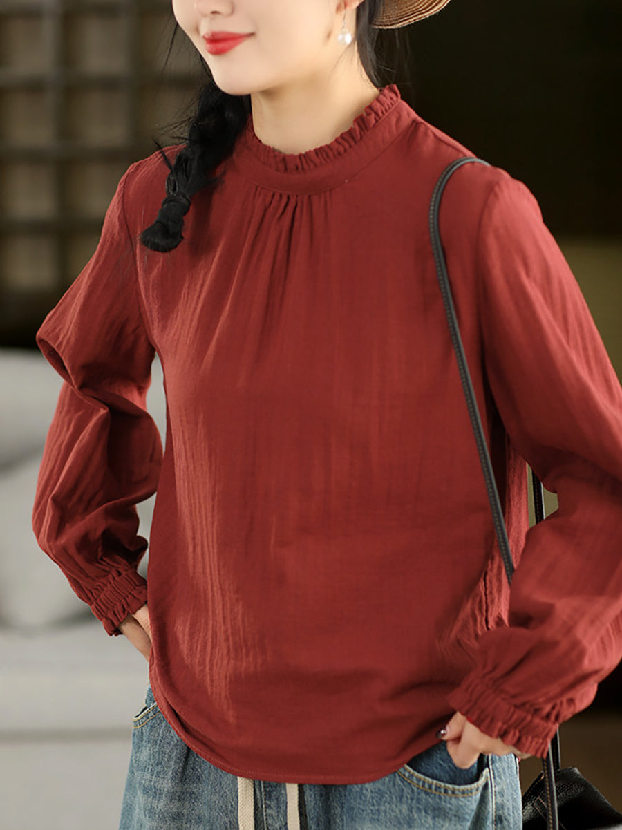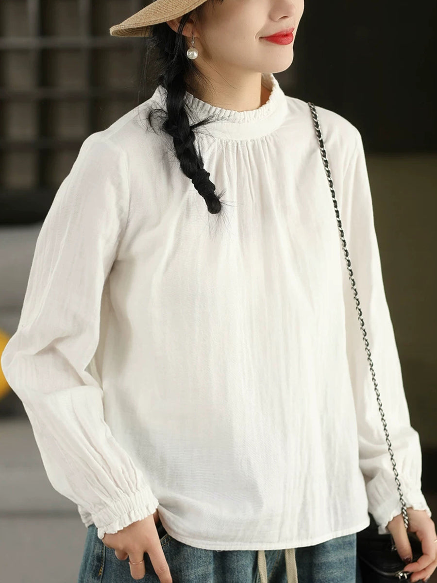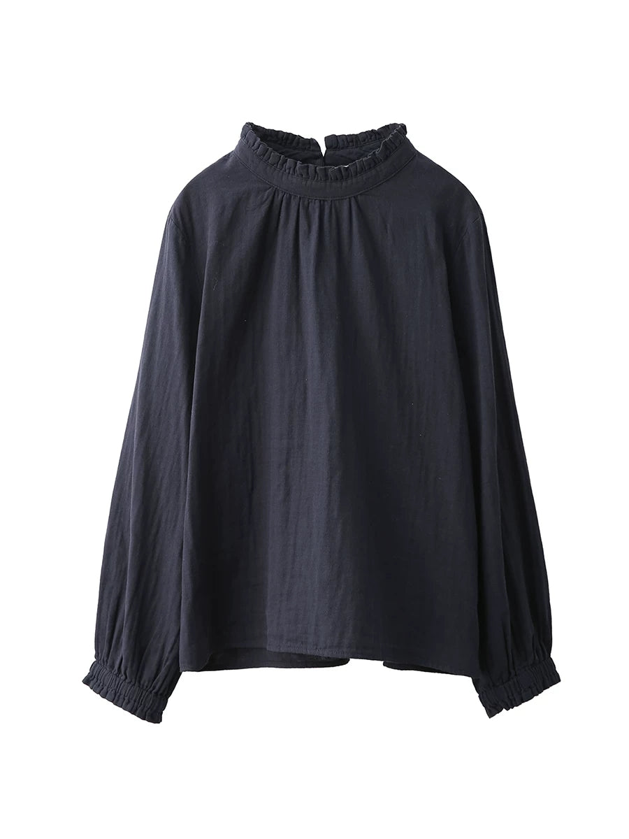 Women Summer Pure Color O-Neck 100%Cotton Blouse