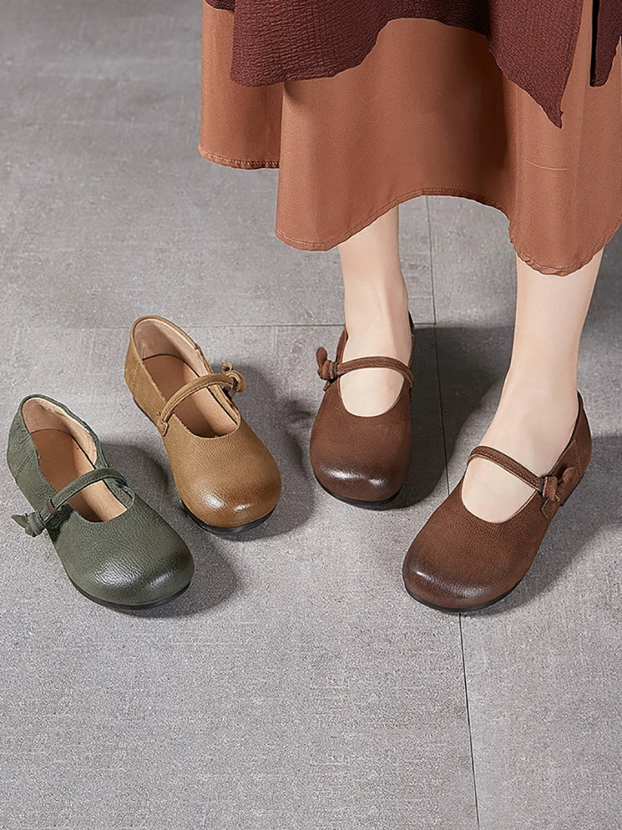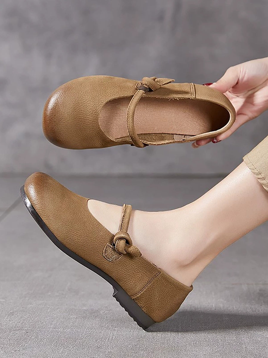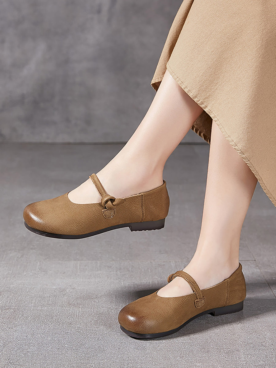 Women Summer Versatile Soft Leather Low Heel Shoes