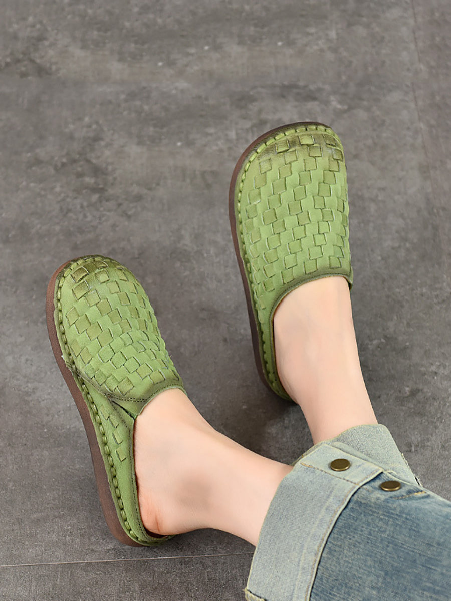 Women Summer Vintage Leather Weaving Slippers