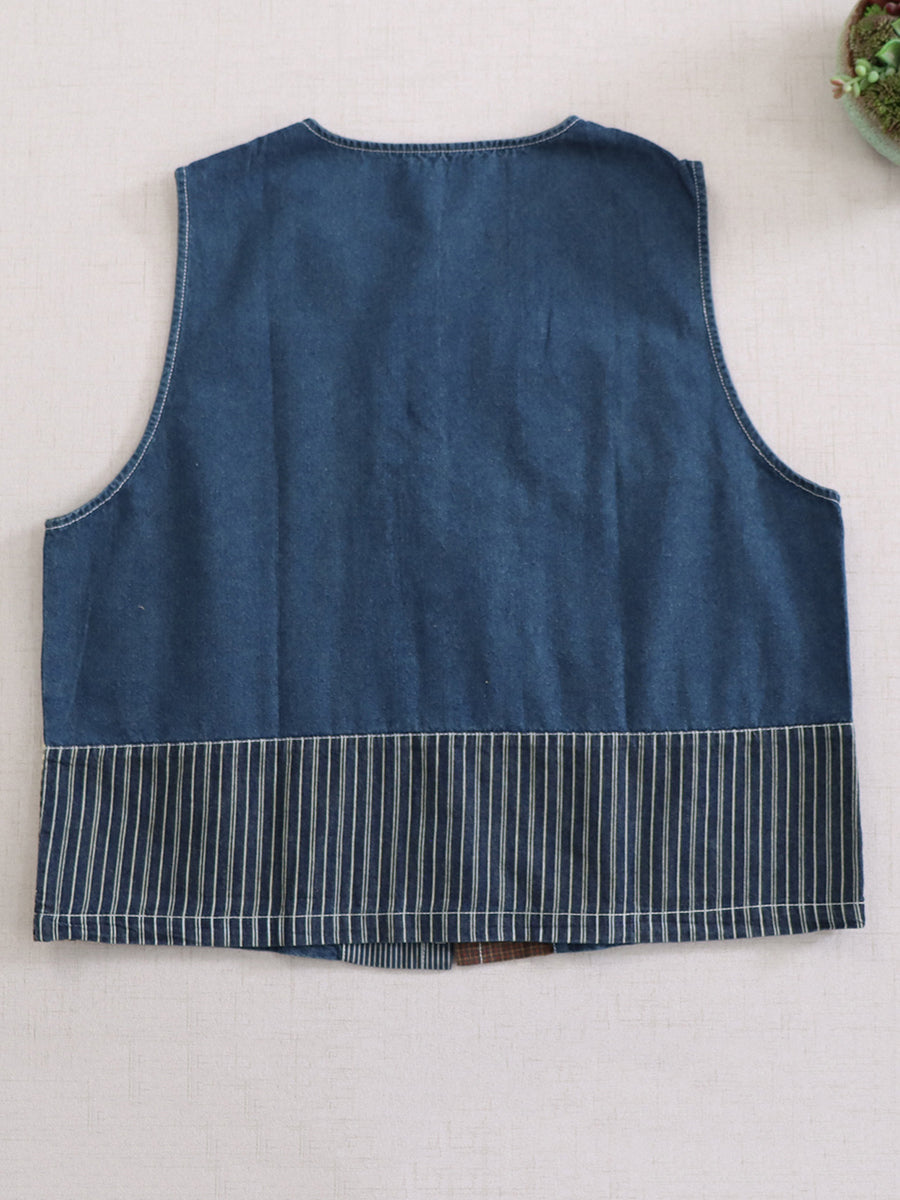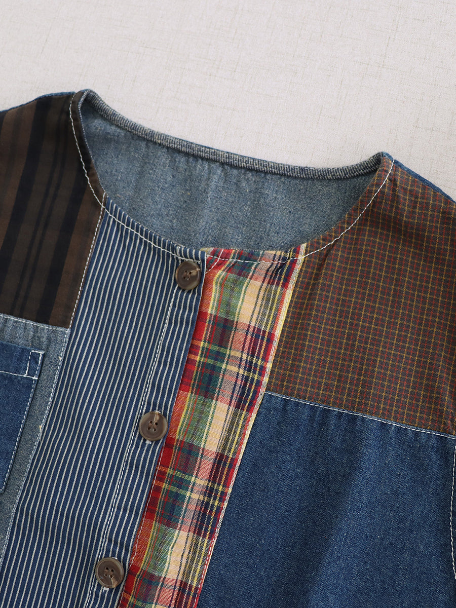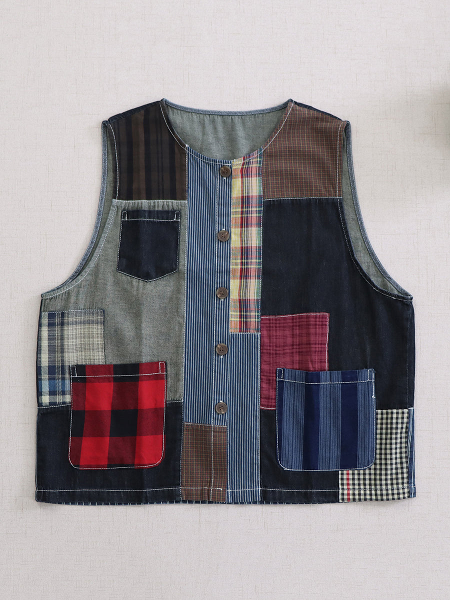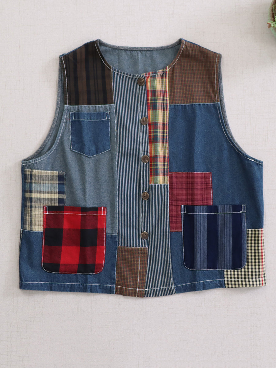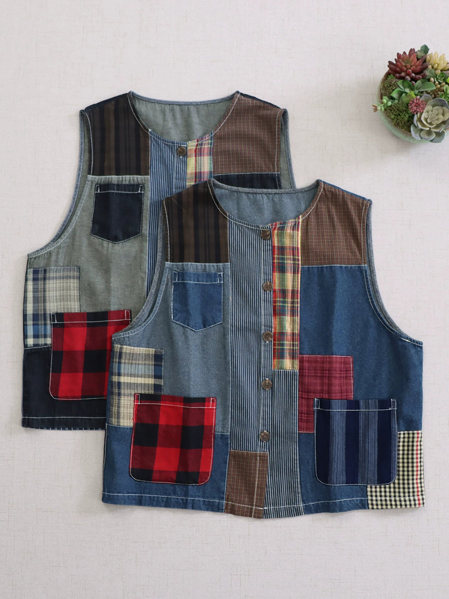 Women Summer Vintage Patchwork Cotton O-Neck Vest
