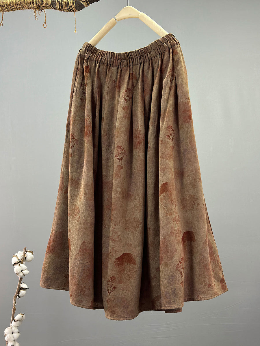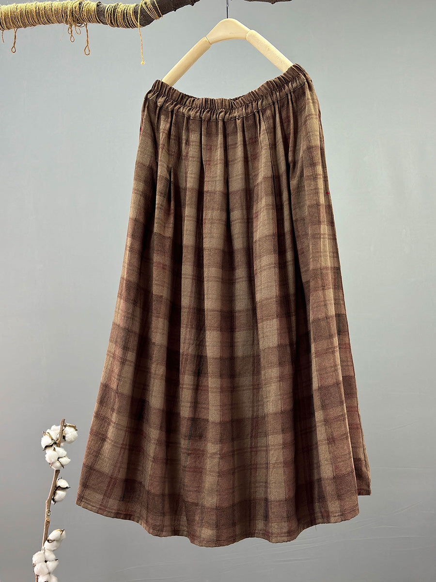 Women Summer Vintage Plaid 100%Cotton Skirt