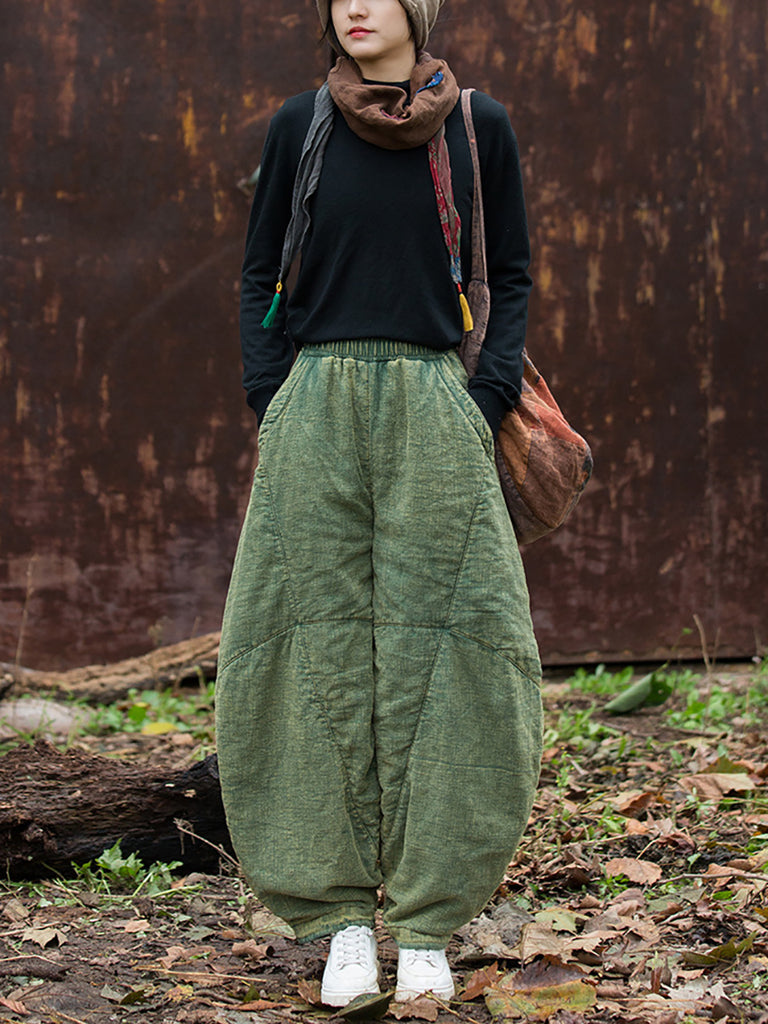 Women Vintage Autumn Solid Spliced Padded Harem Pants
