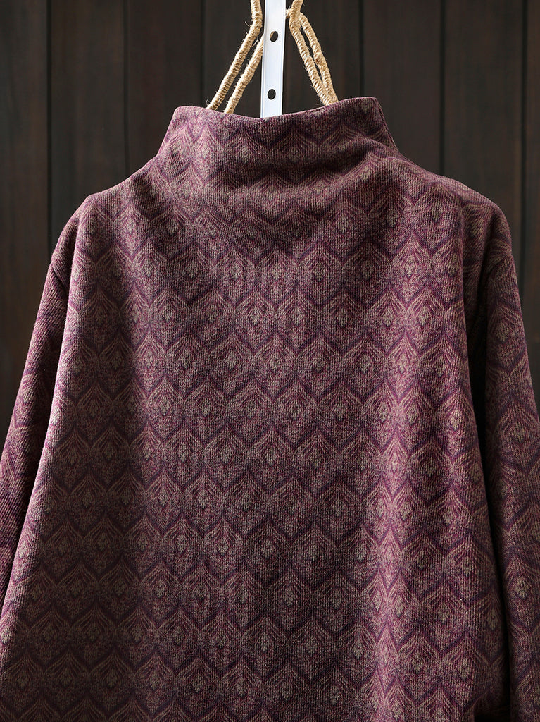 Women Vintage Autumn Stripe Half-Turtleneck Cotton Blouse