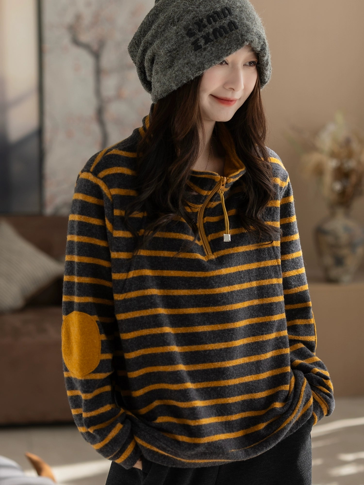 Crafted from a premium blend of 78% acrylic, 19% nylon, and 3% spandex, this vintage-inspired blouse delivers both comfort and durability. The classic stripe pattern pairs seamlessly with a structured stand collar, while full-length regular sleeves provide timeless coverage. Designed for autumn and winter wear, this retro piece captures nostalgic elegance with modern fabric technology for everyday sophistication.