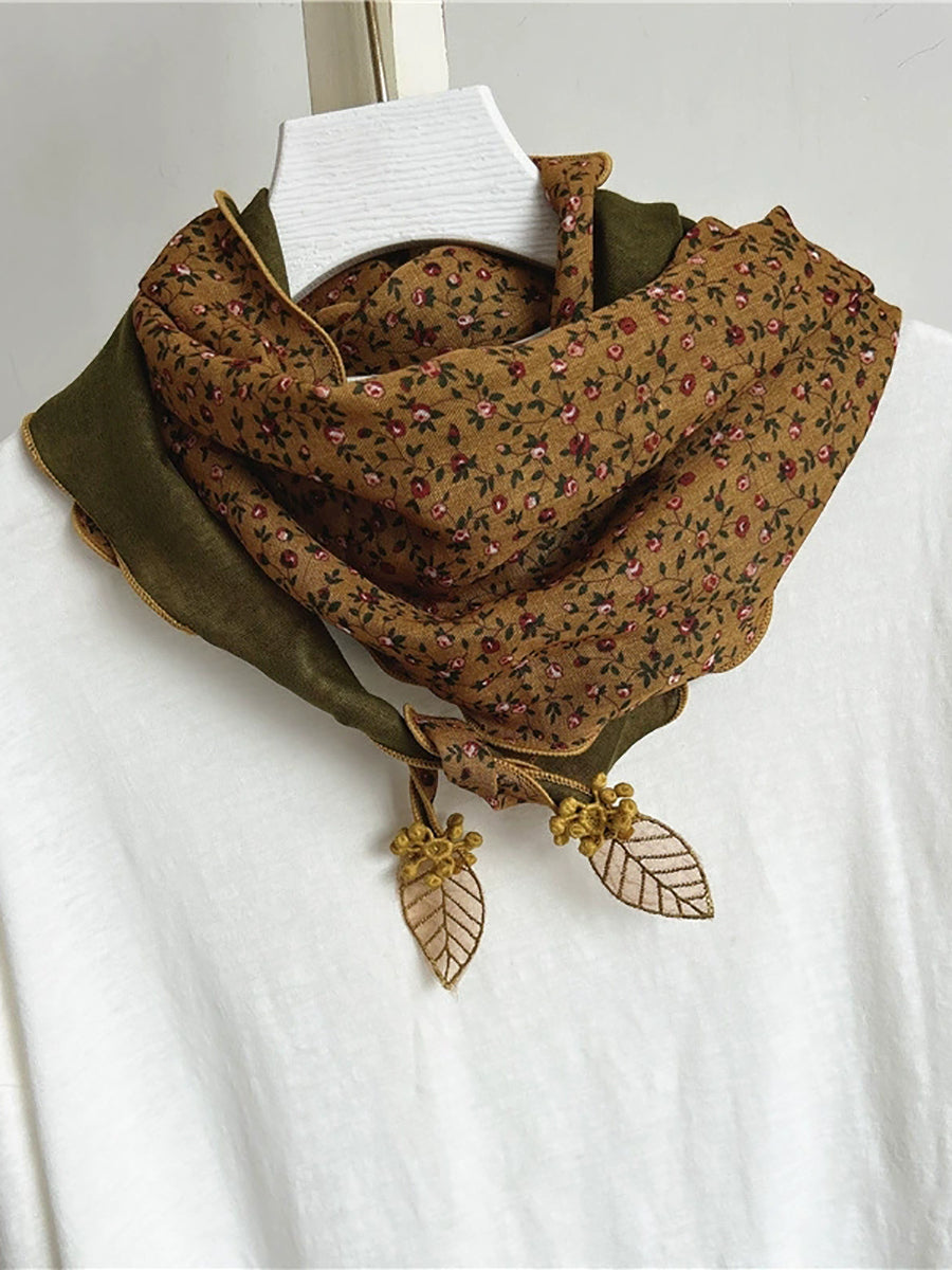Women Vintage Floral Spliced Triangle Scarf