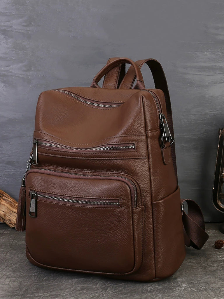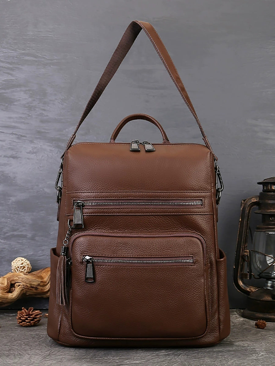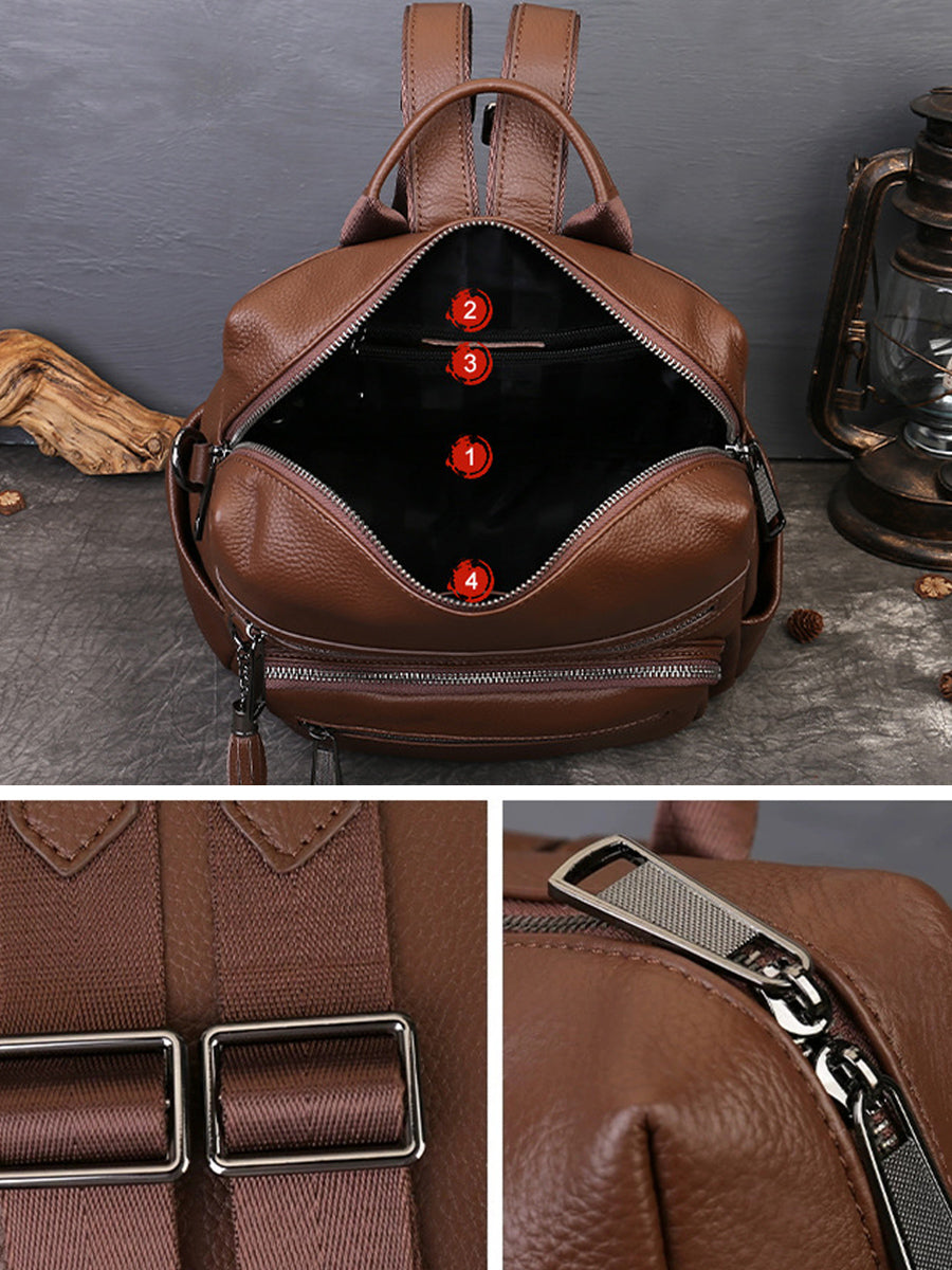 Women Vintage Genuine Leather Large Capacity Backpack