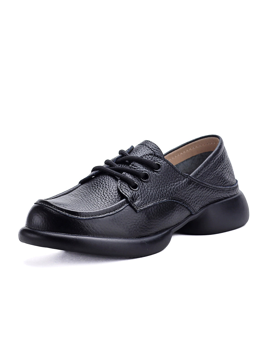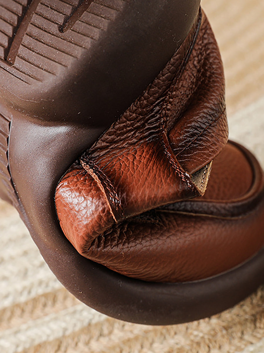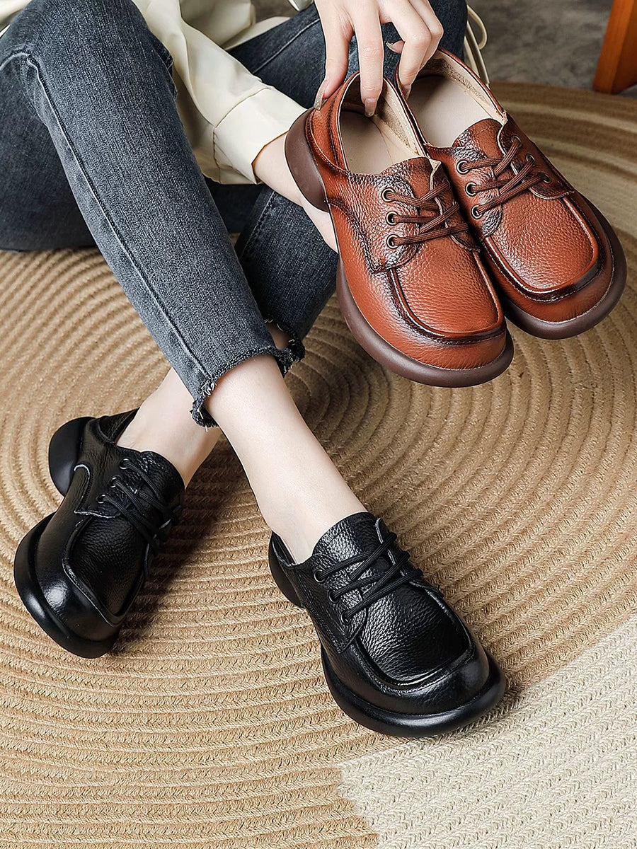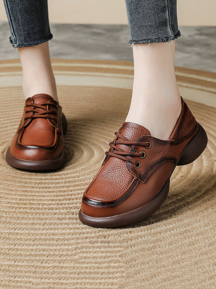Women Vintage Genuine Leather Mid Heel Shoes
