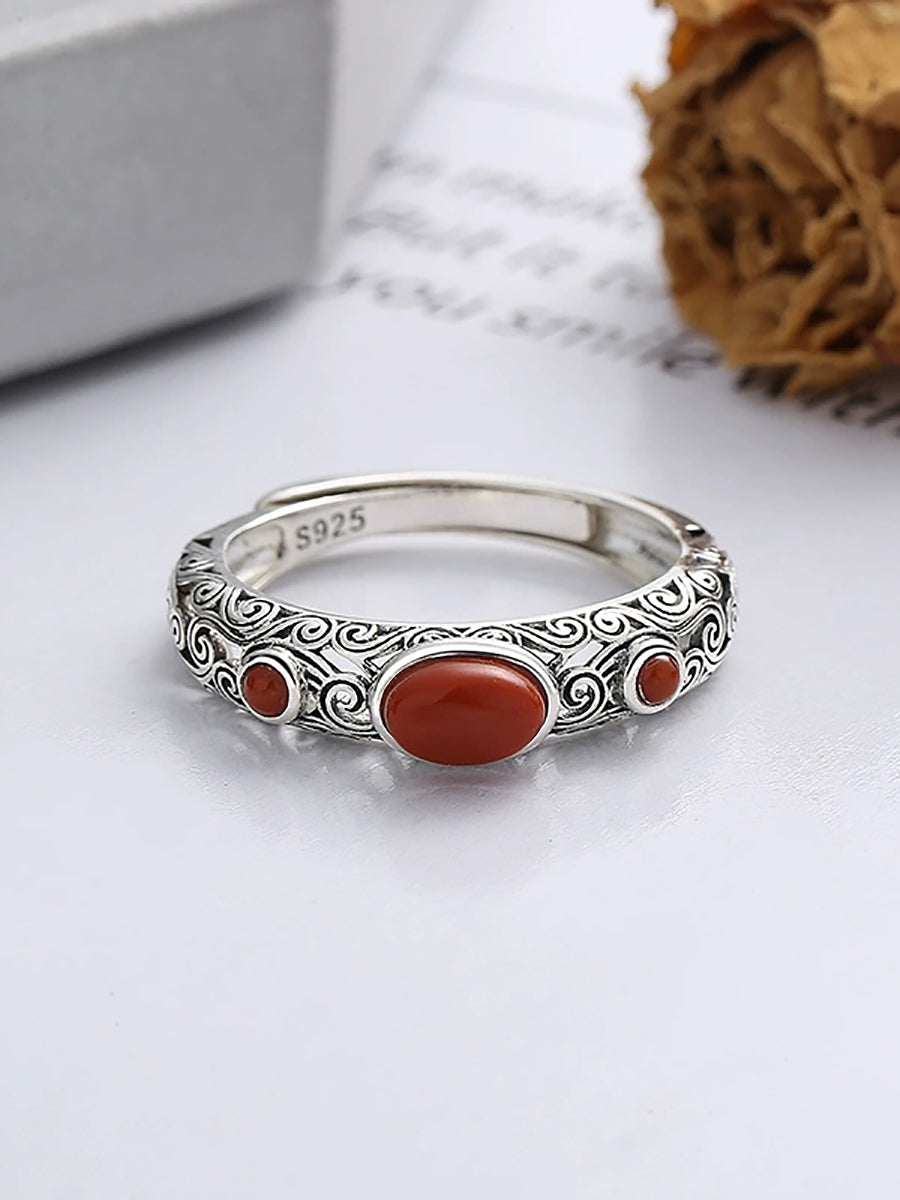Women Vintage S925Silver Red Agate Adjustable Ring