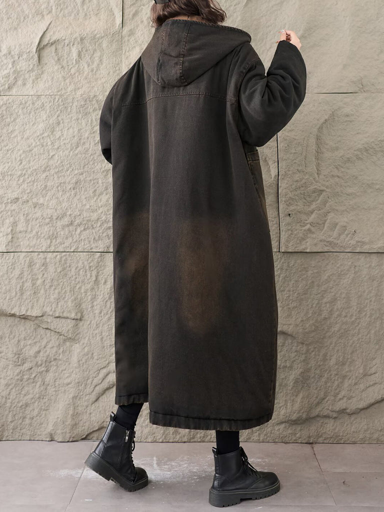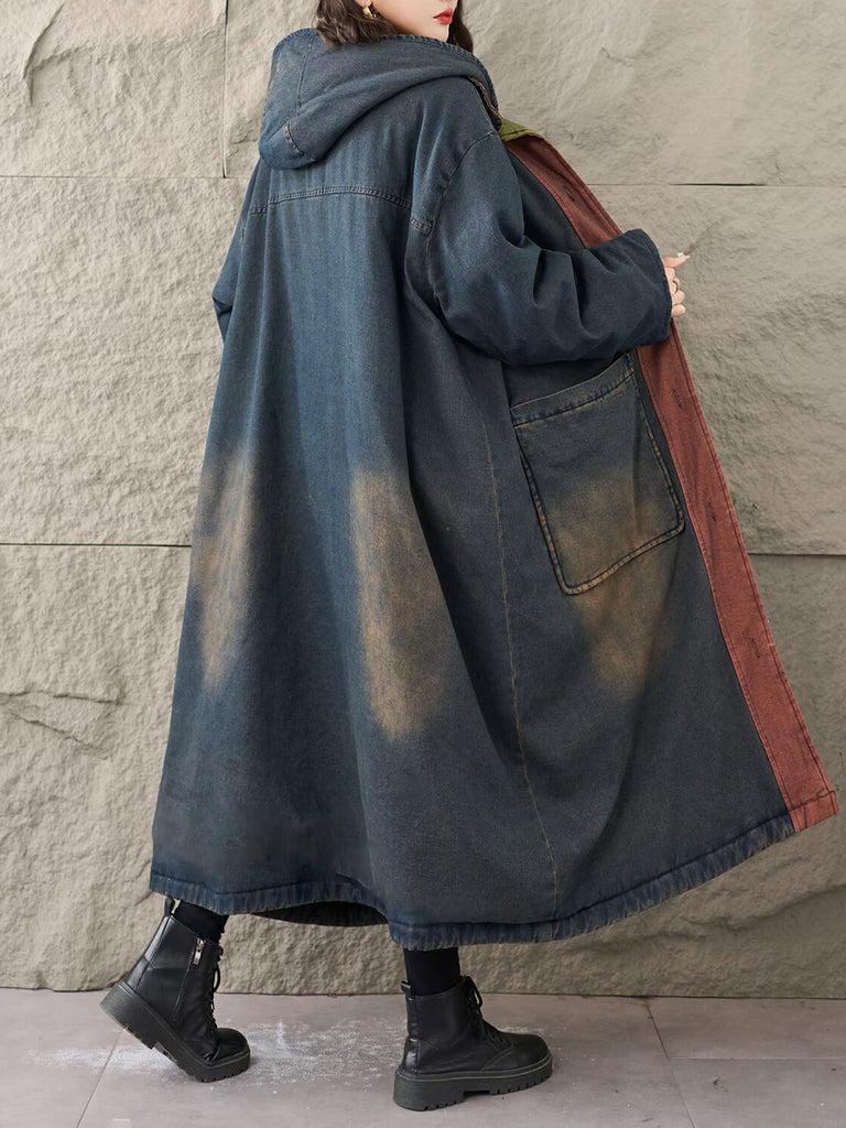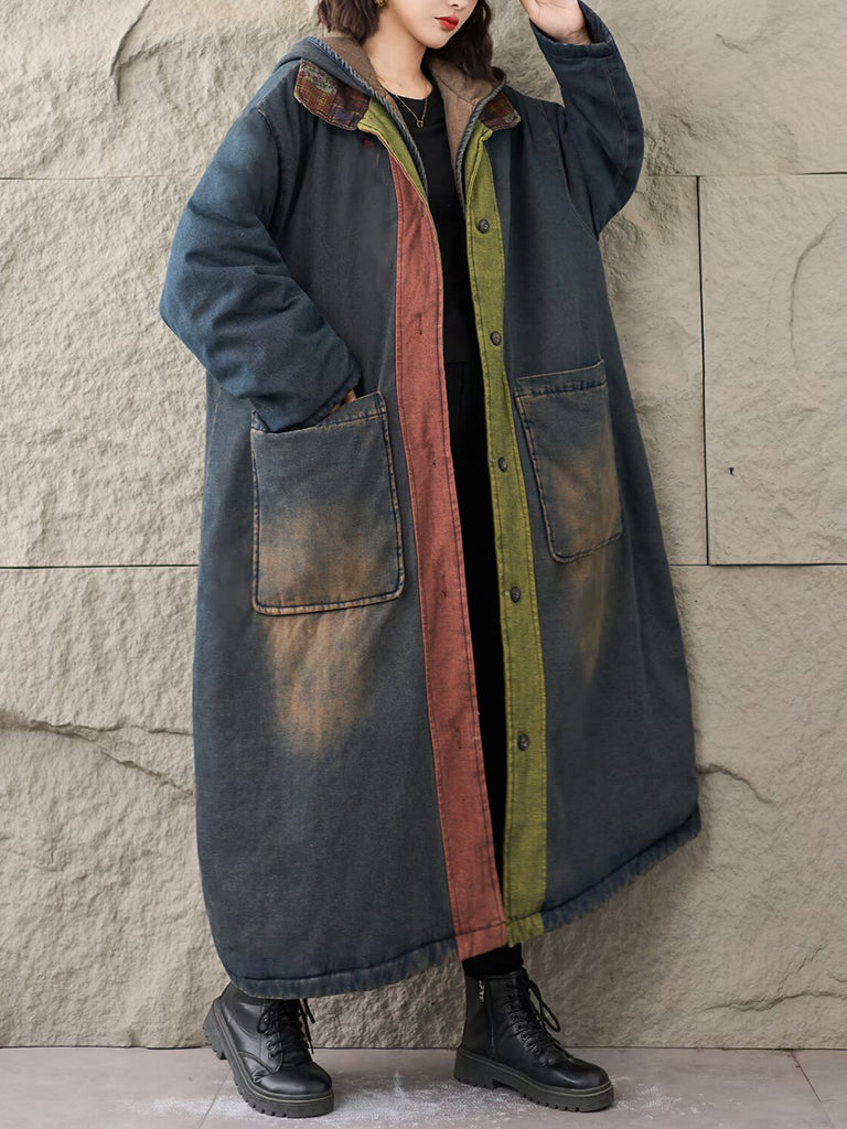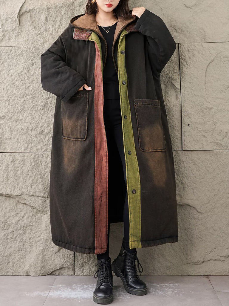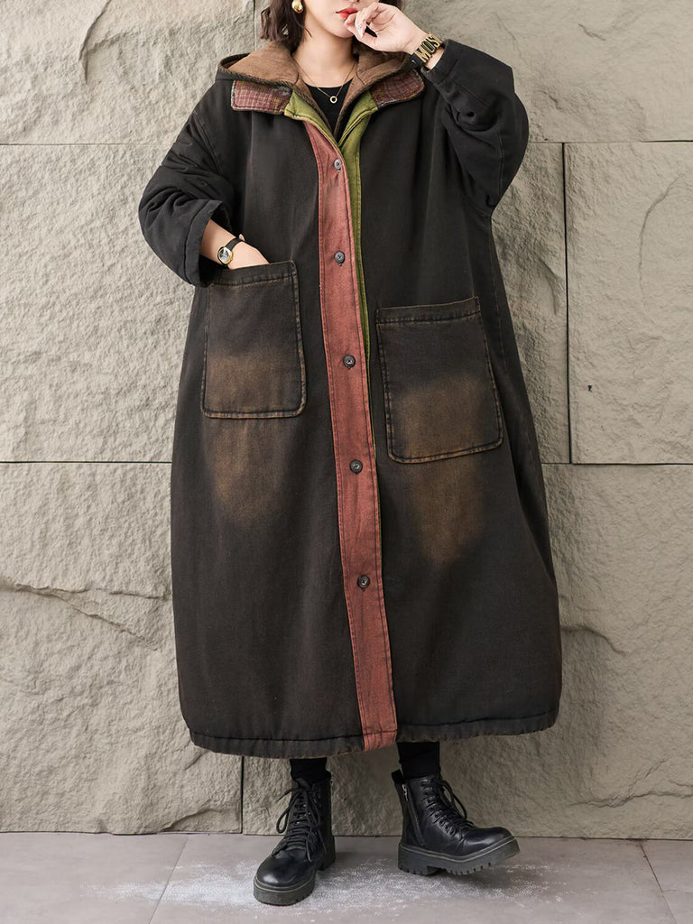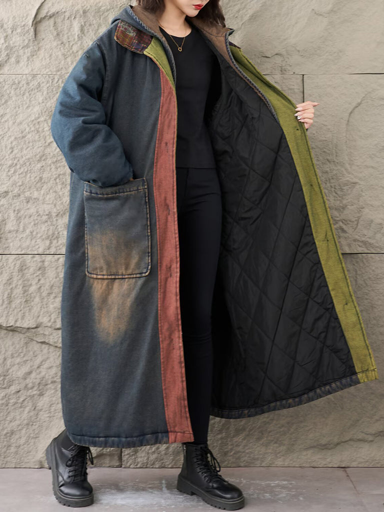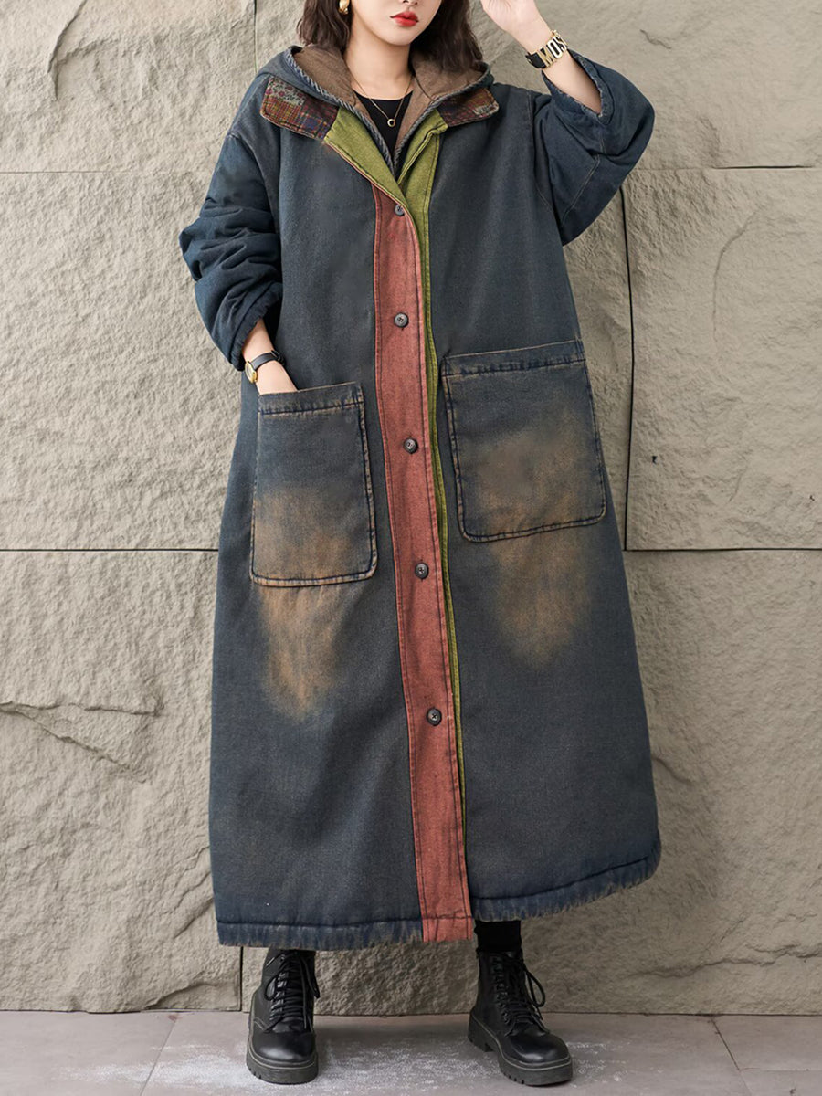 Crafted from cotton, this vintage-inspired padded coat features a spliced design and a hooded collar. It offers full-length, classic-style sleeves, making it an ideal outer layer for autumn and winter seasons.