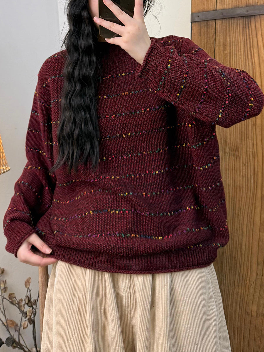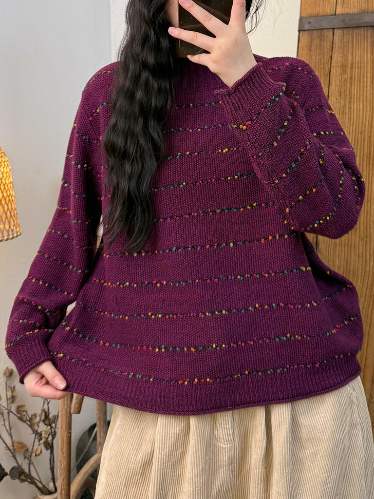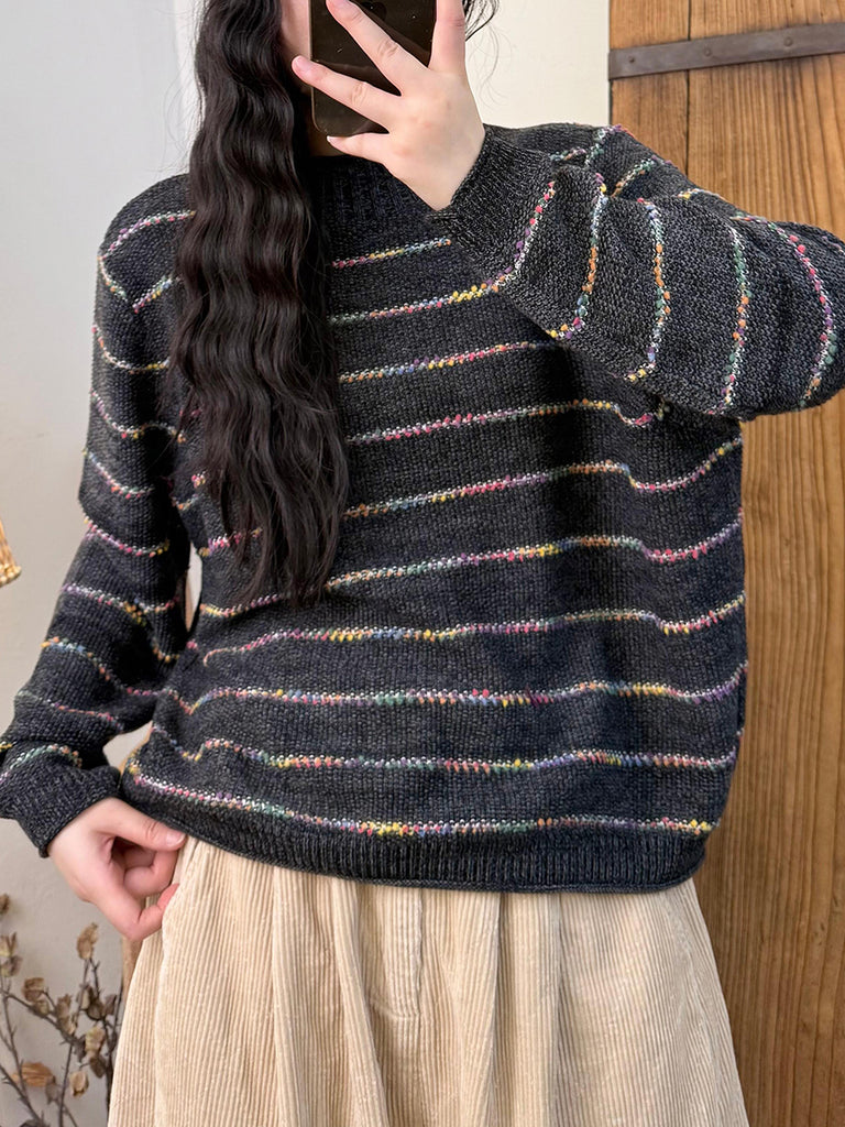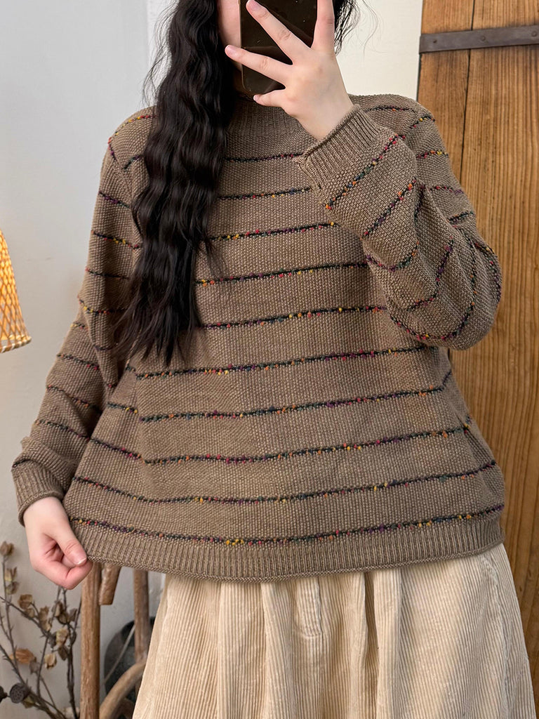 Women Vintage Stripe Half-Turtleneck Knitted Sweater
