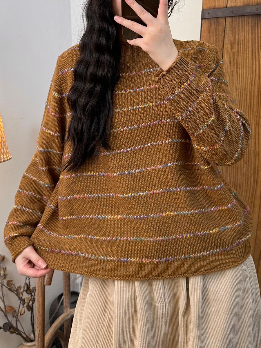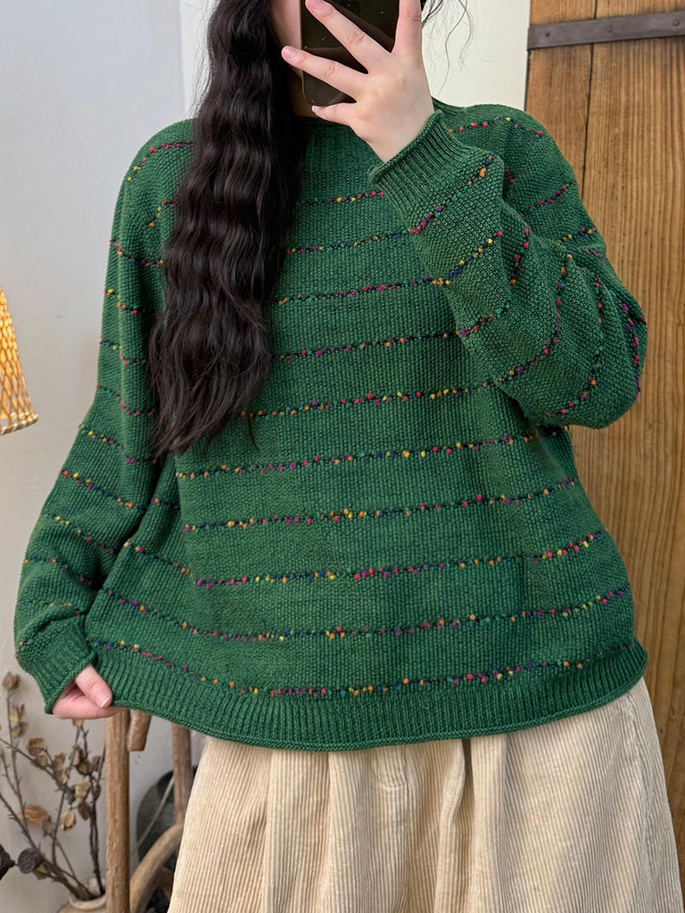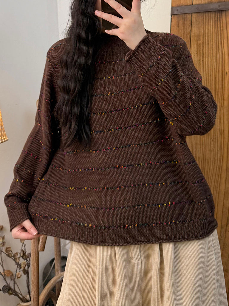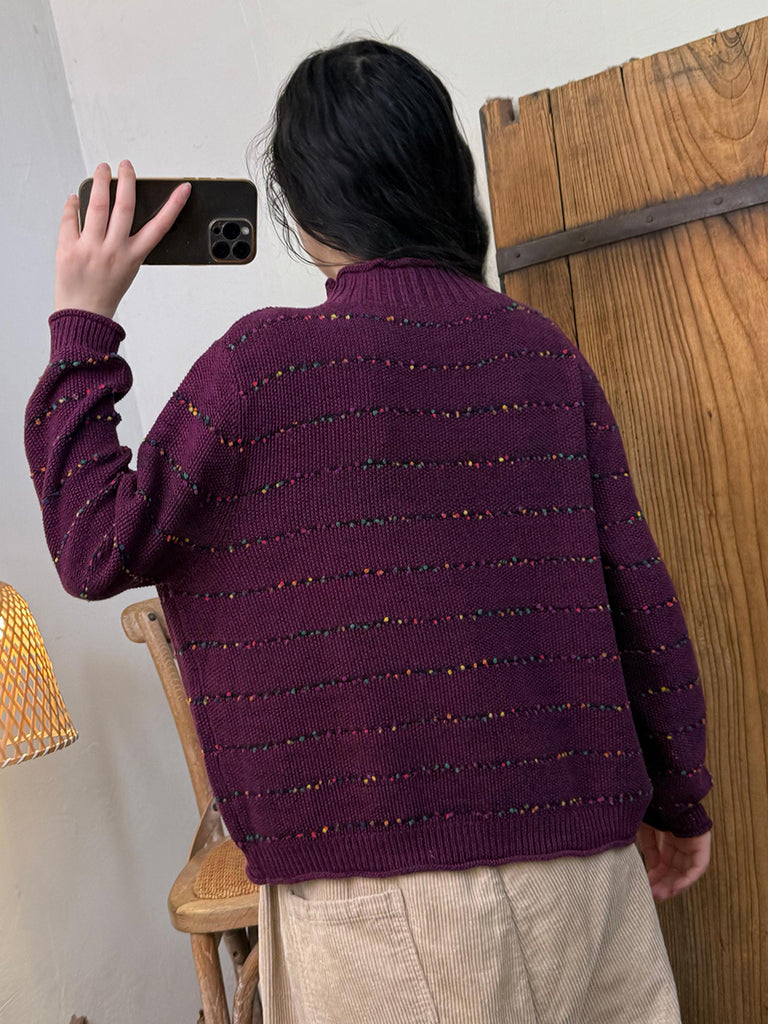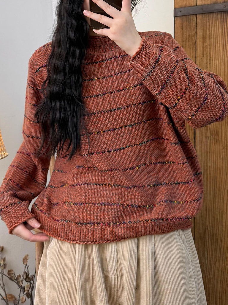Women Vintage Stripe Half-Turtleneck Knitted Sweater