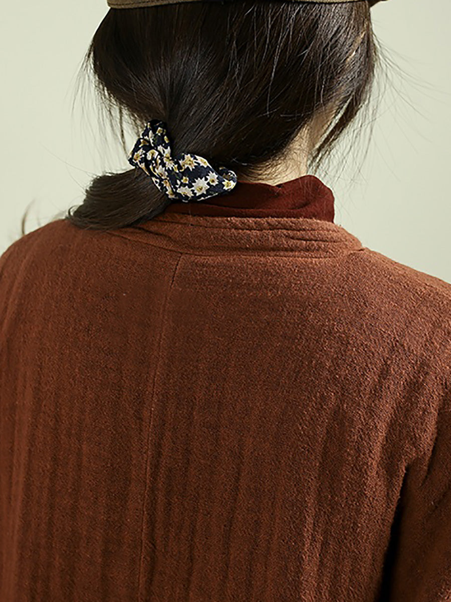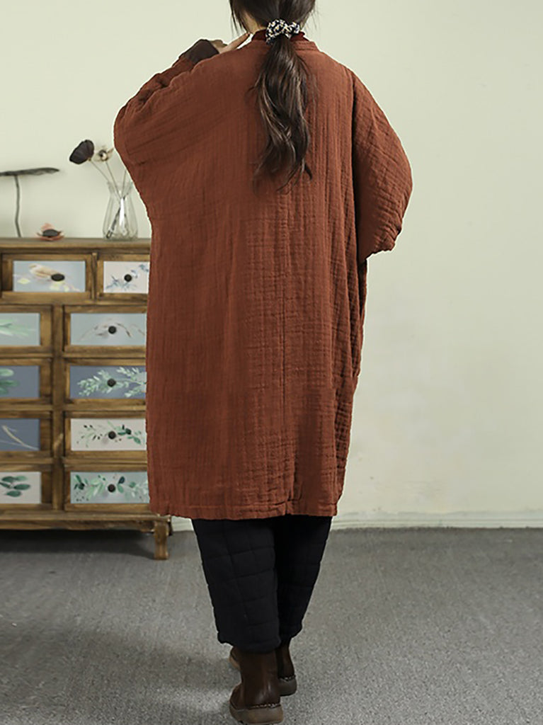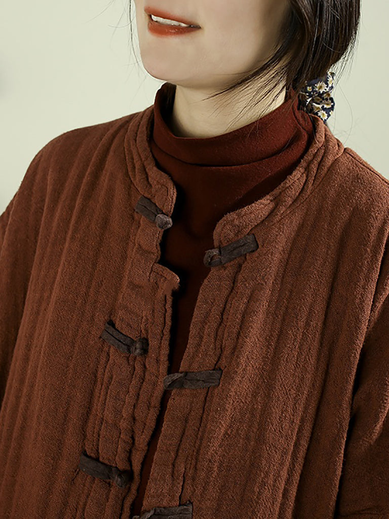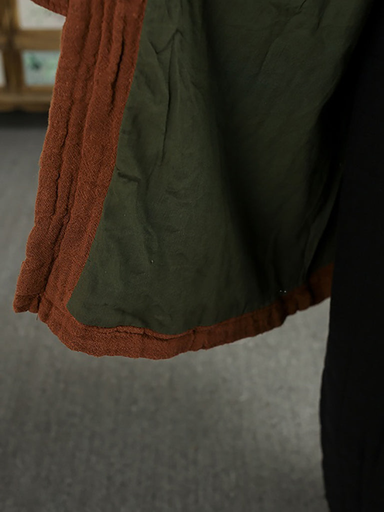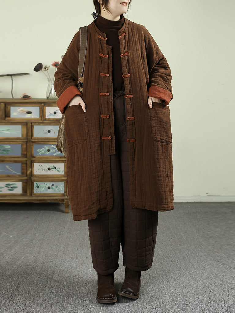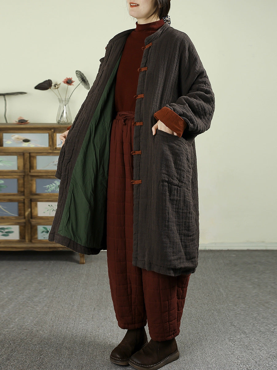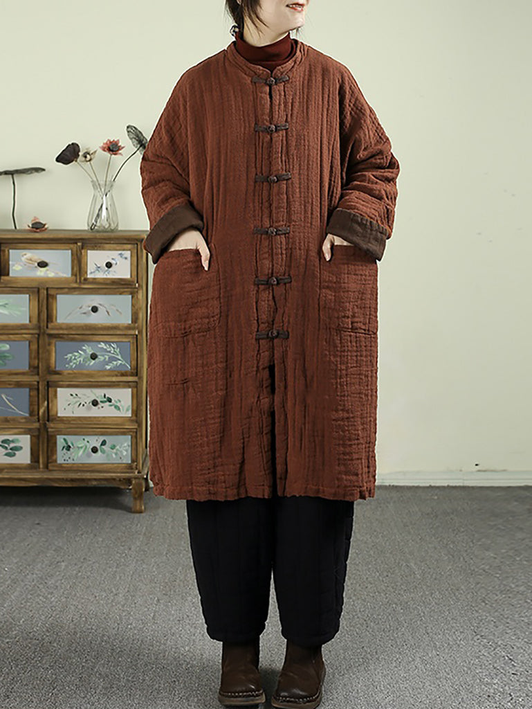 Women Vintage Winter 100%Linen Stand Collar Coat
