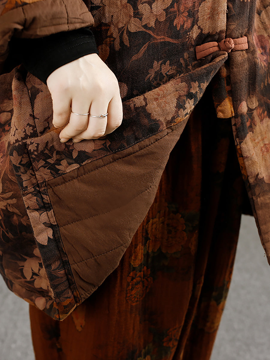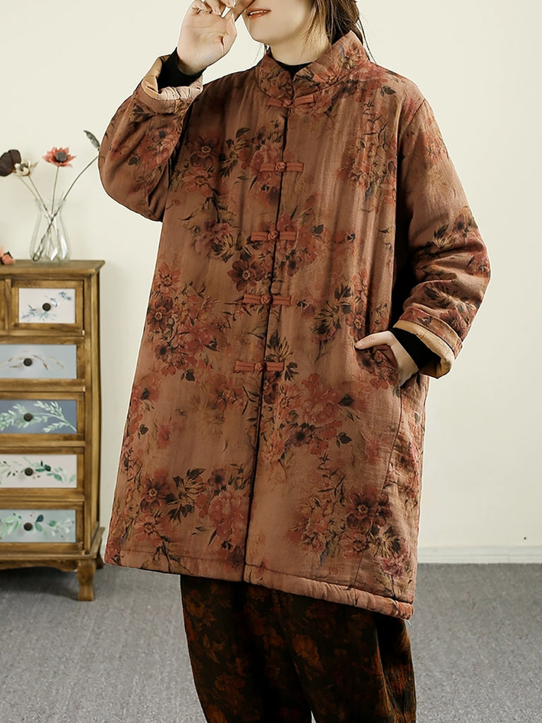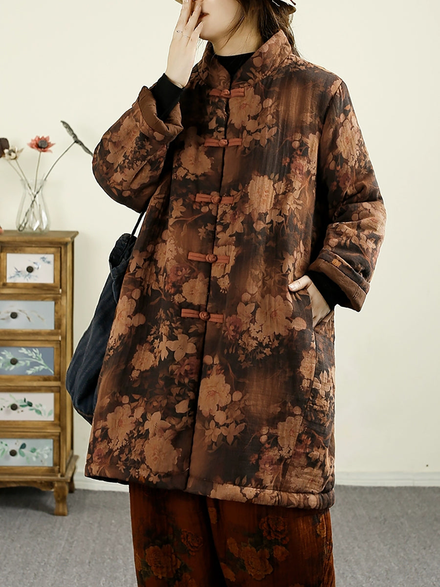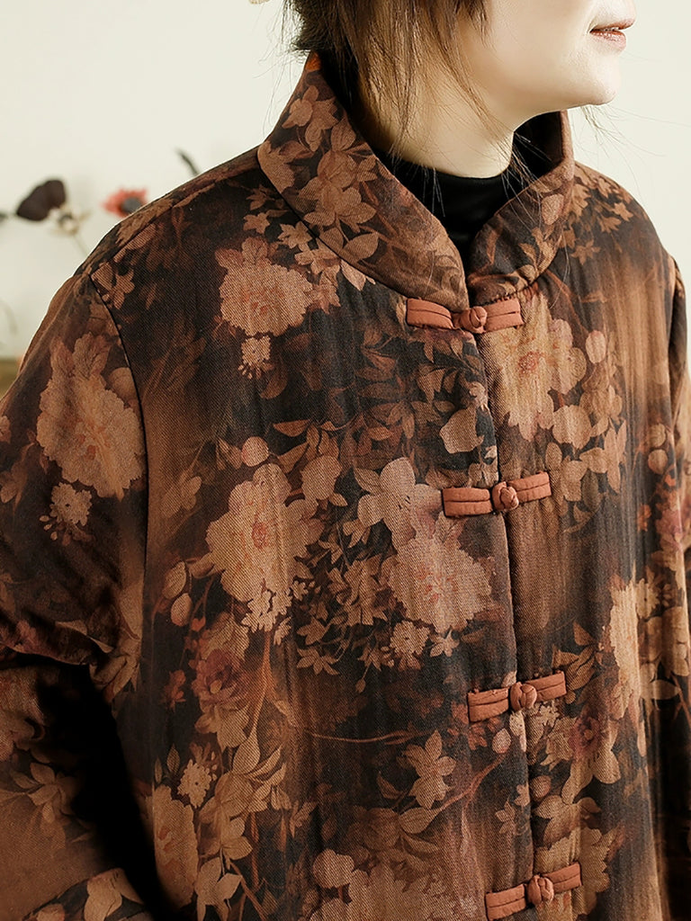 Women Vintage Winter Flower 100%Cotton Padded Coat