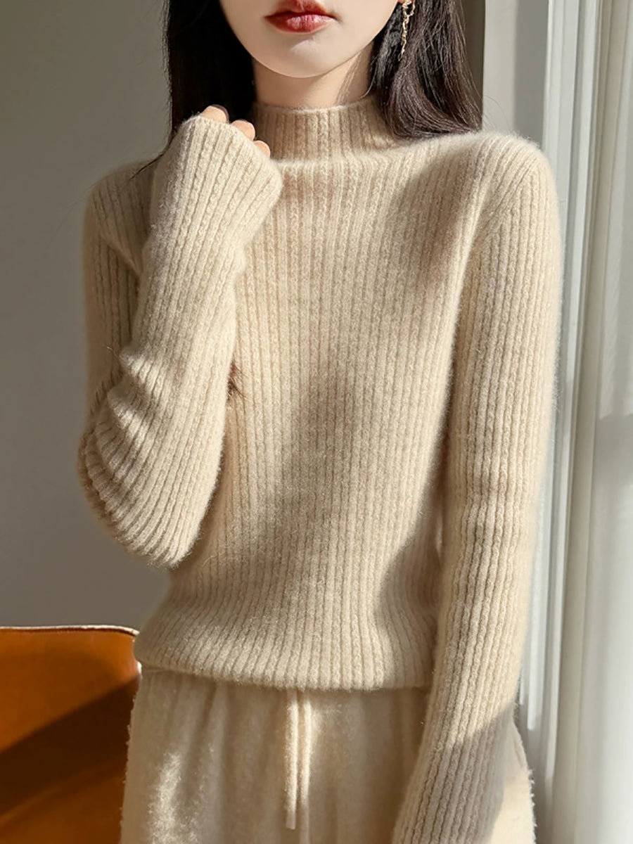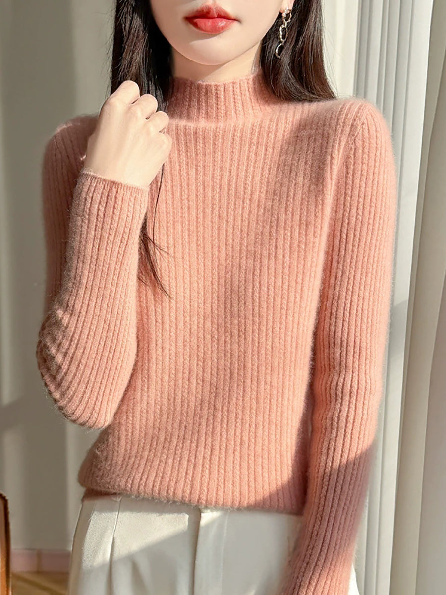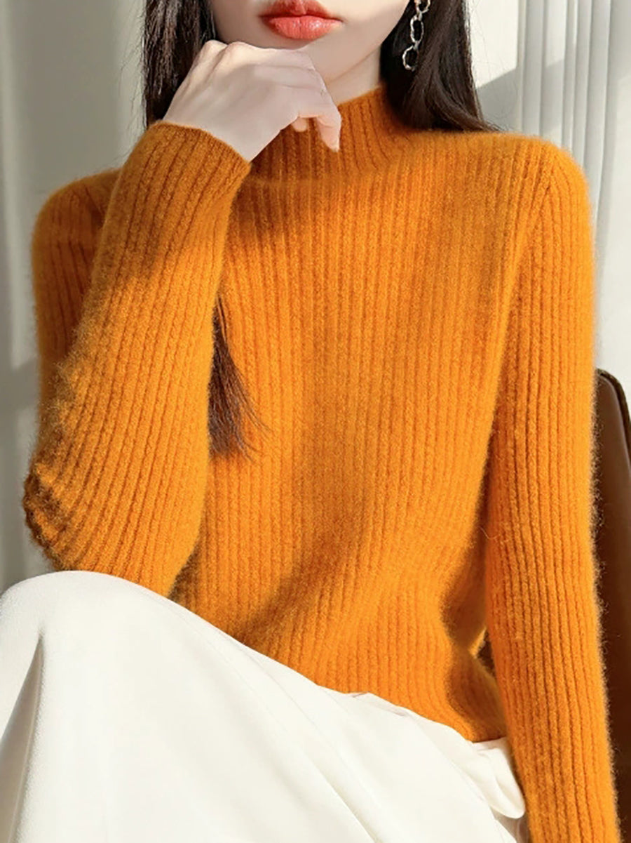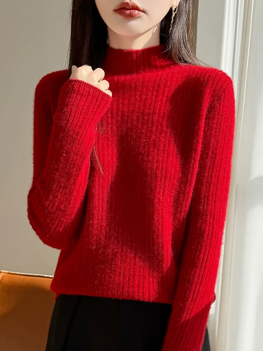 Women Winter Artsy Pure Color Wool Half-Turtleneck Sweater