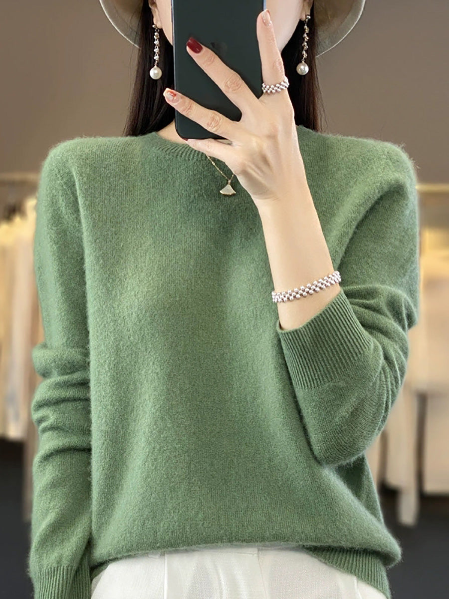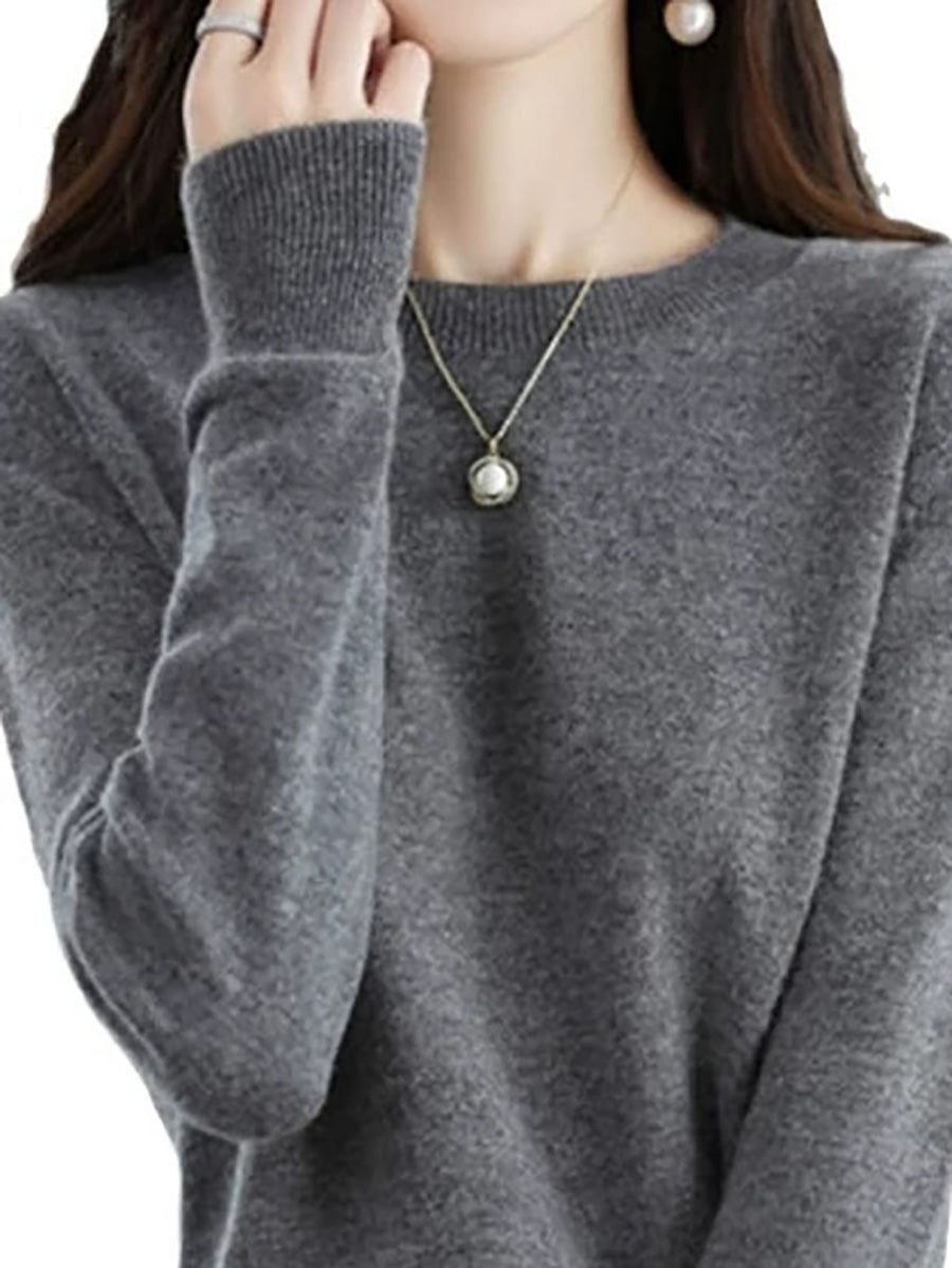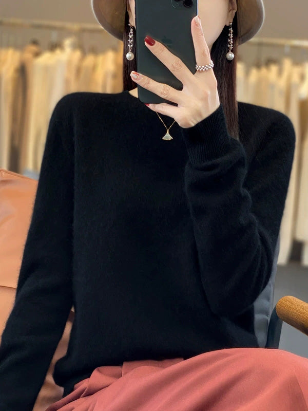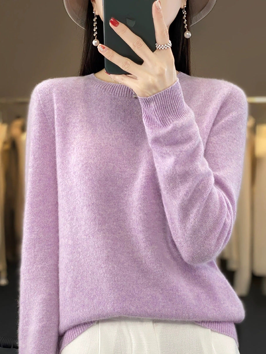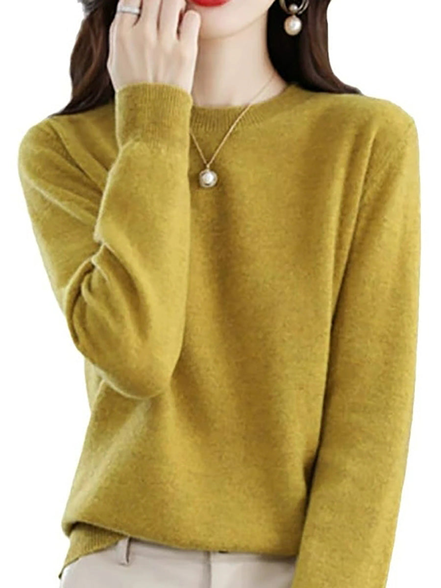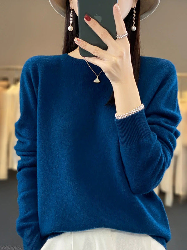 Women Winter Artsy Pure Color Wool O-Neck Sweater
