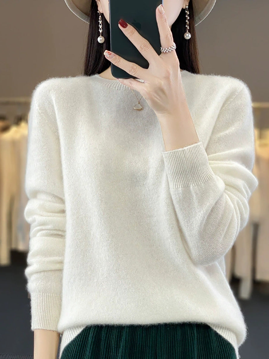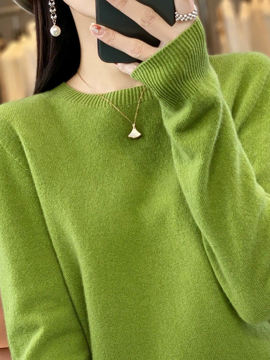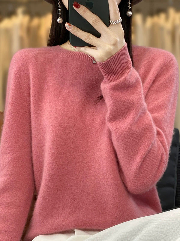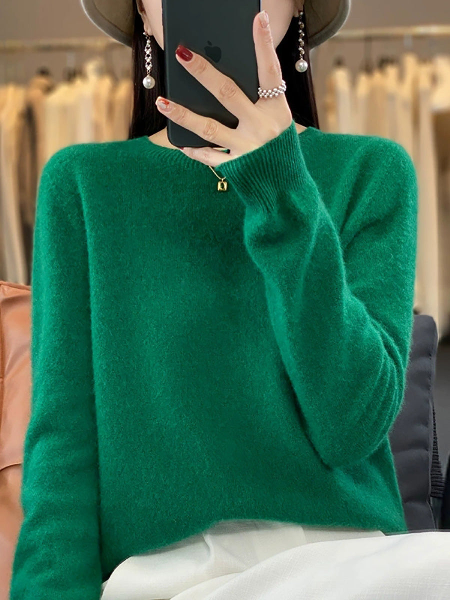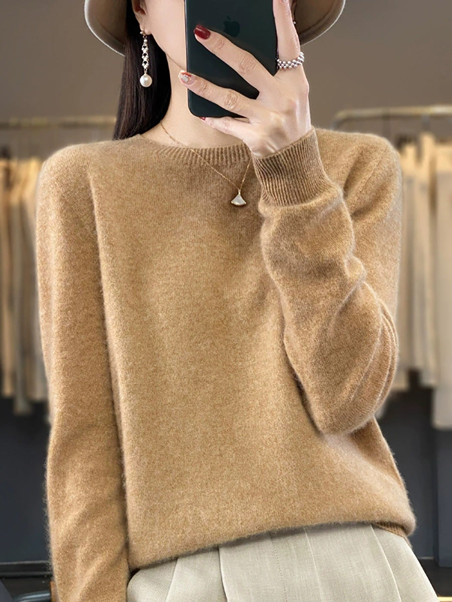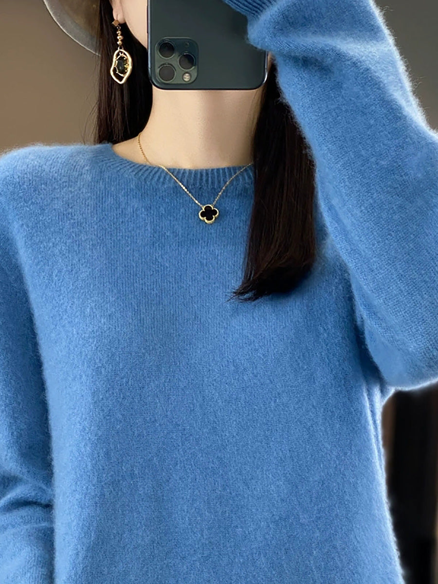 Women Winter Artsy Pure Color Wool O-Neck Sweater