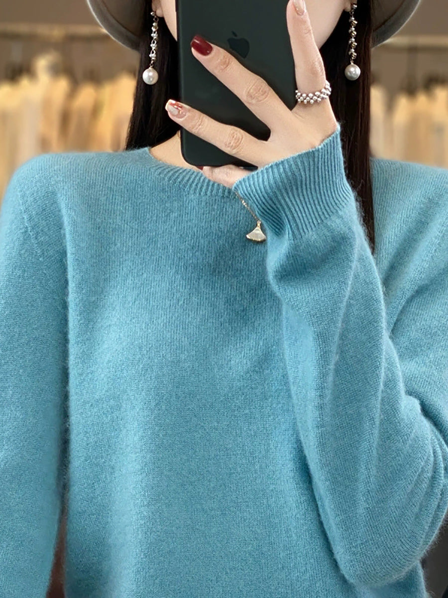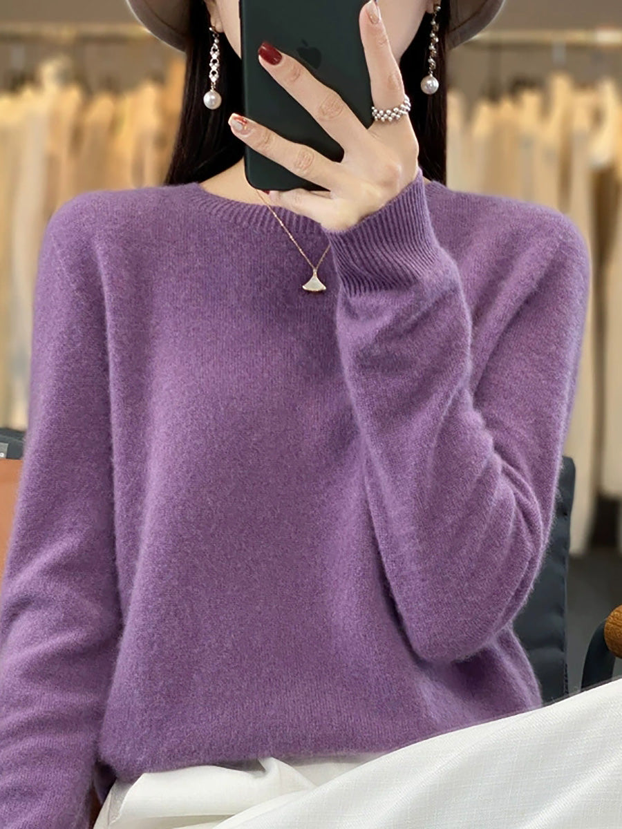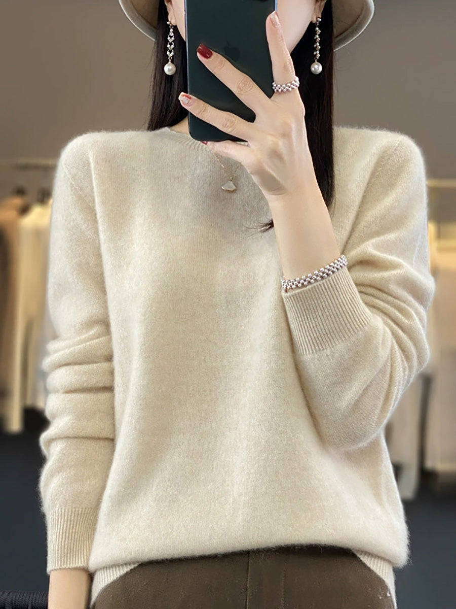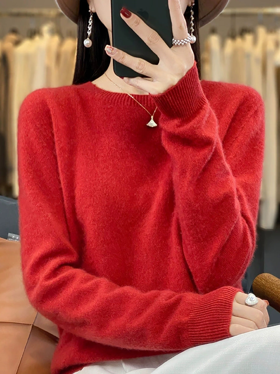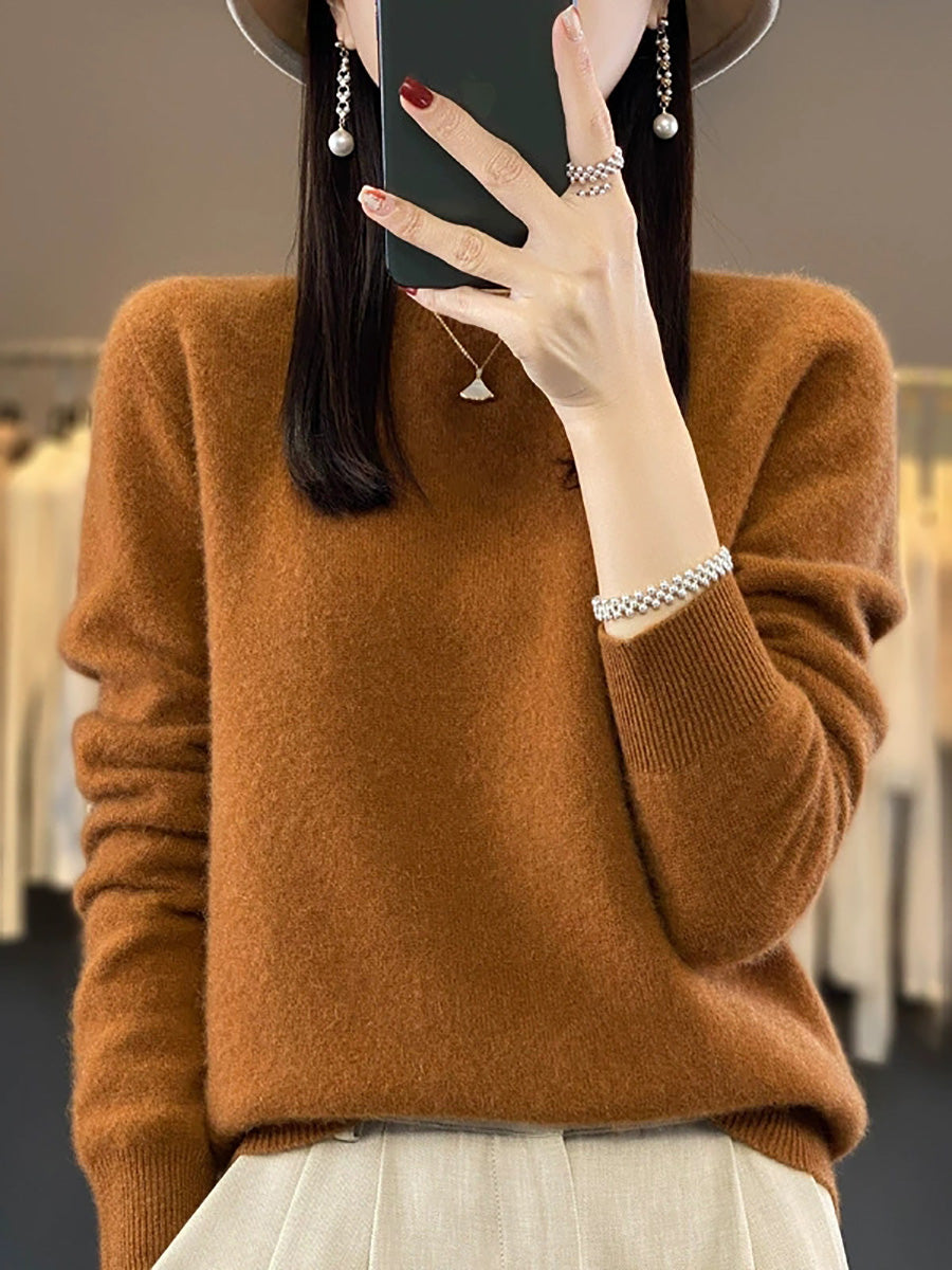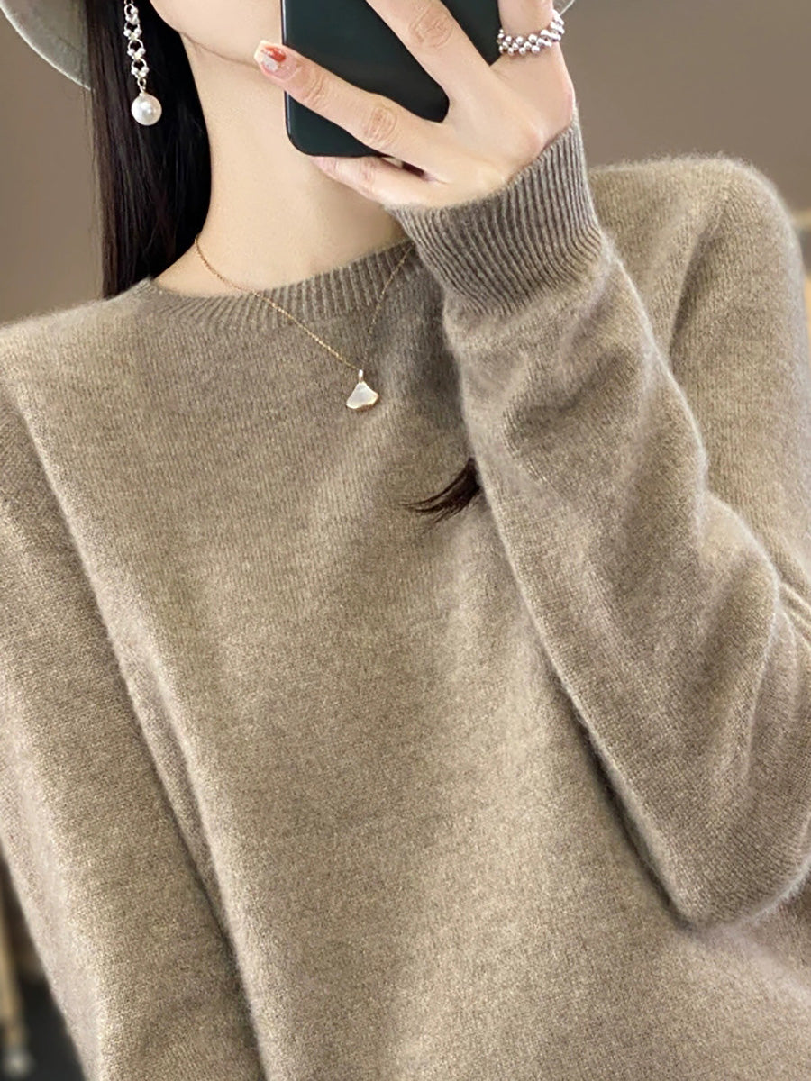 Women Winter Artsy Pure Color Wool O-Neck Sweater