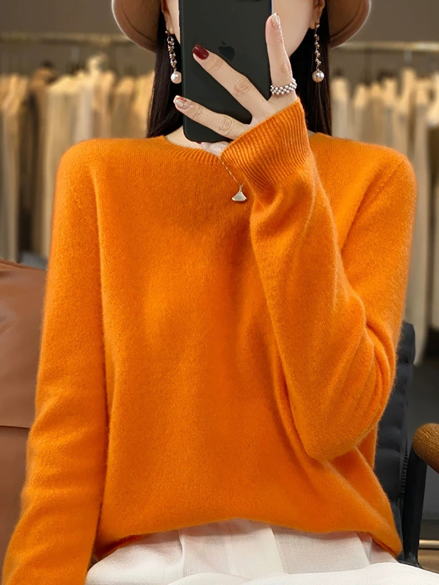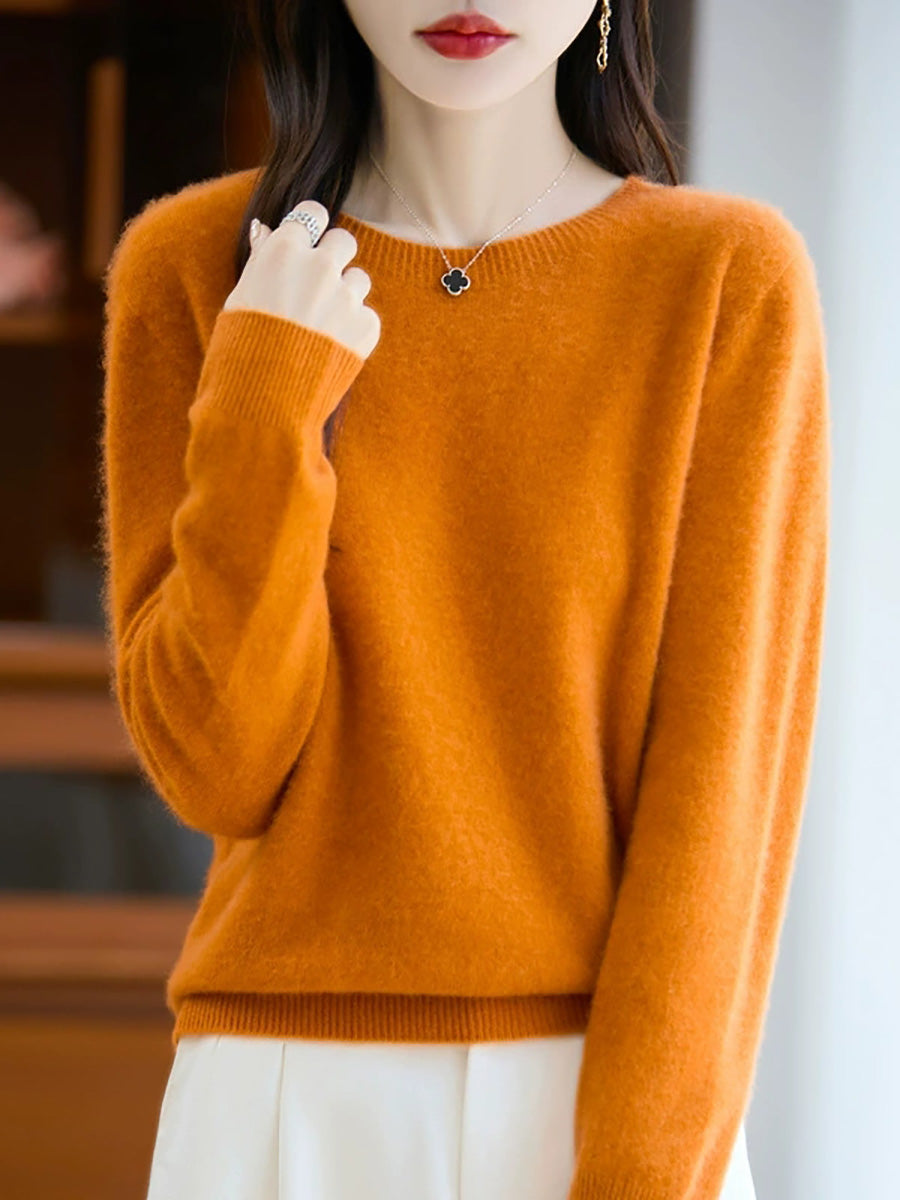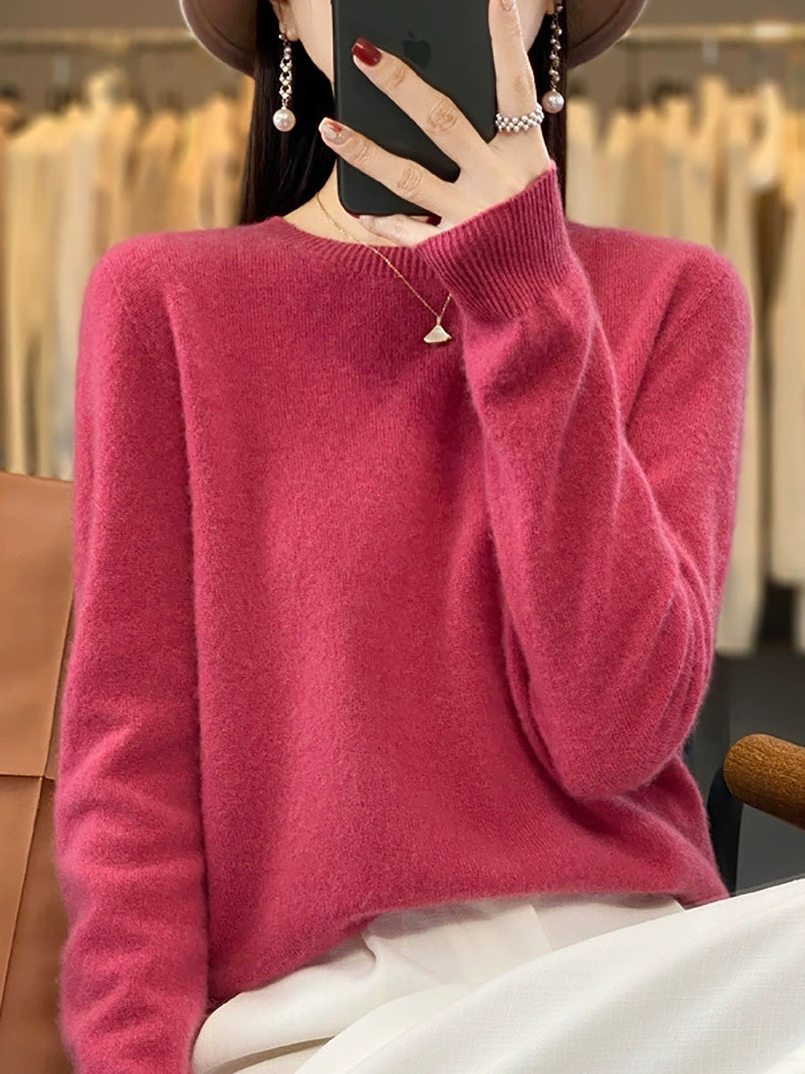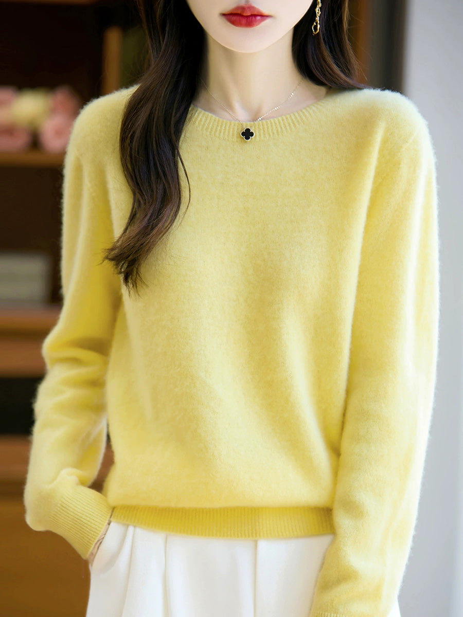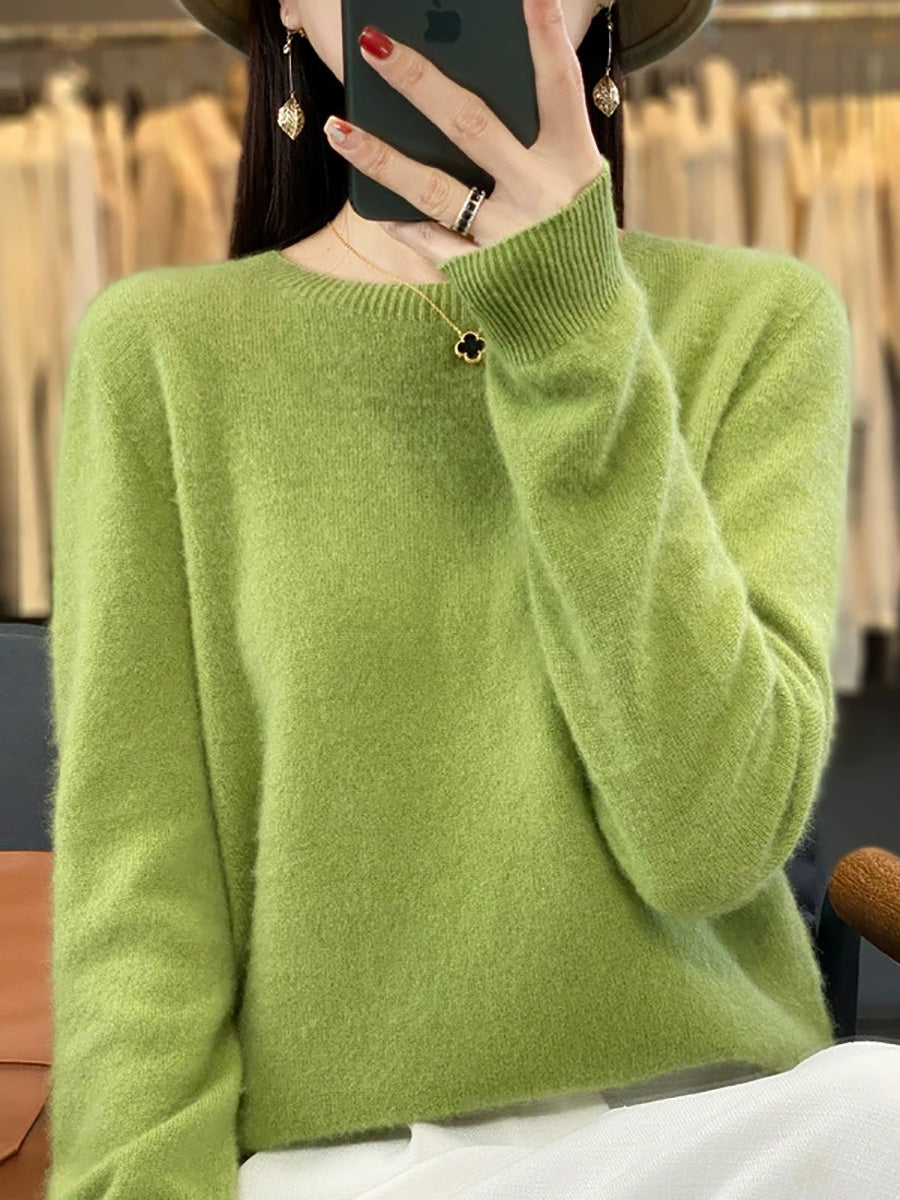 Women Winter Artsy Pure Color Wool O-Neck Sweater