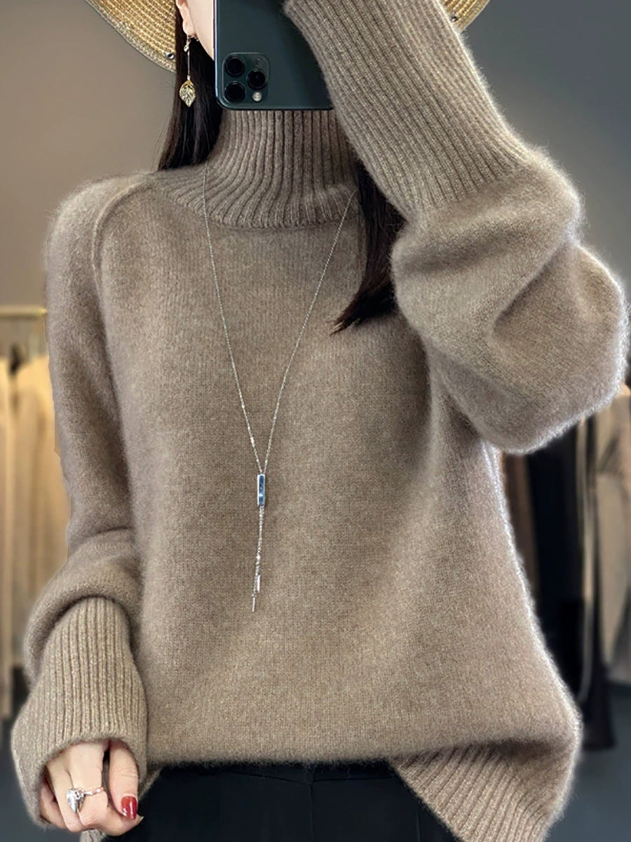 Women Winter Casual Pure Color Knitted Turtleneck Sweater