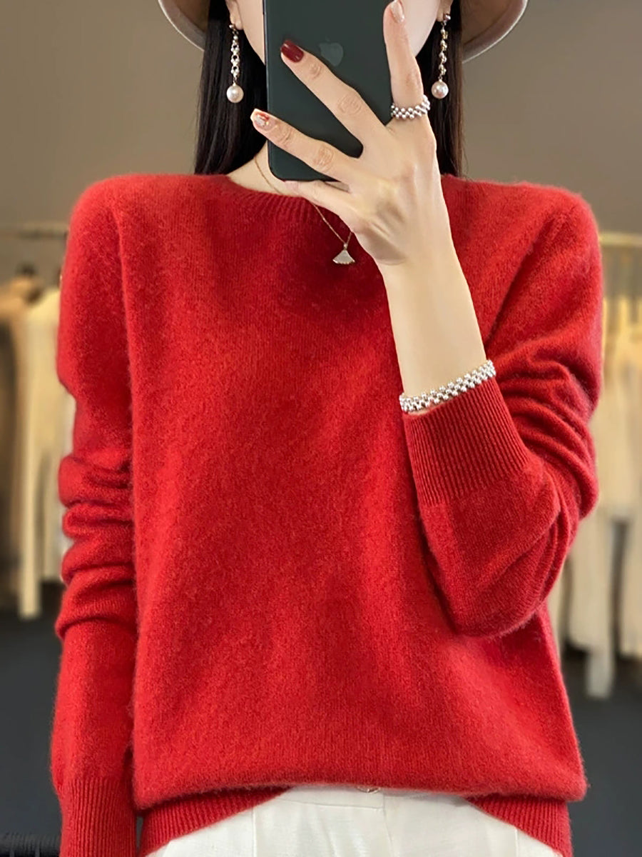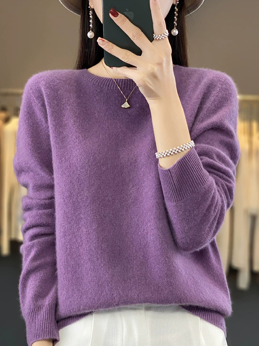 Women Winter Casual Pure Color O-Neck Knitted Sweater